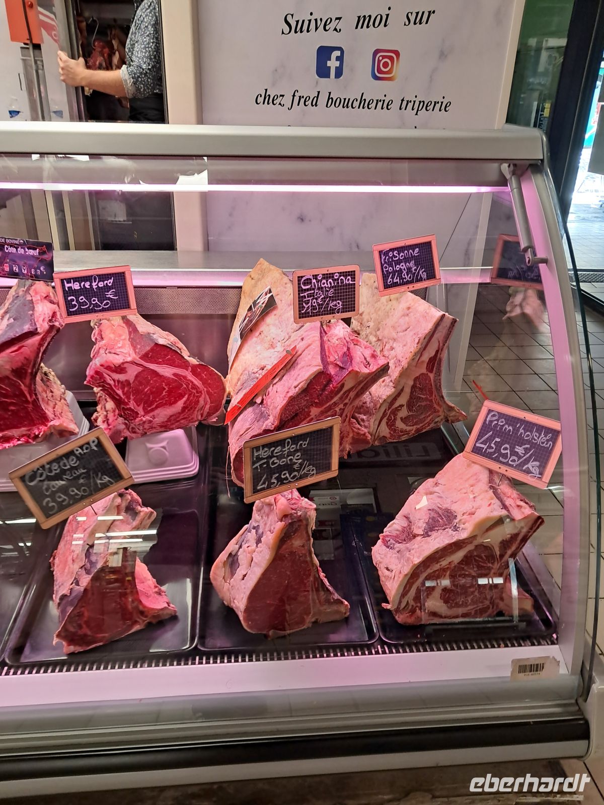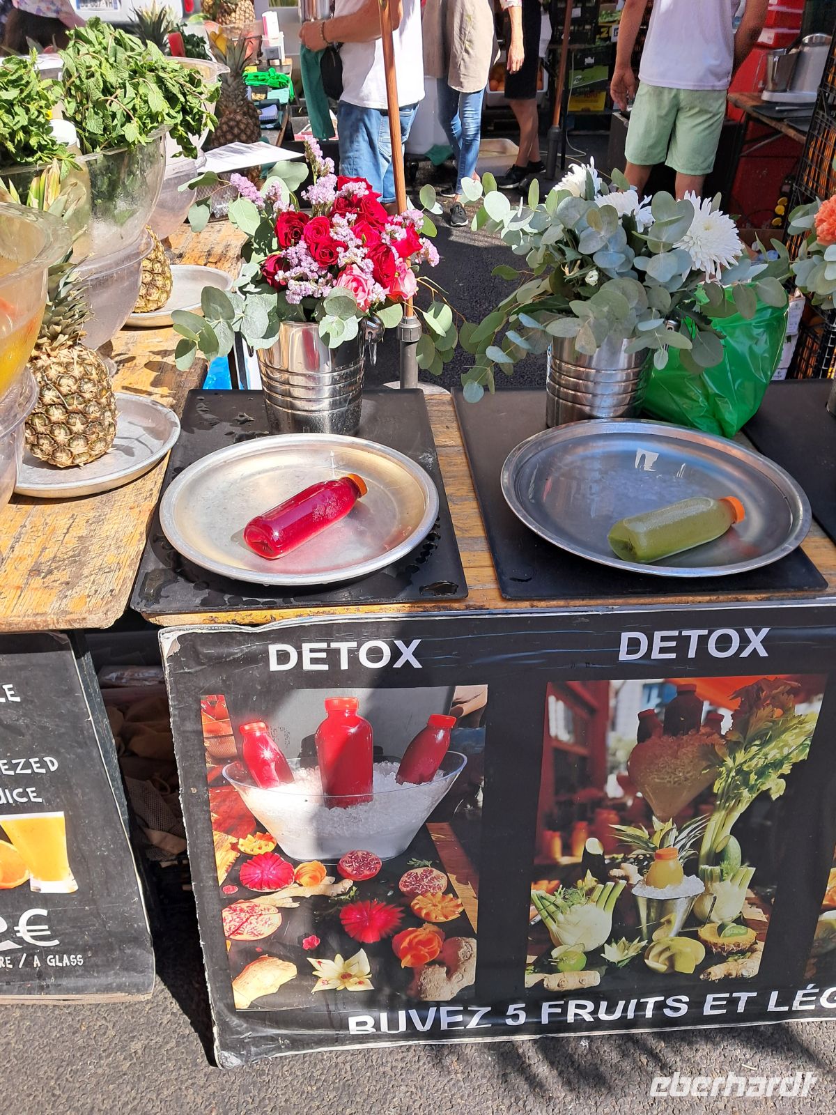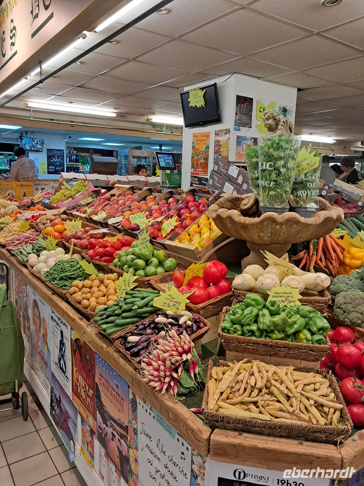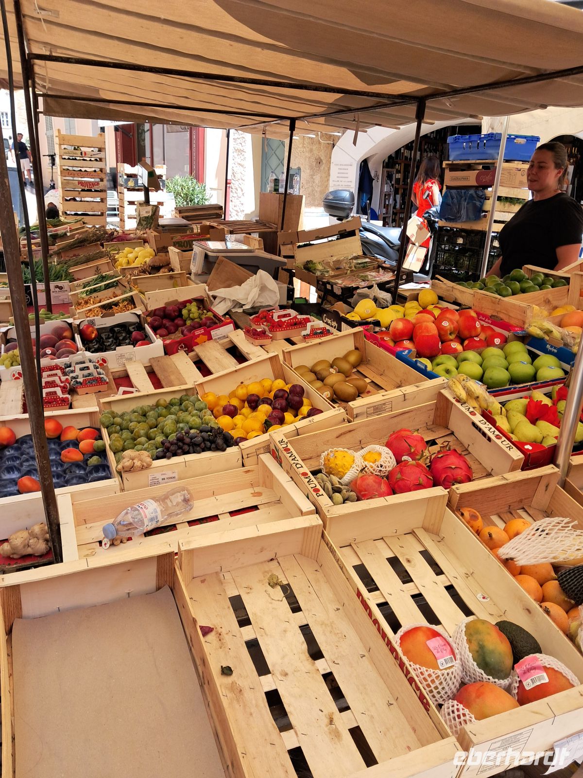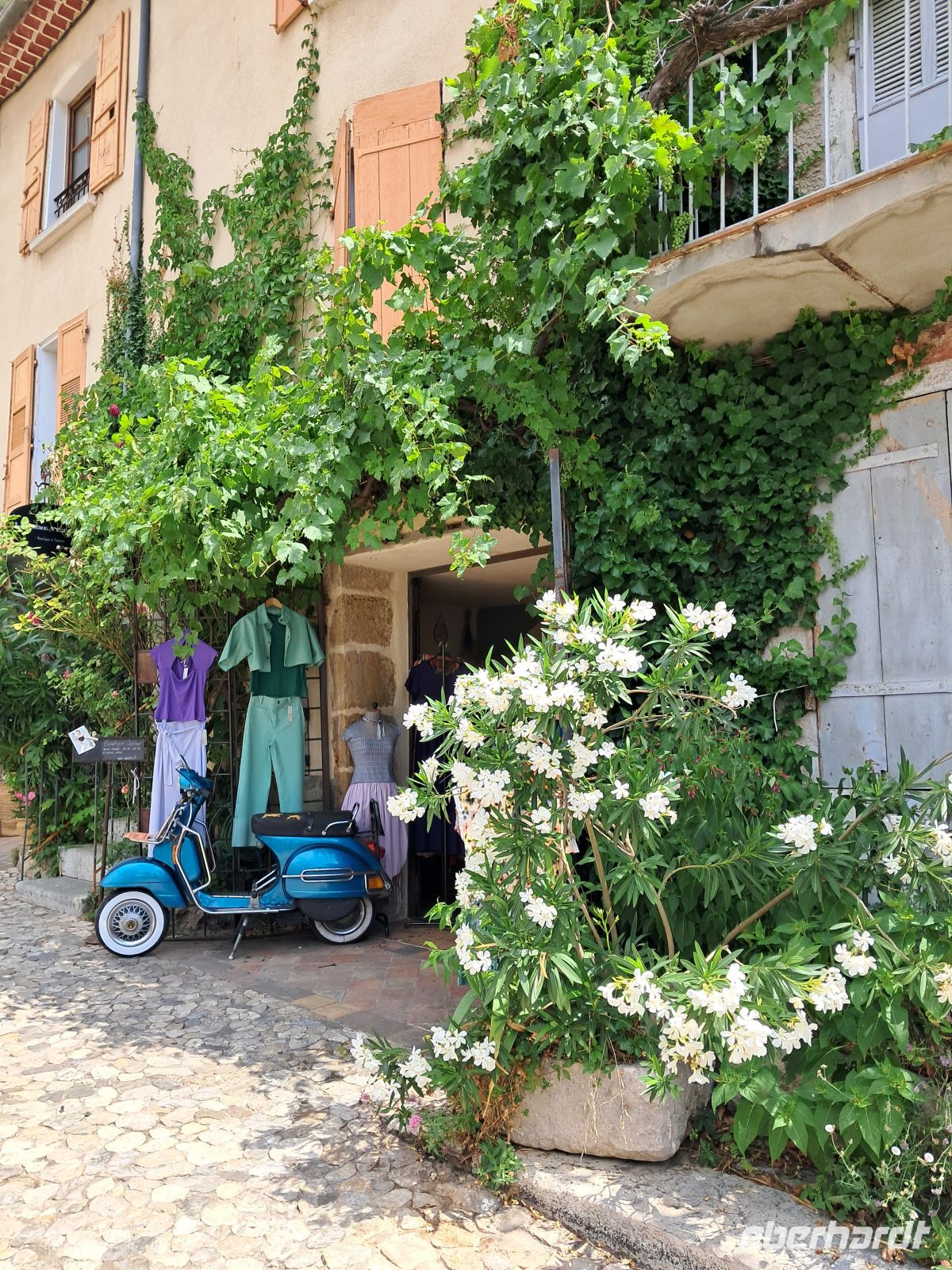 Schon die Anreise ist nicht ohne. In Grasse war eine Straße gesperrt, da musste unser Chauffeur nicht nur Können zeigen sondern auch Nervenstärke. Weiter ging es über unzählige Serpentinen durch wunderschöne und fast menschenleere Landschaft zu dem Ort, der den Eingang zur Schlucht von Verdon markiert, Comps-sur-Artuby. Ein schlichtes wie nützliches Örtchen am Rande des Städtchens lud zur Gesundheitspause ein, bevor wir den Balcon de la Mescla erreichten, dem ersten Aussichtspunkt in der Schlucht von Verdon. Am tiefsten Punkt in der Schlucht geht es übrigens 800 Meter runter, es ist also Vorsicht angesagt. Das gilt auch an der Pont de l` Artuby, einer Brücke, die über einen Nebenfluss des Verdon gebaut wurde und wo hin und wieder auch Bungee Jumping in die Tiefe angeboten wird. Genau hier befindet sich auch ein Kiosk, den eine Teilnehmerin zweimal aufsuchen durfte. Das Mobiltelefon war vergessen worden, eine schier aussichtslose Situation, der Bus kann hier nirgends wenden, aber ein schwedisches Ehepaar zeigte Erbarmen und brachte Inhaberin und Mobiltelefon wieder zusammen. Als ob der Canyon nicht schon aufregend genug gewesen wäre. Wir durften noch ein paar Mal halten und die Kameras klicken lassen, bevor wir Moustiers Sainte Marie erreichten. Der Wallfahrtsort mit seiner Eglise Notre Dame de Beauvoir, so in etwa die Kirche mit der schönen Aussicht, lud tatsächlich ein paar Gäste dazu eine, hunderte Stufen zu erklimmen. Sportlich, sportlich. Wem das nach der Aufregung in der Schlucht von Verdon zu viel war, durfte sich in den Gassen eines der schönsten Dörfer Frankreichs vergnügen. Just an diesem Tag war auch Markt, der mit Angeboten aus der Gegend lockte.