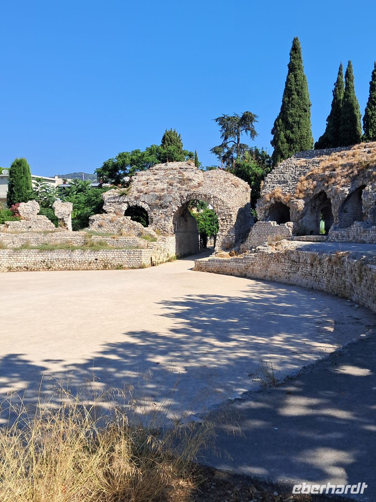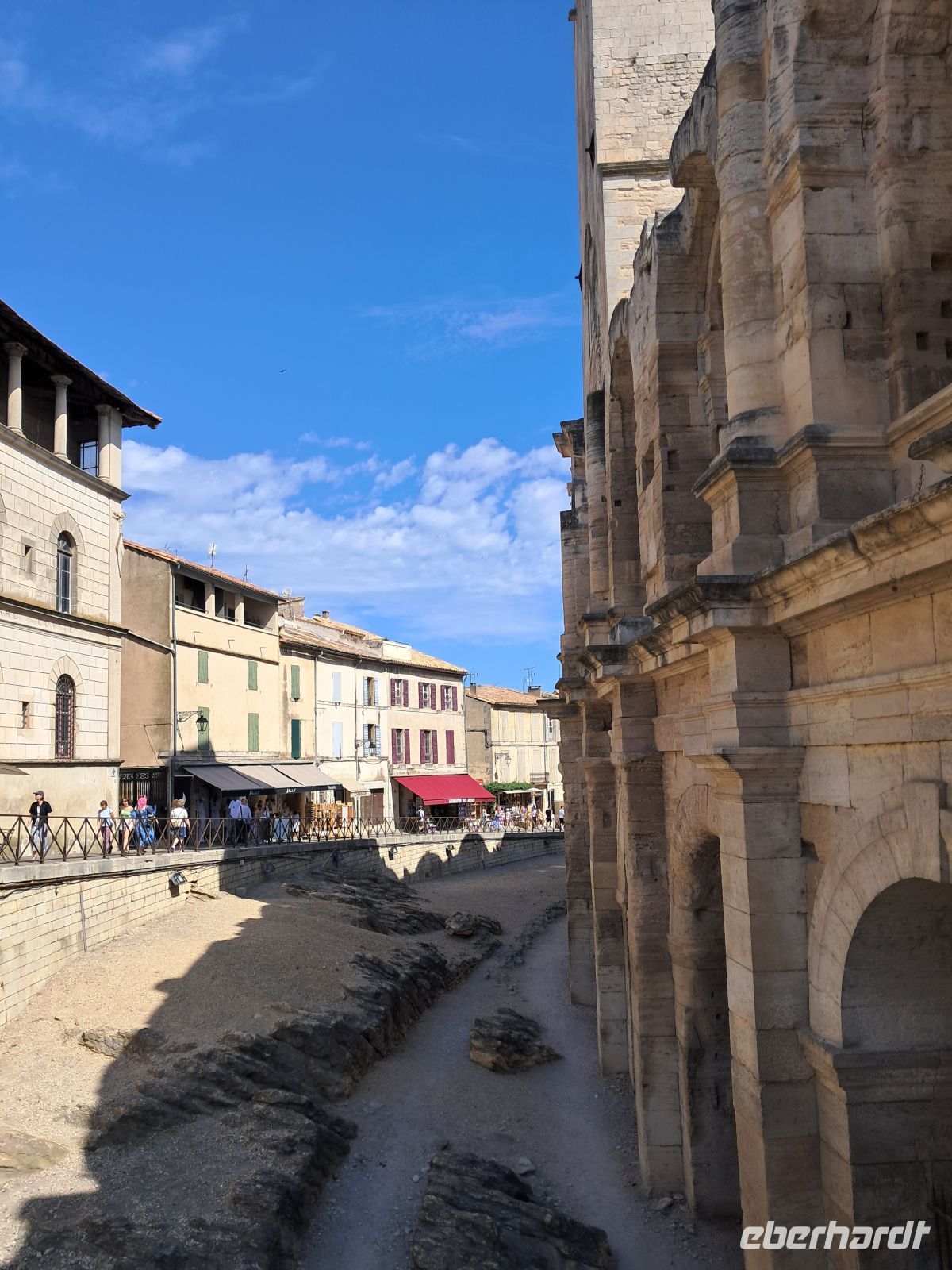 Für einen gelungenen Tag in Arles brauchte es die entsprechenden Eintrittskarten, gutes Wetter und einen Schüler, der es vermochte, den alten römischen Steinen Leben einzuhauchen. Er erzählte uns ganz genau, wie man sich damals in den Thermen verhielt, welche Theaterstücke gespielt wurden, was genau im Amphitheater passierte und wie viel ein Gladiator verdiente. Das macht übrigens Spaß in Arles, denn hier steht man direkt vor und in den Thermen, dem Antiken Theater und dem Amphitheater, das wir bitte bloß nicht Kolosseum nennen dürfen, denn so heißt nur das weltberühmte Äquivalent in Rom. Unserem Schüler ist irgendwann ein Ferienjob bei Eberhardt-Travel sicher.
