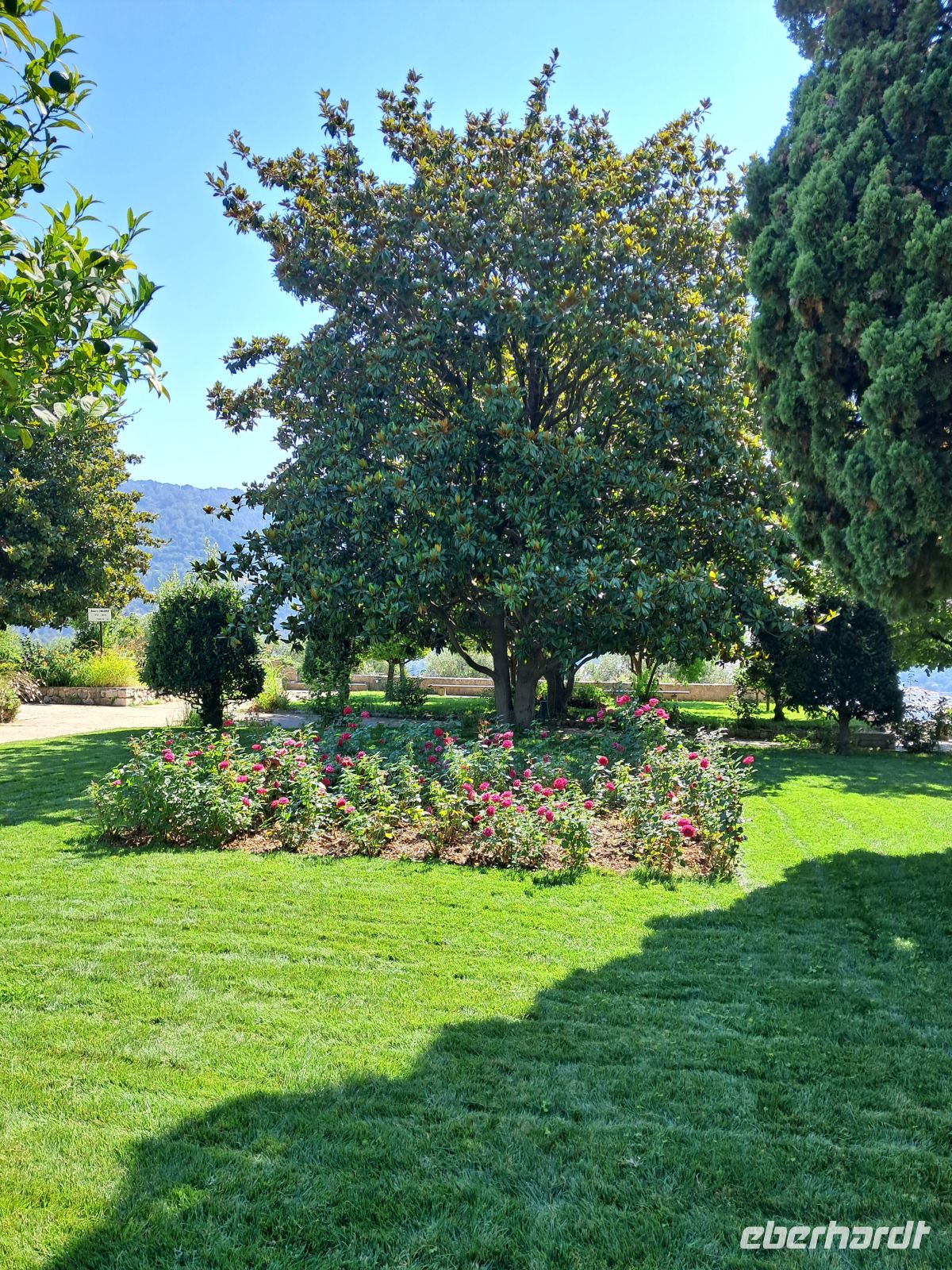 Unser örtlicher Reiseleiter Jörg hatte vieles mit uns vor. Eigentlich wollte er uns alles zeigen in Nizza. Aber eine vor wenigen Tagen verabschiedete Regelung der Stadt Nizza, keine Busse mehr ins Zentrum und auf die Promenade des Anglais zu lassen, traf uns überraschend. Da hieß es, aus der Not eine Tugend zu machen. Denn da gibt es ja noch das Viertel Cimiez, das auf eine Bebauung aus der Römerzeit zurückgeht mit dem Matisse-Museum und einem wunderschönen Bestand an Olivenbäumen. Wir durften auch die russisch-orthodoxe Kirche sehen und den Aussichtspunkt über die Stadt Nizza samt Hafen und Promenade des Anglais. Wir nahmen die Zufahrt nach Monaco (corniche inferieure), die am Meer verläuft und direkt das Cap Ferrat passiert. Jörg wusste zu berichten, wer da in welcher Villa oder gar in welchem Schloss wohnte. Man muss eben das entsprechend gut gefüllte Bankkonto vorweisen können.
