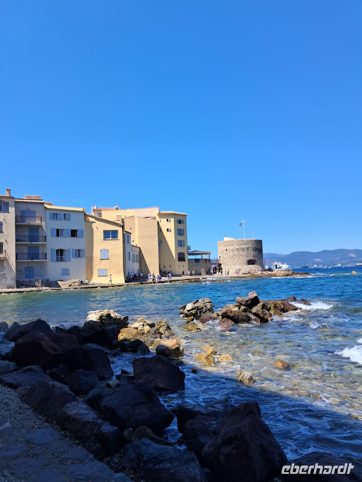 Heute ging es von Cannes zunächst nach Sainte Maxime. Es ist zu schade, um die Stadt lediglich als Abfahrtsort für das Boot nach St. Tropez zu bezeichnen, bietet sie mit einer wunderschönen Fußgängerzone und dem Ensemble aus der Pfarrkirche (benannt nach der Heiligen Maxima) und dem quadratischen Wehrturm durchaus Sehenswertes.