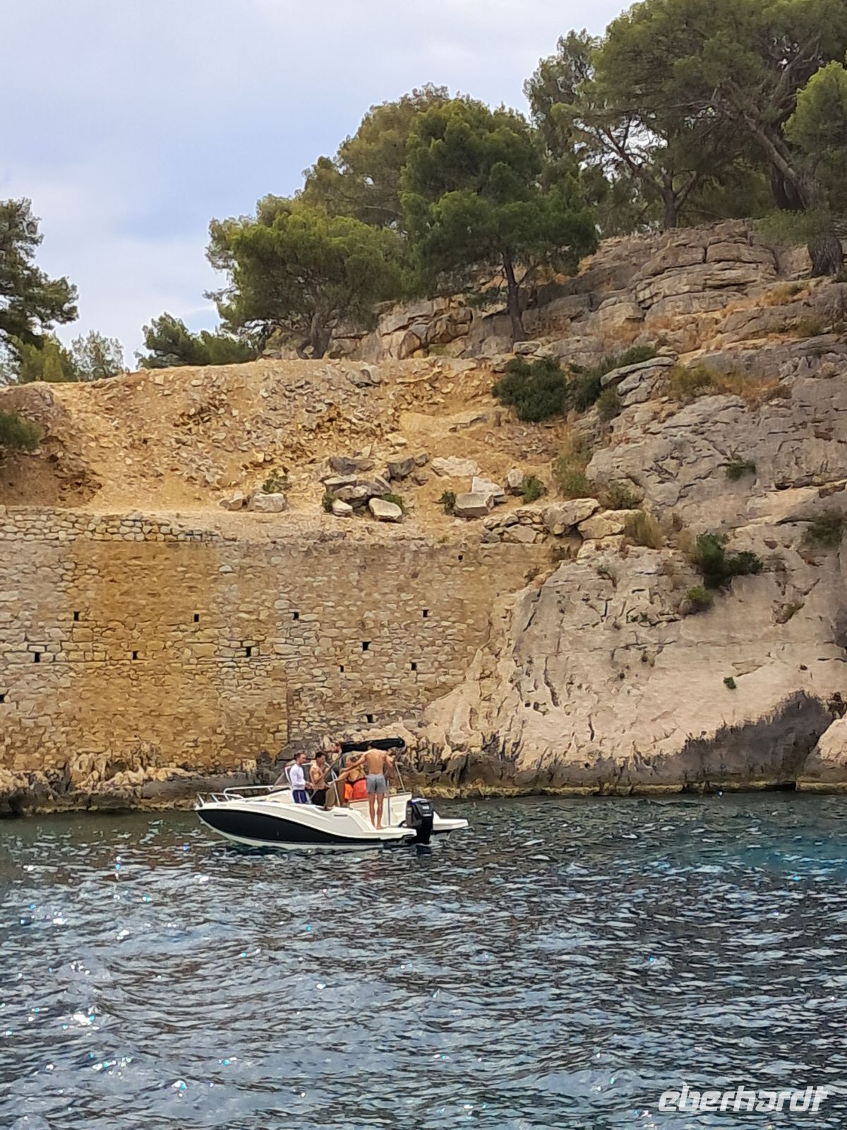 Vom Hotel bis nach Cassis braucht man ungefähr eine Stunde mit dem Bus und heute sollte ein besonderer Tag sein. Pünktliche Ankunft, rein in den Petit Train zum Hafen, raus dem Petit Train und rein ins Boot mit dem Ziel, drei Calanques zu erkunden. Die Calanques, das sind kleine Fjorde, die sich malerisch an der Cote d` Azur zwischen Cassis und Marseille öffnen, an deren Hängen jung und alt sich darin üben, gekonnt von den Klippen zu springen, um dann anschließend am Strand das verdiente Päuschen einzulegen. Man muss es einfach gesehen haben. Nach der Bootsfahrt blieb noch ausreichend Zeit, das malerische Städtchen zu besichtigen.