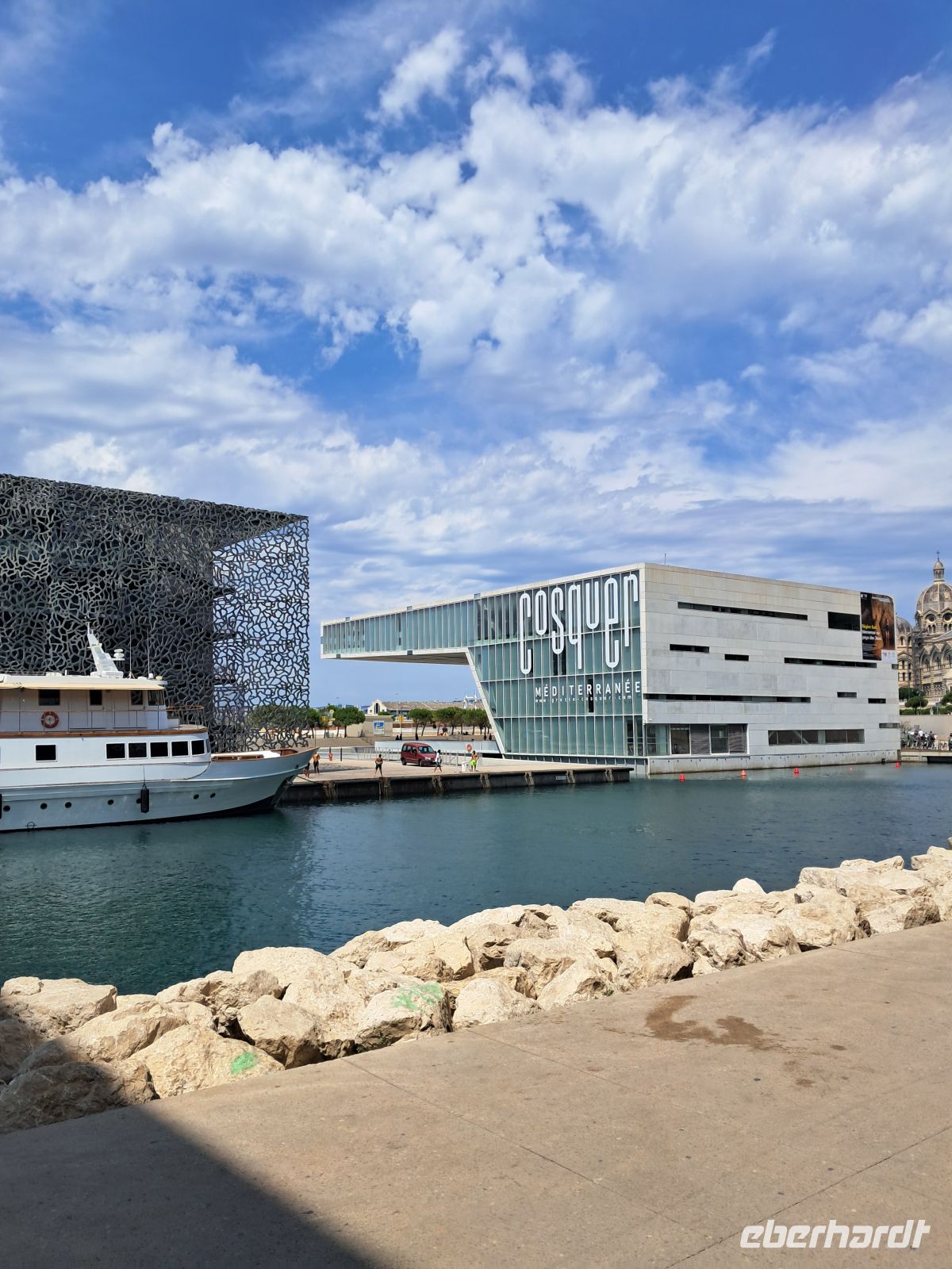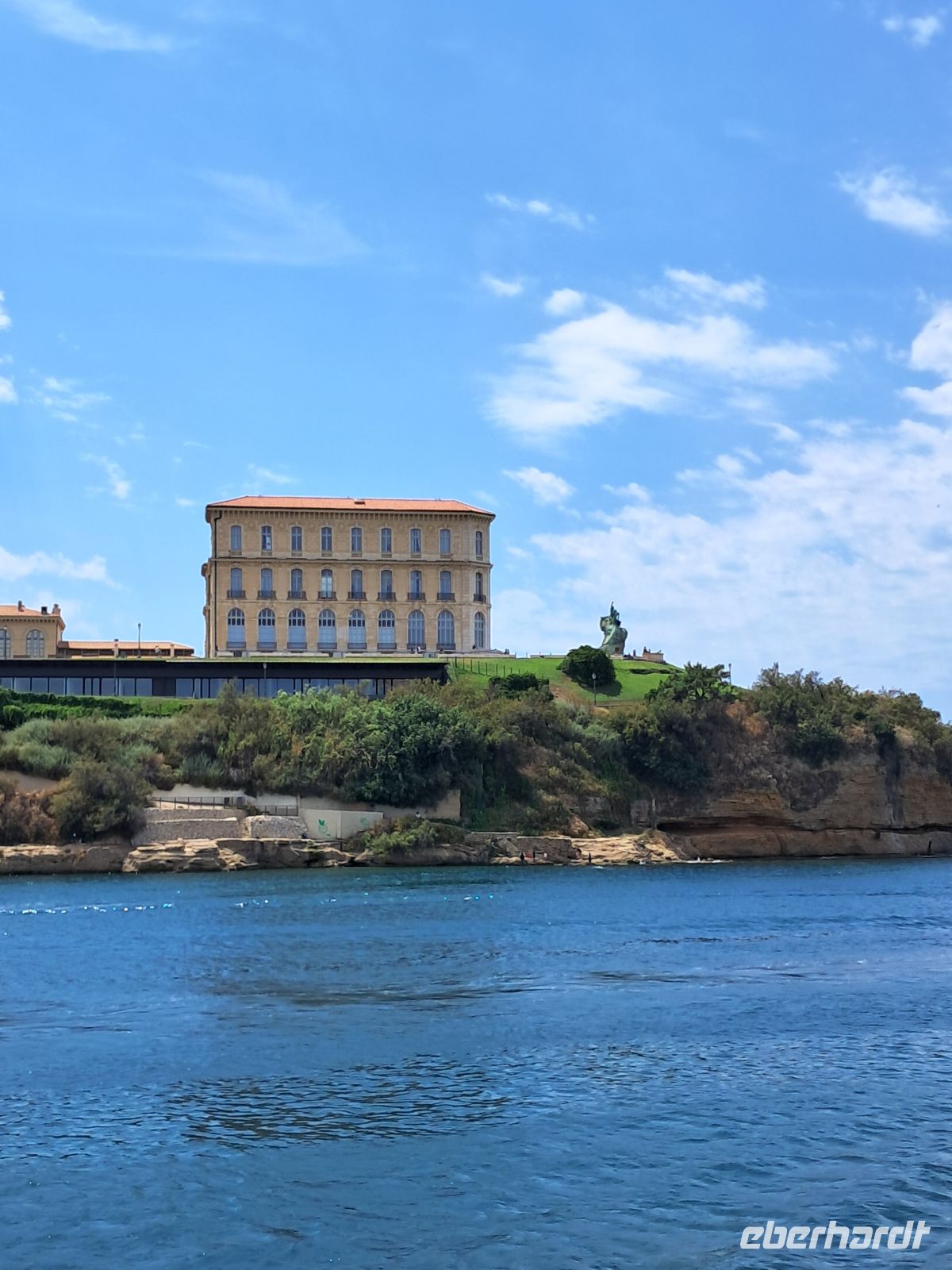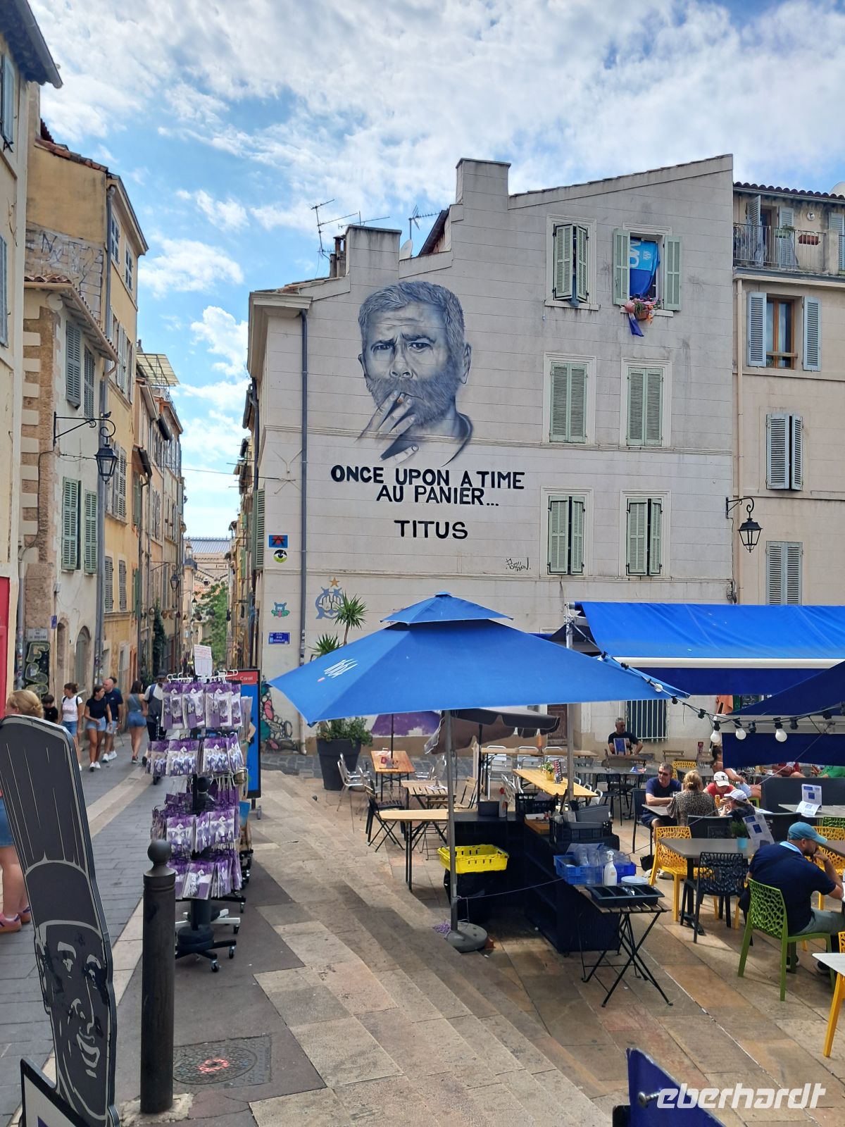 Nun aber in die Weltstadt Marseille. Unser Chauffeur wählte gekonnte die Fahrt entlang der Corniche, um dann pünktlich unsere örtliche Reiseleiterin Katrin am Hafen anzutreffen. Mit ihr ging es zu Fuß am Alten Hafen vorbei, um die Festung St. Jean herum zum neuen Museum Cosquer, in der sich der originalgetreue Nachbau einer unterirdischen Höhle verbindet. Katrin brachte uns dann zur Kathedrale La Major und dann zum Panier. Panier? Was Kreuzberg für Berlin oder die Neustadt für Dresden ist, das ist das Panier für Marseille. Jung, hip, unzählige Kneipen, lässige Bars, den Kaffee trinkt man auf der Mauer oder den Treppen vor der Charite, dem ältesten ehemaligen Krankenhaus von Marseille. Lässig, locker, zwanglos, ohne Konventionen - das war eine Stadtführung der ganz besonderen Art.