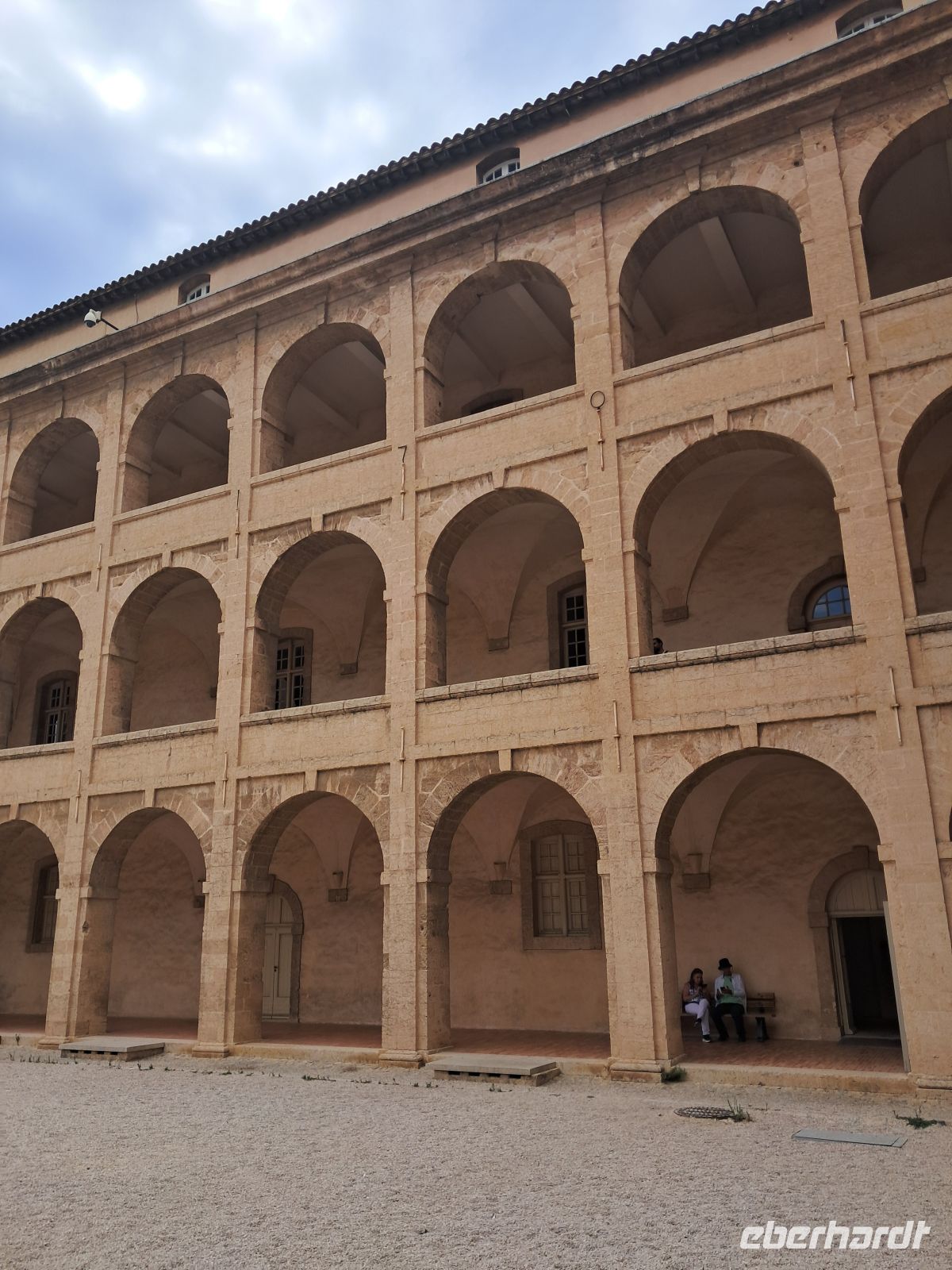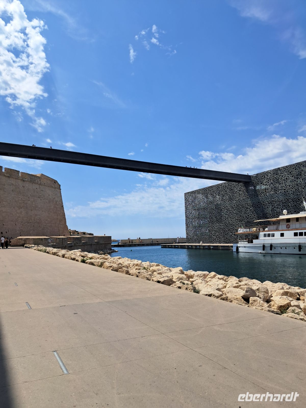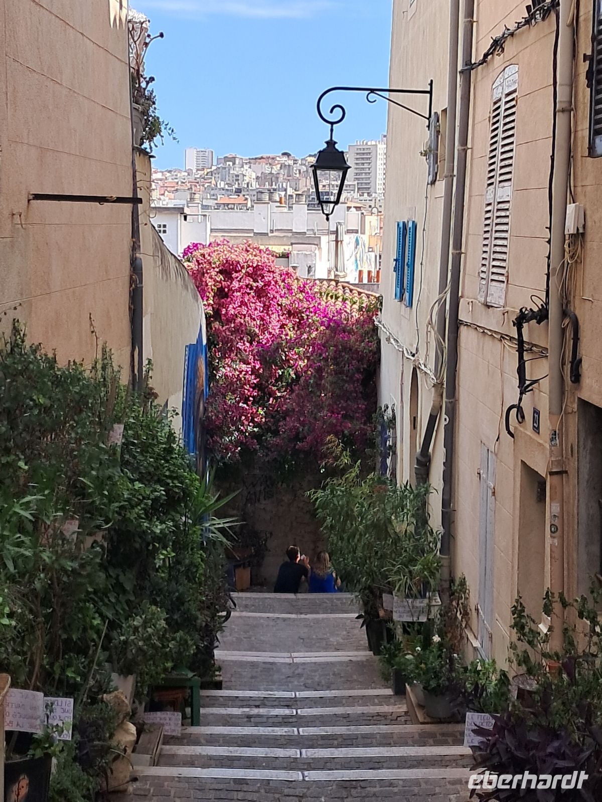 Nun aber in die Weltstadt Marseille. Unser Chauffeur wählte gekonnte die Fahrt entlang der Corniche, um dann pünktlich unsere örtliche Reiseleiterin Katrin am Hafen anzutreffen. Mit ihr ging es zu Fuß am Alten Hafen vorbei, um die Festung St. Jean herum zum neuen Museum Cosquer, in der sich der originalgetreue Nachbau einer unterirdischen Höhle verbindet. Katrin brachte uns dann zur Kathedrale La Major und dann zum Panier. Panier? Was Kreuzberg für Berlin oder die Neustadt für Dresden ist, das ist das Panier für Marseille. Jung, hip, unzählige Kneipen, lässige Bars, den Kaffee trinkt man auf der Mauer oder den Treppen vor der Charite, dem ältesten ehemaligen Krankenhaus von Marseille. Lässig, locker, zwanglos, ohne Konventionen - das war eine Stadtführung der ganz besonderen Art.