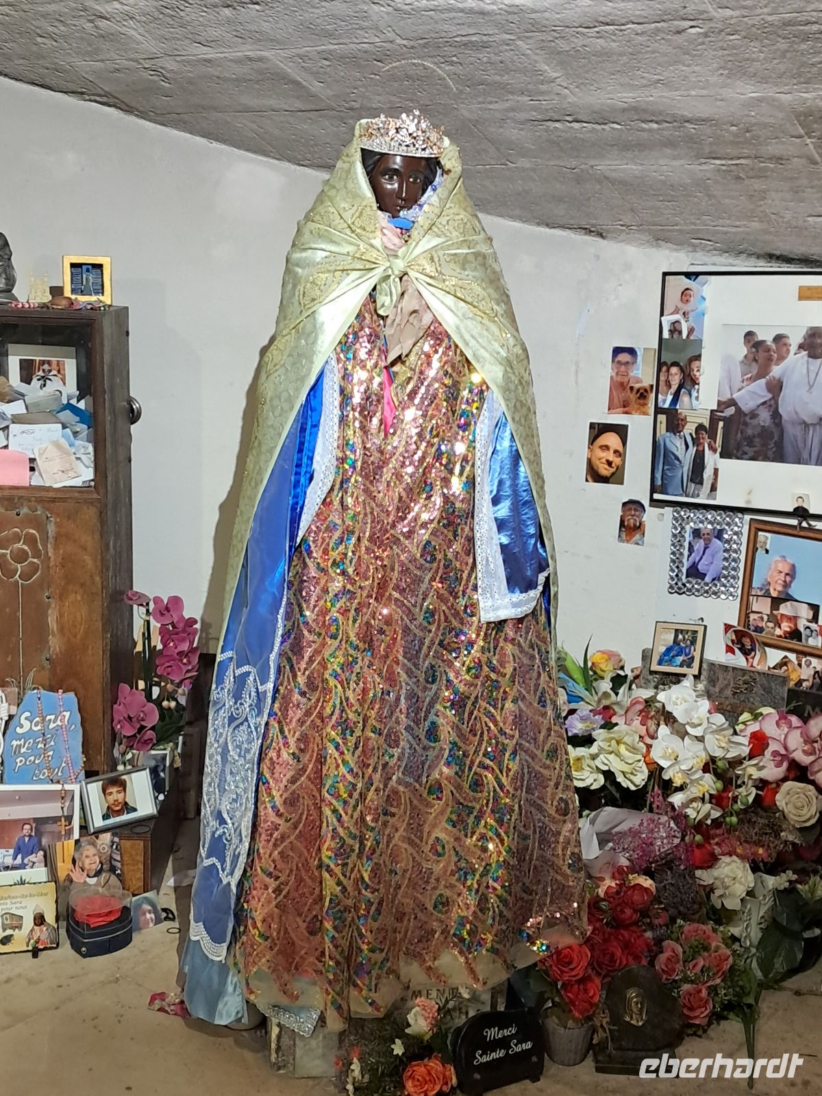 Das Pferd der Camargue setzte sich als erstes in Szene auf der Weiterfahrt nach Saintes-Maries-de-la-Mer. Und es wurden auch immer mehr. Es dauerte nicht mehr lange, bis wir Stiere entdeckten. Die Flamingos ließen aber auf sich warten. Sie ließen sich erst erblicken, als wir von Saintes-Maries-de-la-Mer wieder zurückfuhren.