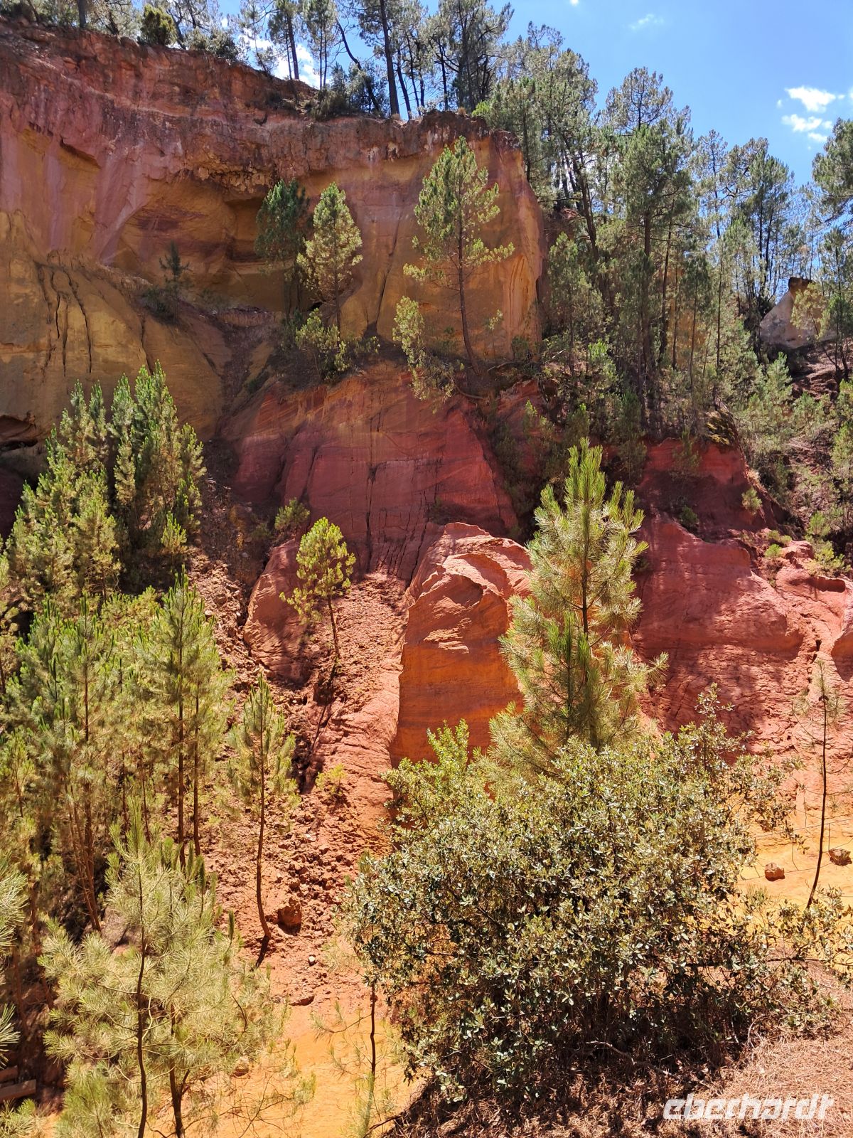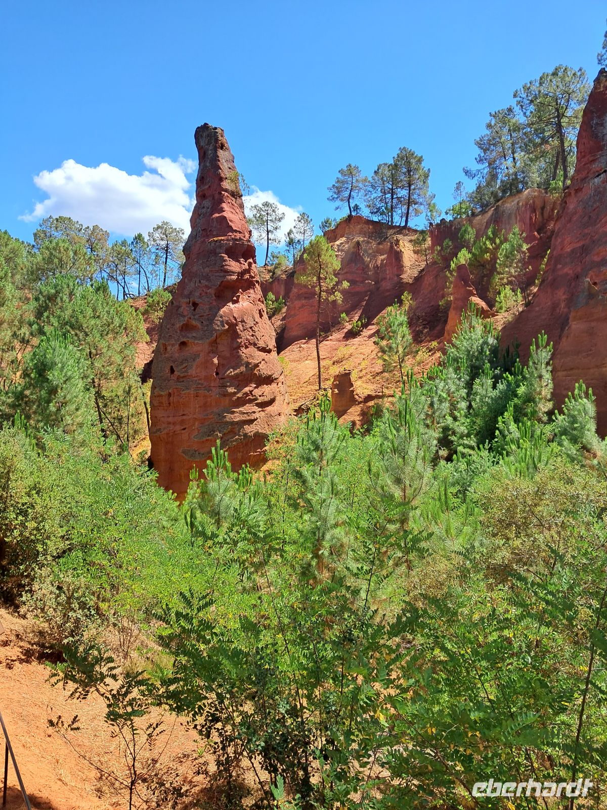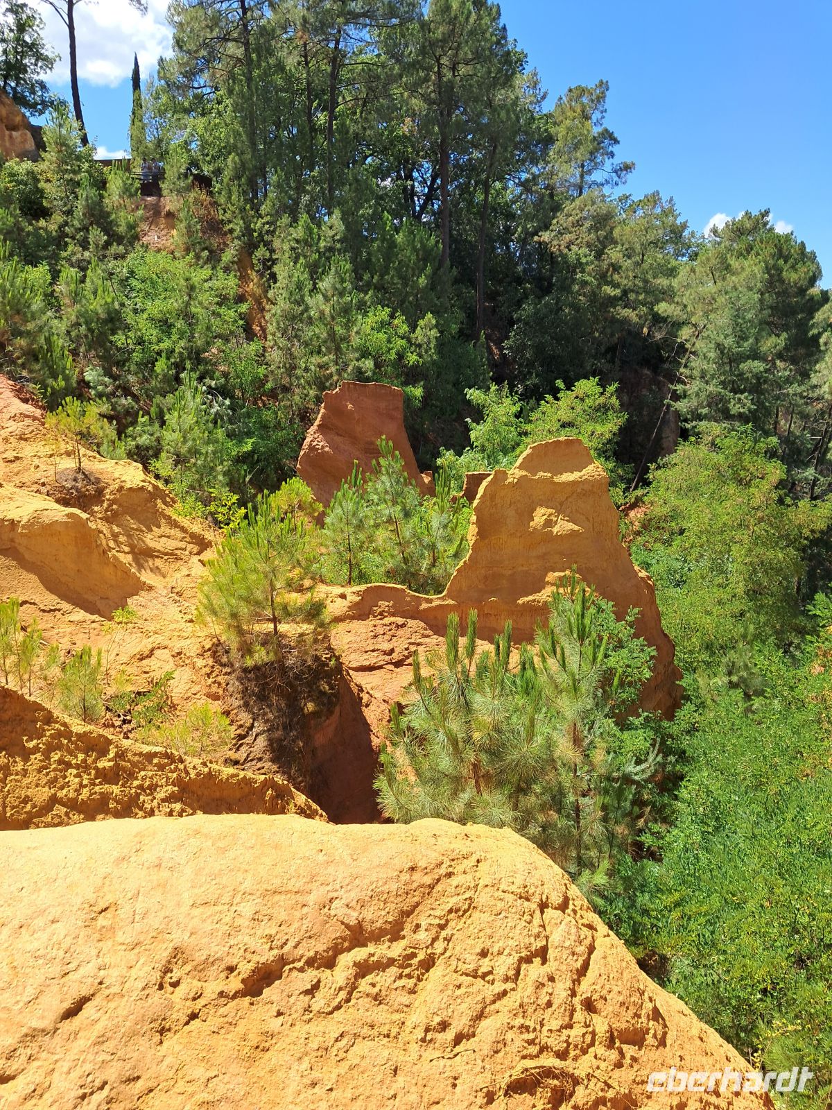 Roussillion, das rote Dorf, steht in der Schönheit Gordes nicht nach. Es hat dazu einen Ockerpfad zu bieten, den es so woanders nicht gibt. Was für ein herrliches Spiel aus gelben und roten Formationen, inspirierend für Geist und Sinne.