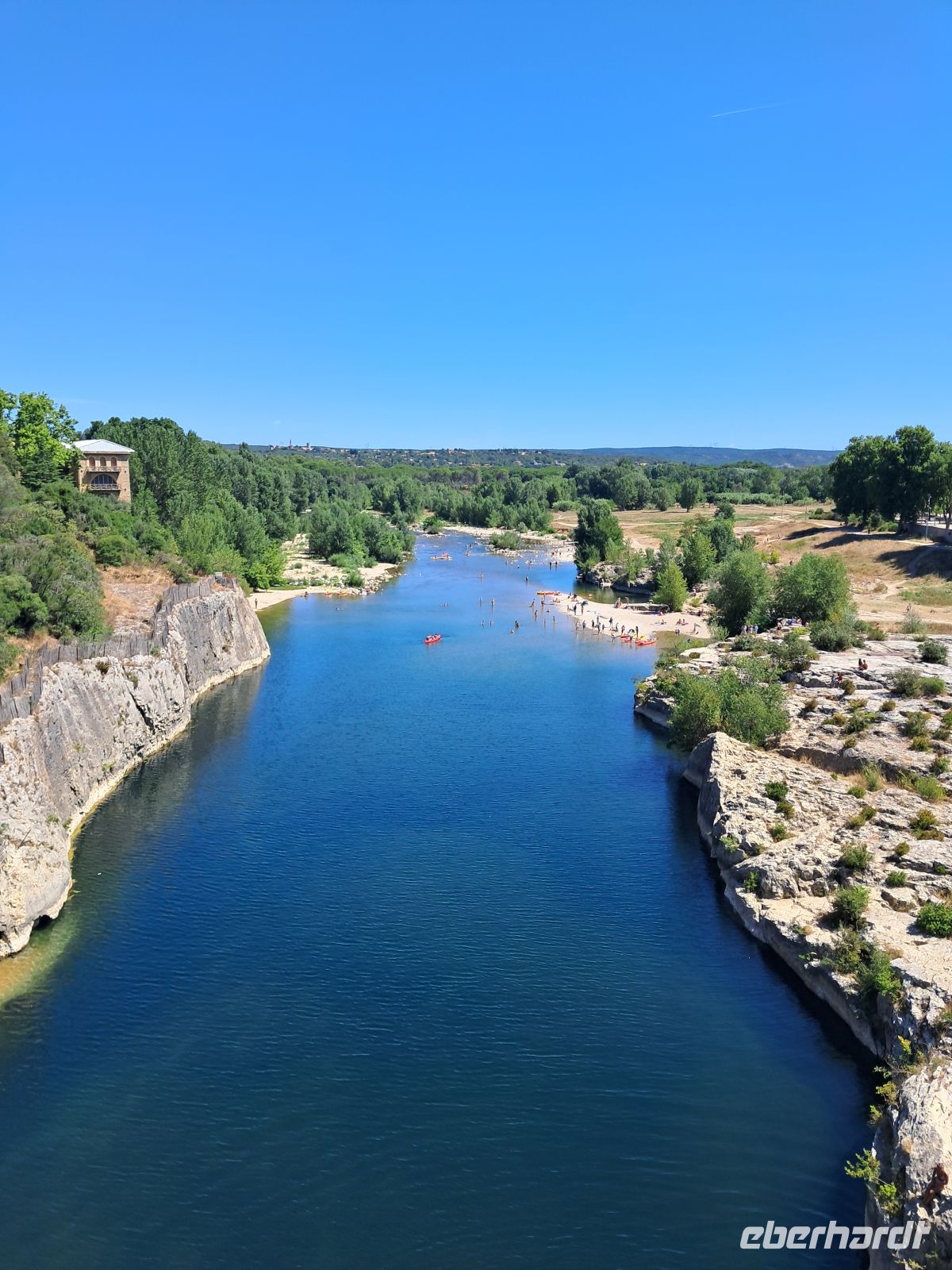 Letzter Programmpunkt der Reise: der Pont-du-Gard. Wie man zu Römerzeiten einen reinen Zweckbau so bauen konnte, dass man ihn heute noch schön findet und vielleicht auch benutzen könnte, das ist mehr als erstaunlich. Die Brücke war Teil einer Wasserleitung von Uzes nach Nimes. Um in das Innerste des Pont-du-Gard zu gelangen, bedarf es leider einer gesonderten Anmeldung. So war die Enttäuschung für unseren Pont-du-Gard-Fan groß, als sich die Tür zur eigentlichen Wasserleitung verschloss. Er wird sicherlich wiederkommen. Den Pont-du-Gard darf man gerne öfters im Leben sehen.