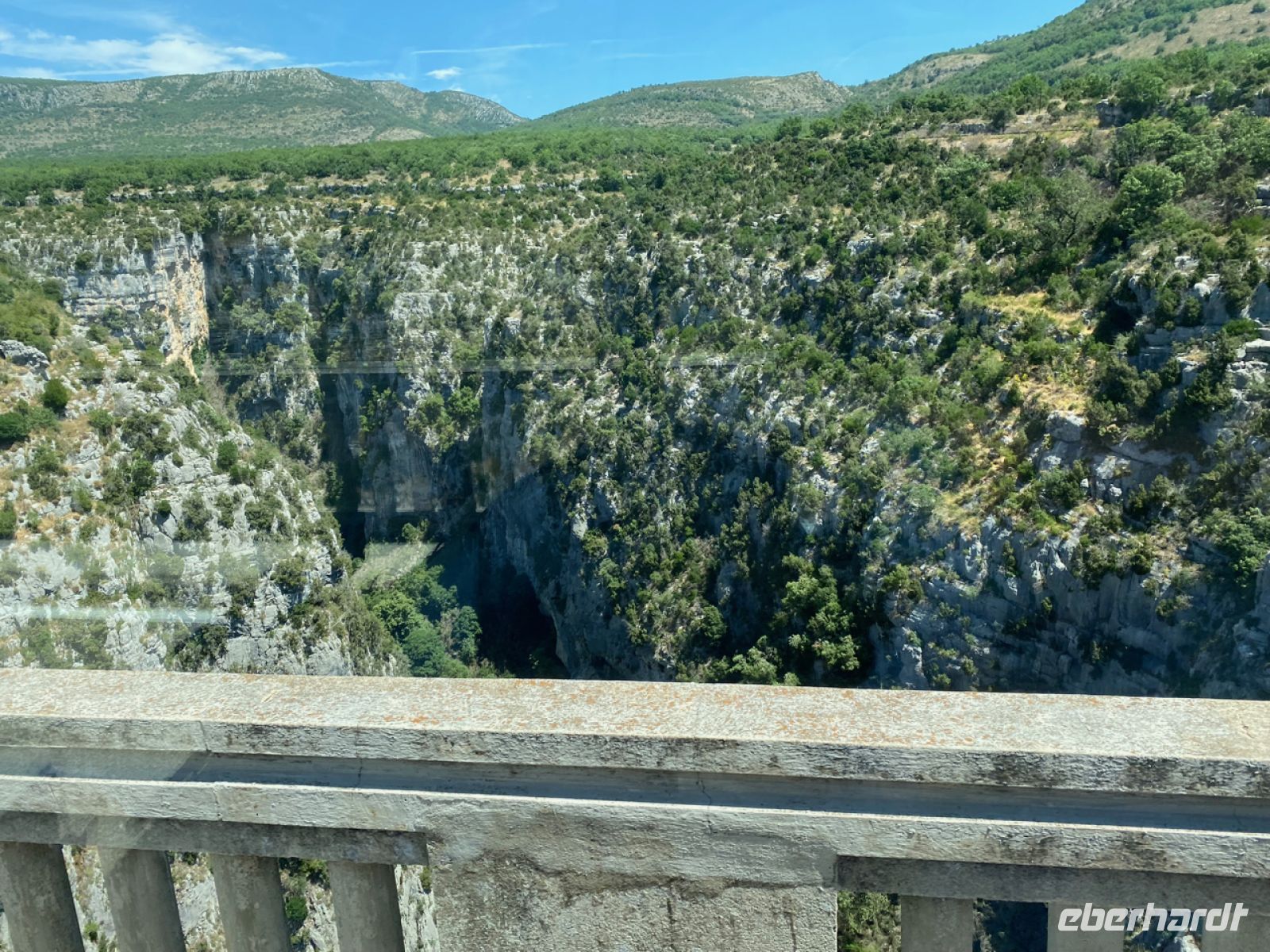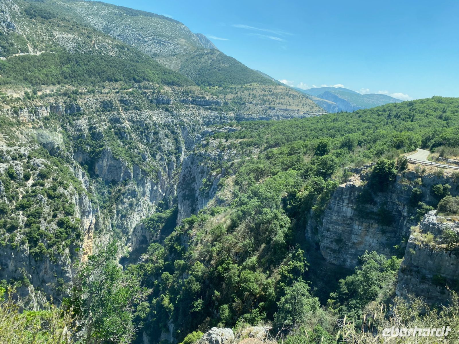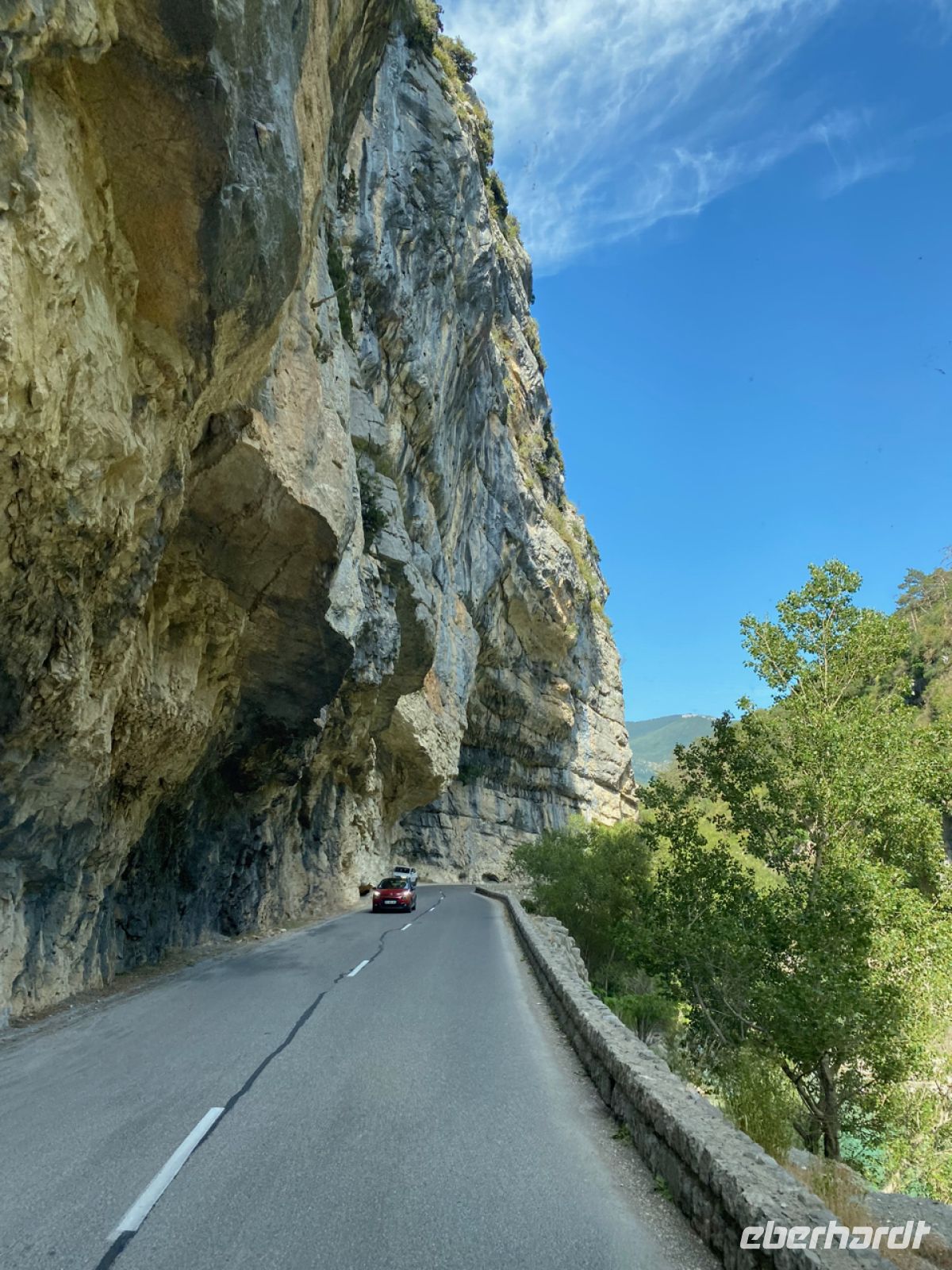 Andreas fährt uns heute mit größtem Geschick über spektakuläre, oft schmale Straßen ins Gebirge; diesmal weiter landeinwärts geht es in die wilde, ursprüngliche Landschaft. Vorbei und durch kleine Bergdörfer, über Straßen, die teilweise auf Napoleon Bonaparte zurückgehen, erreichen wir die Verdonschlucht. Unglaubliche 700 Meter ist sie an einigen Stellen tief, unter uns glitzert das Wasser in einem schwer zu beschreibenden leuchtenden Türkis.