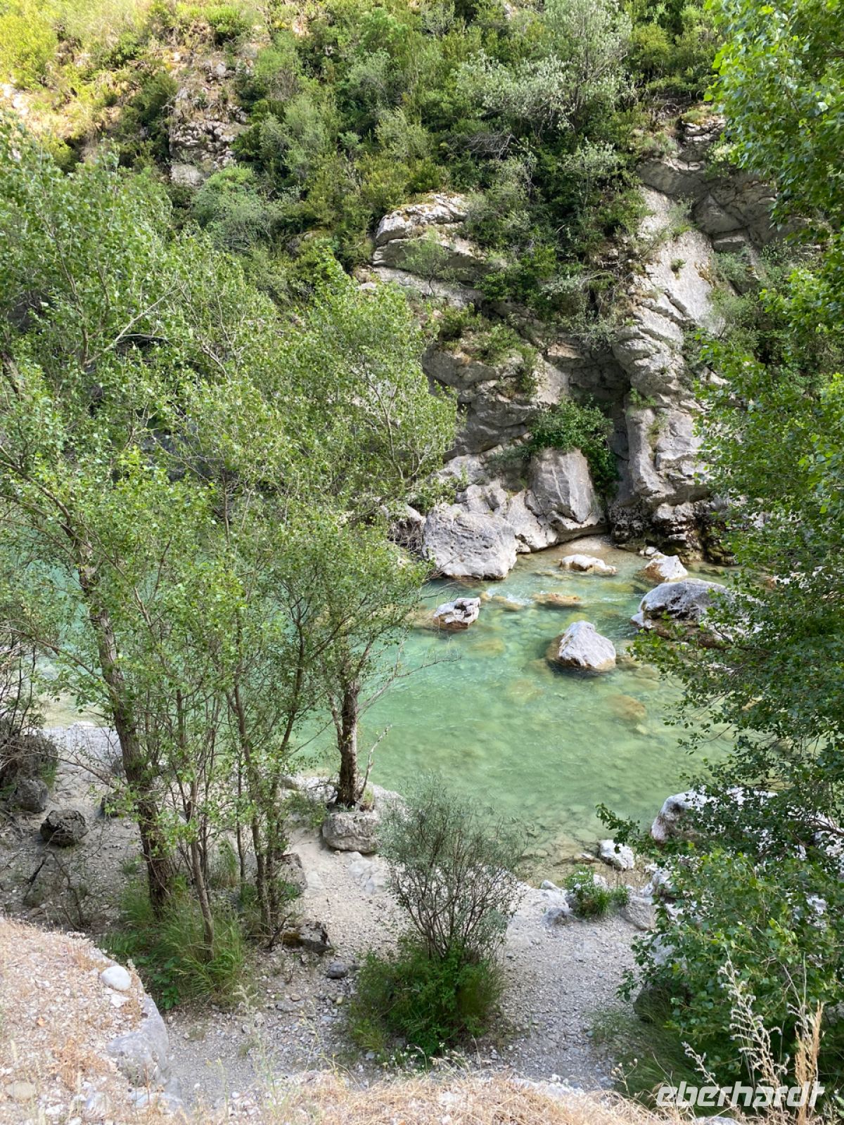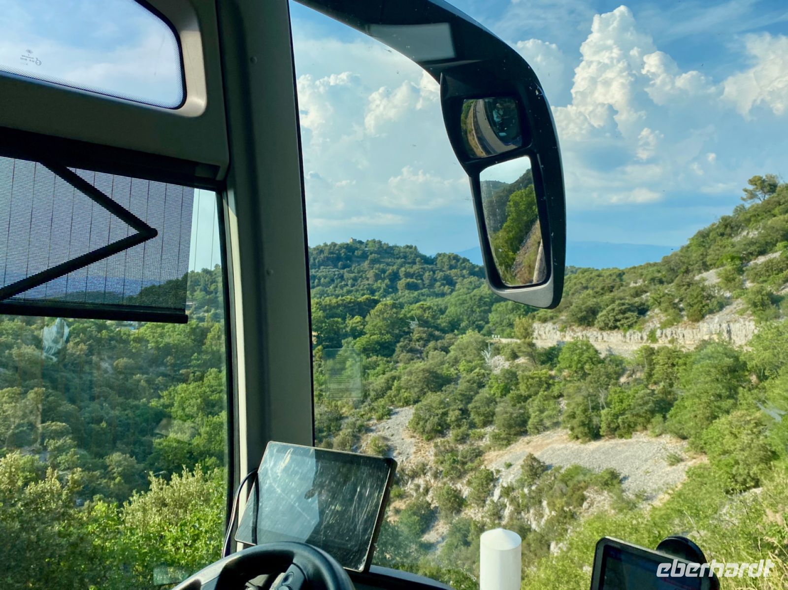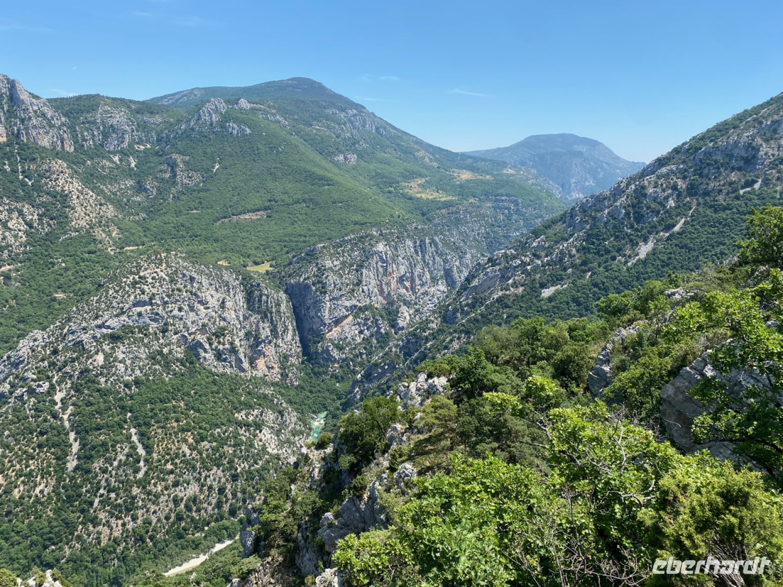Andreas fährt uns heute mit größtem Geschick über spektakuläre, oft schmale Straßen ins Gebirge; diesmal weiter landeinwärts geht es in die wilde, ursprüngliche Landschaft. Vorbei und durch kleine Bergdörfer, über Straßen, die teilweise auf Napoleon Bonaparte zurückgehen, erreichen wir die Verdonschlucht. Unglaubliche 700 Meter ist sie an einigen Stellen tief, unter uns glitzert das Wasser in einem schwer zu beschreibenden leuchtenden Türkis.
