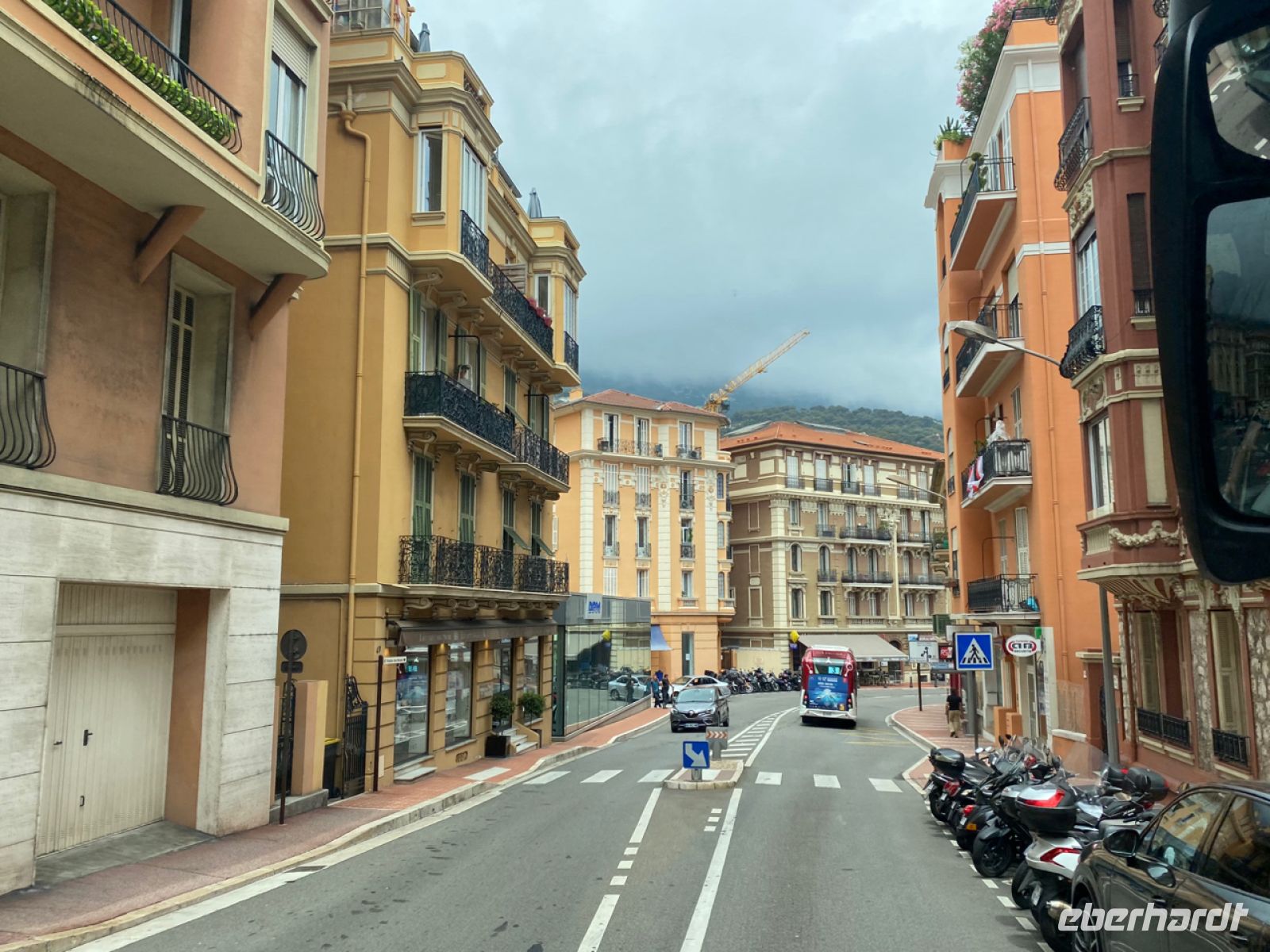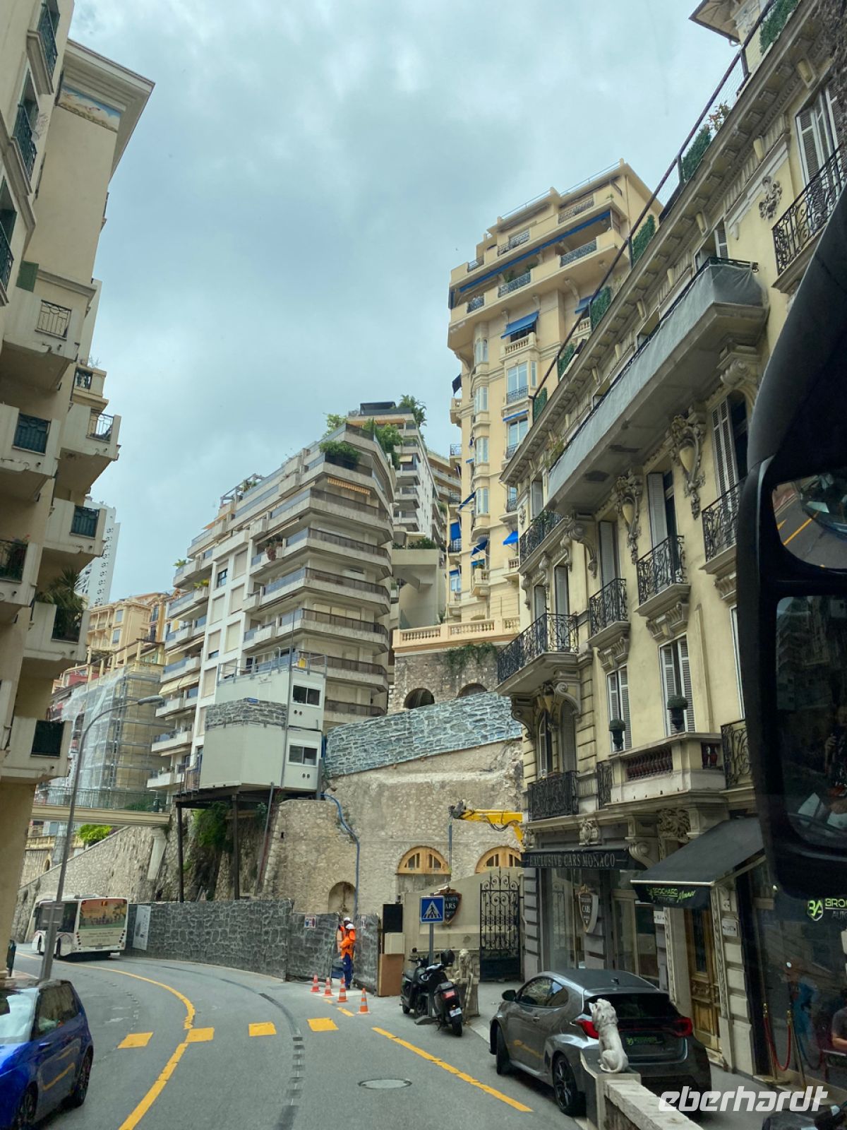 Wir fahren weiter und erreichen eine unauffällige, aber bedeutende Staatsgrenze. An einem luxuriösen, in den Felsen gebauten Busterminal gibt es einen kurzen Stopp, dann sind wir schon mittendrin in der kleinsten Großstadt Europas. Das Fürstentum Monaco ist eine ganz andere Welt, das steht ohnehin fest. Hannelore gibt uns einen hervorragenden Überblick, und Andreas lenkt währenddessen unseren Bus geschickt über die weltbekannte Formel‑1‑Strecke des Grand Prix von Monte Carlo, bevor unser Bus wieder in einer gewaltigen, unterirdischen Garage verschwindet; der Platz hier ist begrenzt und wird sehr sorgfältig ausgenutzt.