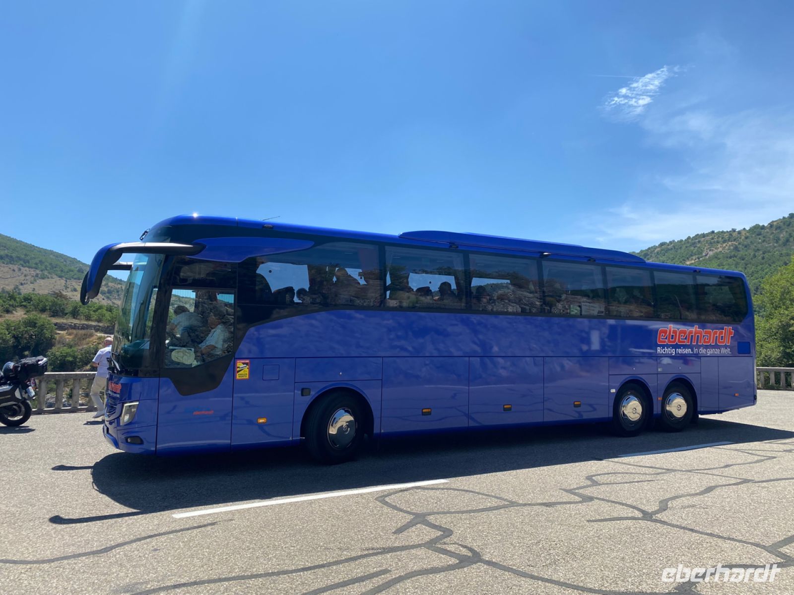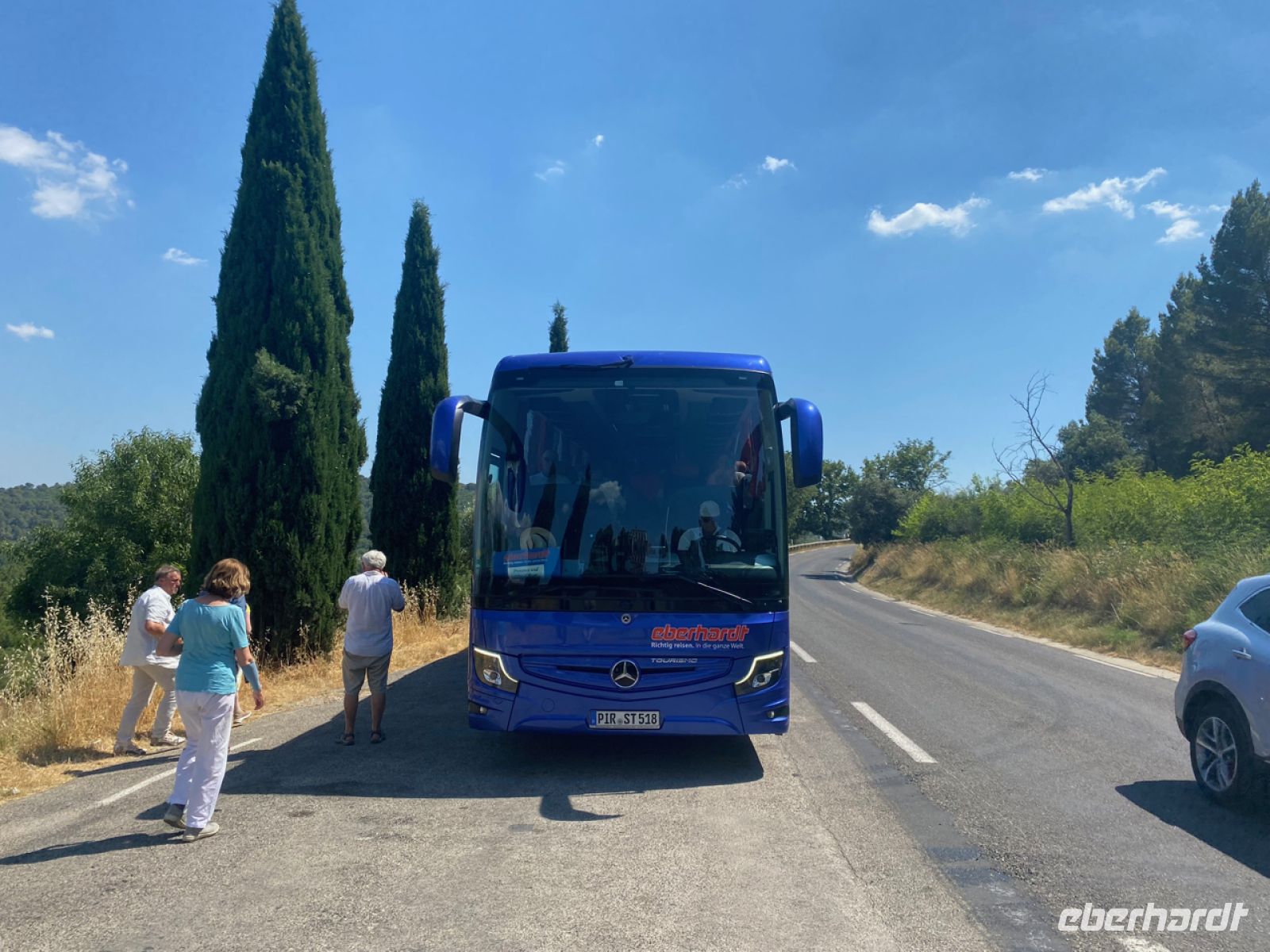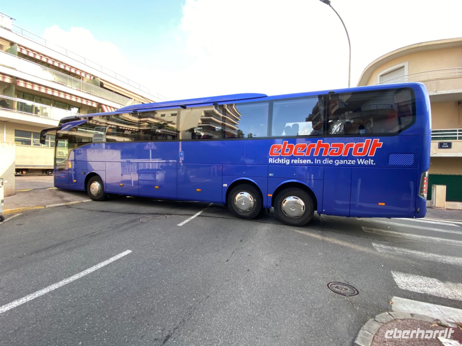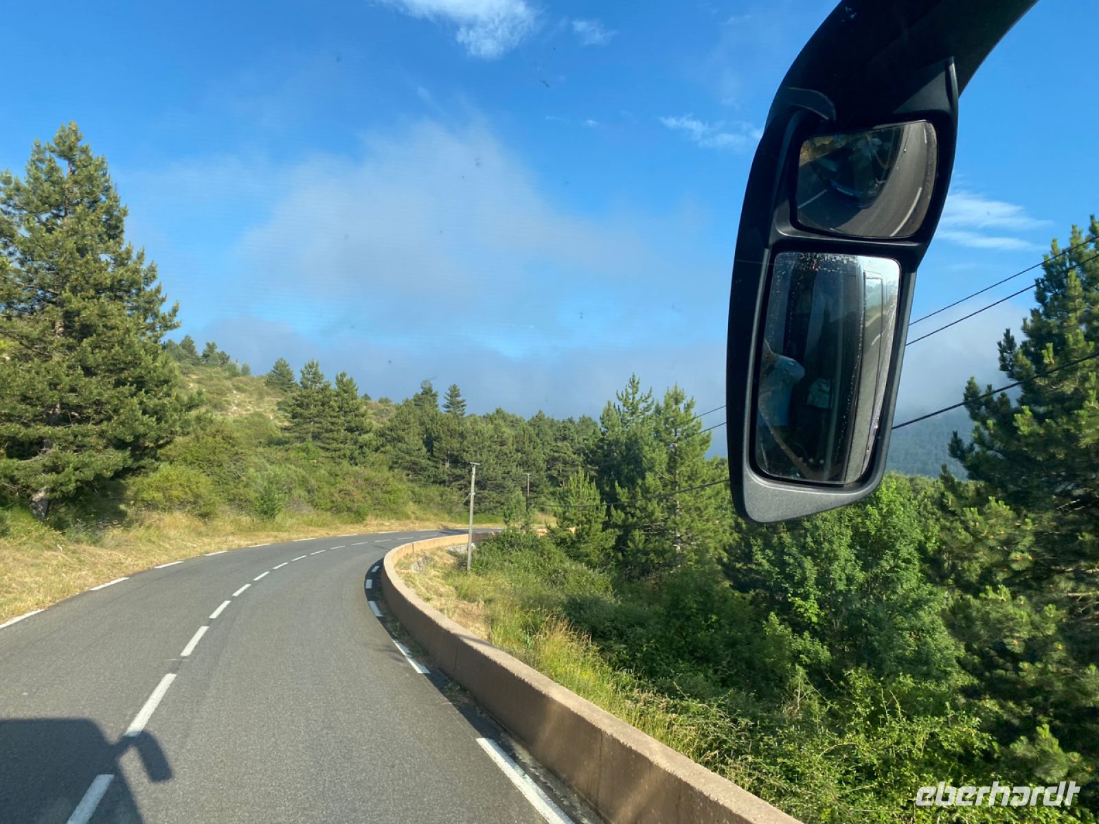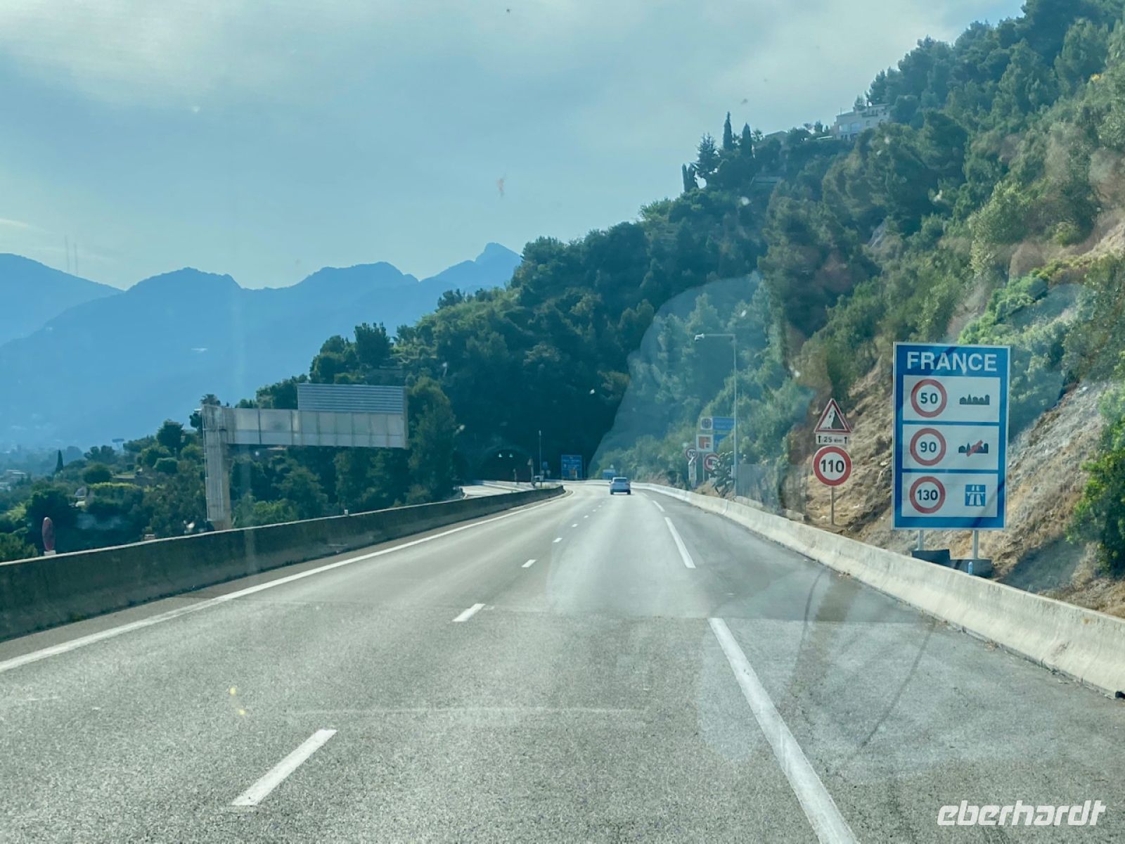Über spektakuläre Küstenstraßen bringt uns Andreas sicher voran, die Grenze zu Frankreich ist nicht weit, wir haben unser Zielland erreicht. Die andere Hälfte unserer Reisegruppe ist währenddessen bereits erfolgreich auf dem Luftweg an die Côte d’Azur angekommen, die ersten Ankunftsmeldungen gehen ein, sehr erfreulich.