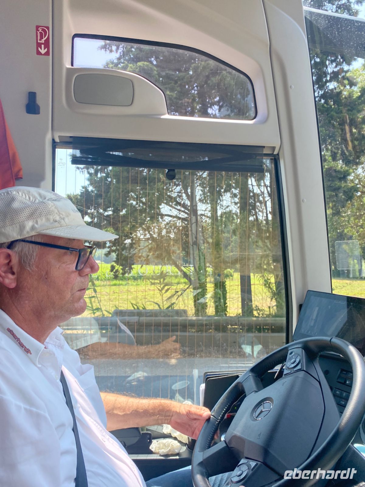 Ganz in der Nähe von Dresden im schönen Kesselsdorf beginnt der Tag von René mit einer sehr wichtigen Aufgabe; für Sicherheit und Technik unseres Busses hat er schon gesorgt. Jetzt wird die Kaffeemaschine in Betrieb genommen, und bald schon fährt er los; für unseren Tourenfahrer übernimmt er den ersten Teil der heutigen langen Fahrstrecke, wir fühlen uns wohl, die meisten dösen noch, und im Laufe des Tages werden alle wach und munter.