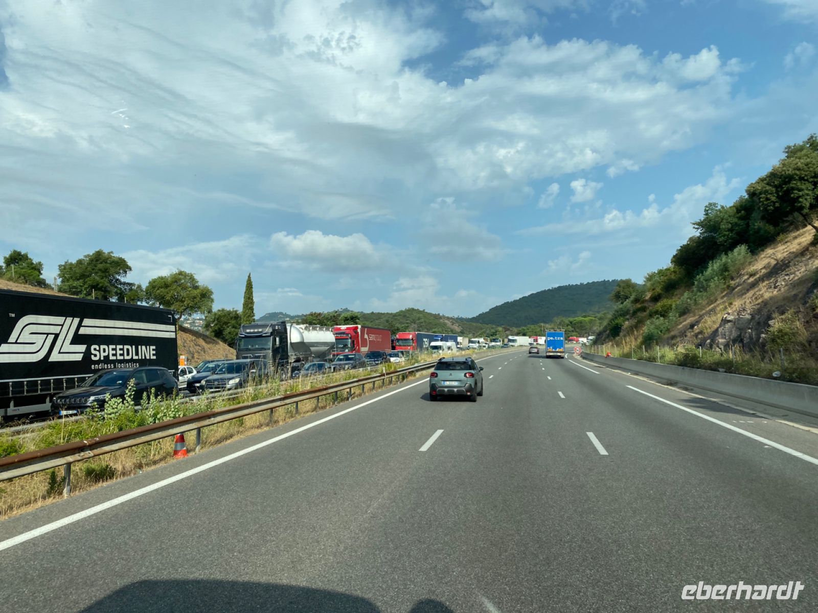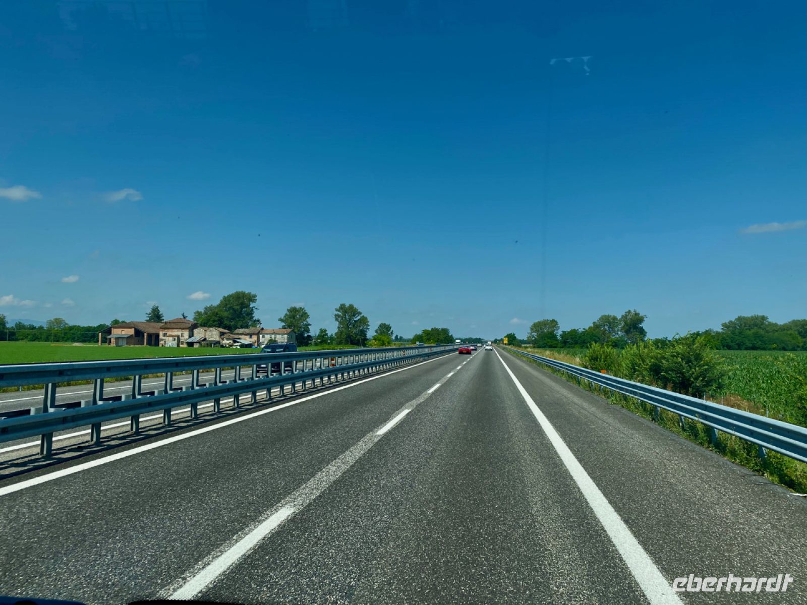 Auch der Verkehr ist uns gewogen, Sonntag ist es auch. Über staufreie Autobahnen fahren wir dem Mittelmeer entgegen. Wir machen gelegentlich Rast an einigen der legendären Autogrills; mit Espresso und Spremuta, also frisch gepresstem Orangensaft, kommt italienische Sommerfreude auf.