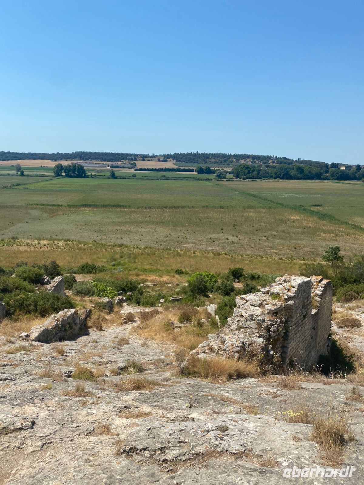 Wir genießen die weite Aussicht vom Burgberg, weit unten liegen die wassergetriebenen Mühlen von Barbegal aus der Römerzeit, deren Überreste wir als Nächstes einen Besuch abstatten. Hier wurde schon in der Antike eine hocheffiziente Lebensmittelfabrik realisiert, wir können aus nächster Nähe zweitausend Jahre alten Beton bewundern, der all die Zeit deutlich besser hielt als so manch deutsches Bauwerk der letzten Jahrzehnte.