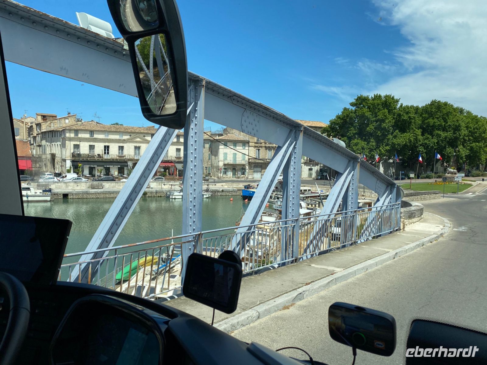 Dem Rhône‑Fluss entlang fahren wir nach Süden, am rechten Ufer entlang einer besonders malerischen Strecke, und erreichen Arles bei wiederum schönstem Sommerwetter. Die Überreste der alten Eisenbahn‑Löwenbrücke erinnern an den Zweiten Weltkrieg; wir halten hier kurz inne und widmen uns nun aber ganz den Römern.