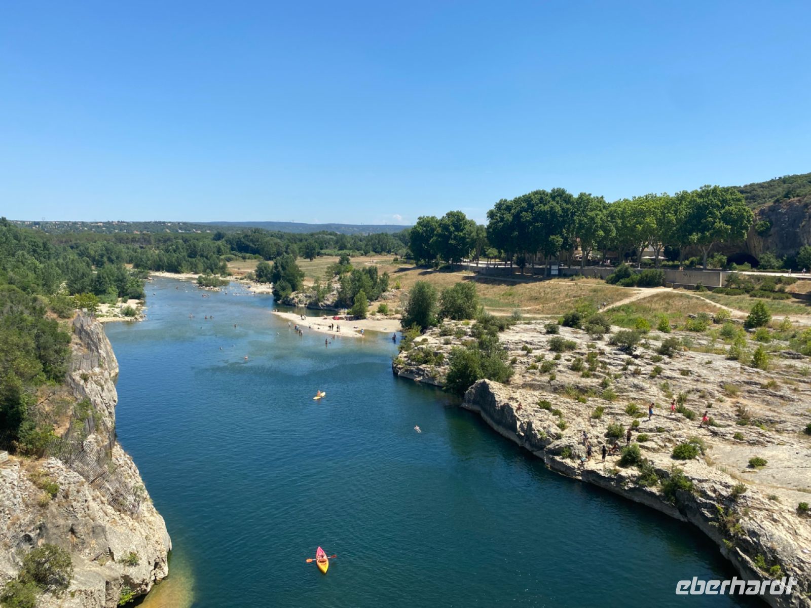 Immer wieder war der Bau von Tunneln und Leitungsbrücken, Aquädukt genannt, notwendig. Die bedeutendste Überquerung wurde hier am Fluss Gardon realisiert: 275 Meter lang, 49 Meter hoch und heute noch stabil. Wer mehr wissen will: Ein Museum, ein Kino und eine Buchhandlung erlauben je nach Interesse auch die Vertiefung in die Materie. Man kann nur staunen – oder einfach die Schönheit des Ortes am Fluss genießen.