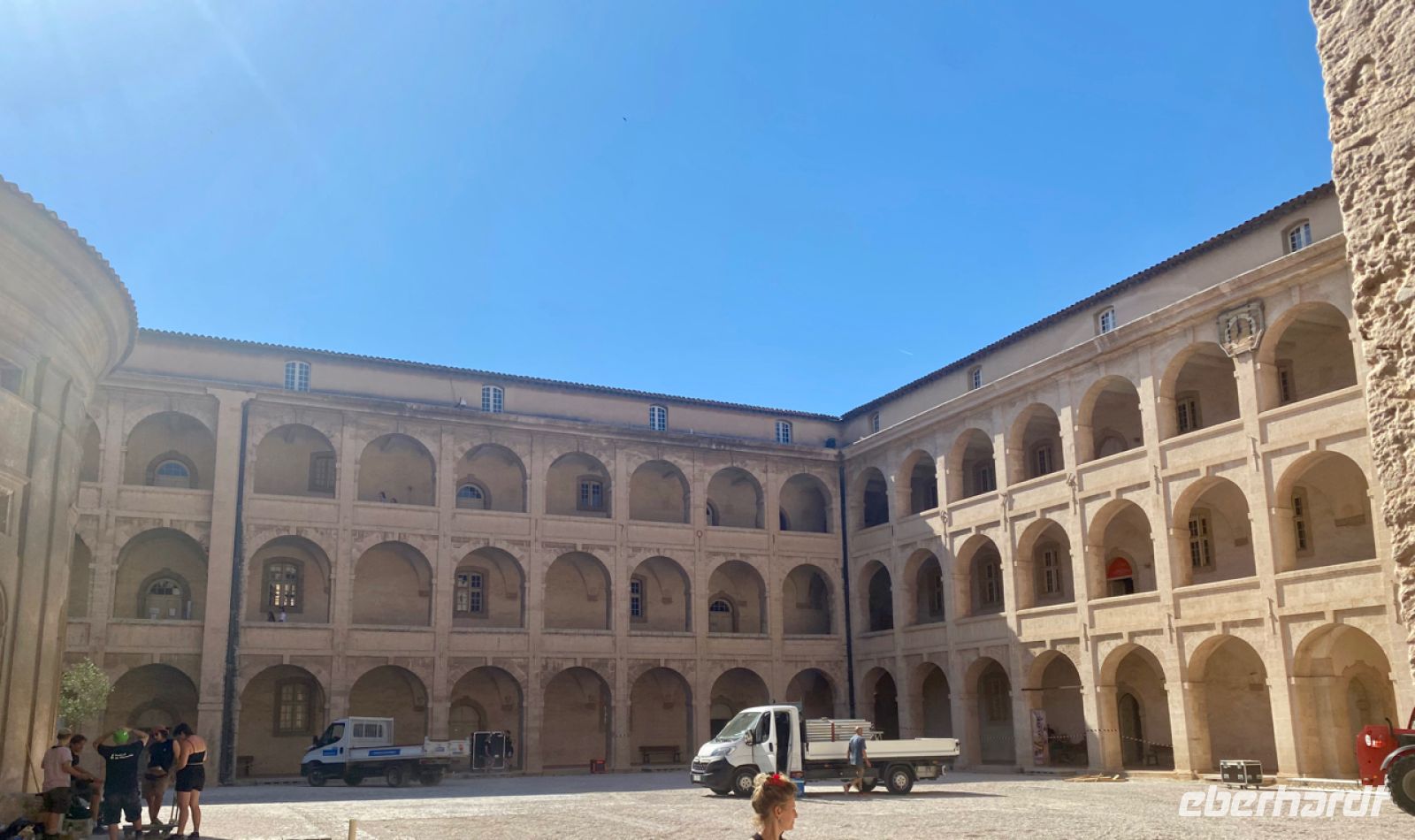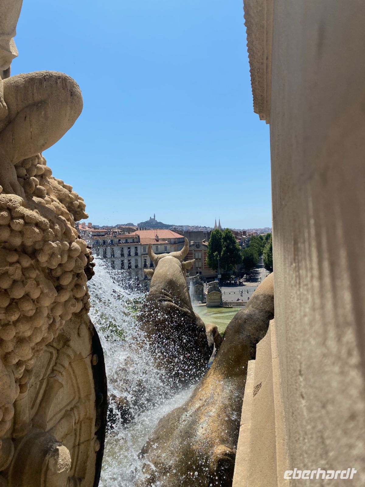 Das Chaos wirkt sich heute vor allem auf den Straßenverkehr aus, wir haben aber Glück: Es ist Samstag, und so ist es sogar recht ruhig für hiesige Verhältnisse, wie uns Katrin erzählt. Sie führt uns durch Marseille. Wir beginnen zum Auftakt mit einem Besuch des Palais Longchamp, von dem wir einen wunderbaren Ausblick auf die Stadt haben. Dann geht es weiter mit einer Pause an den Resten des antiken Hafens mit der Möglichkeit zum Besuch des Museums dort. Danach fahren wir weiter durch die Stadt, das heißt genauer gesagt: Wir werden von Andreas gefahren, ein sehr angenehmer Luxus.