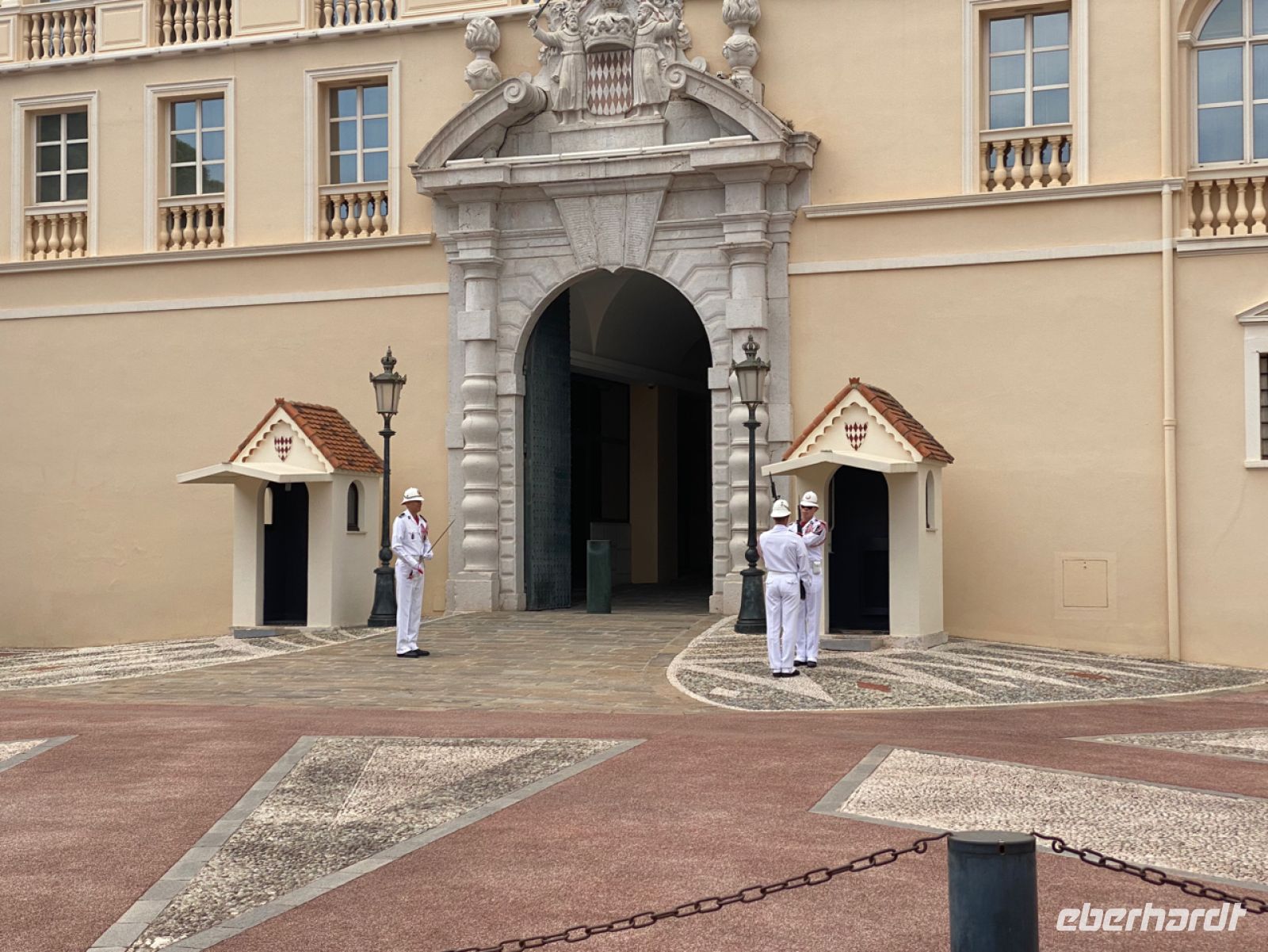 Über eine öffentliche Rolltreppe geht es nach oben, und wir werden durch die Altstadt geführt; wir besichtigen die Kathedrale Notre‑Dame‑Immaculée, in der alle großen erfreulichen und auch traurigen Feiern der Familie Grimaldi begangen wurden, und erreichen dann den Palast des Fürsten. Nach einer Stunde Freizeit, zum Beispiel zum Besuch des Ozeanografischen Museums, treffen wir uns alle (!) hier wieder und sehen den Wechsel der fürstlichen Wache.