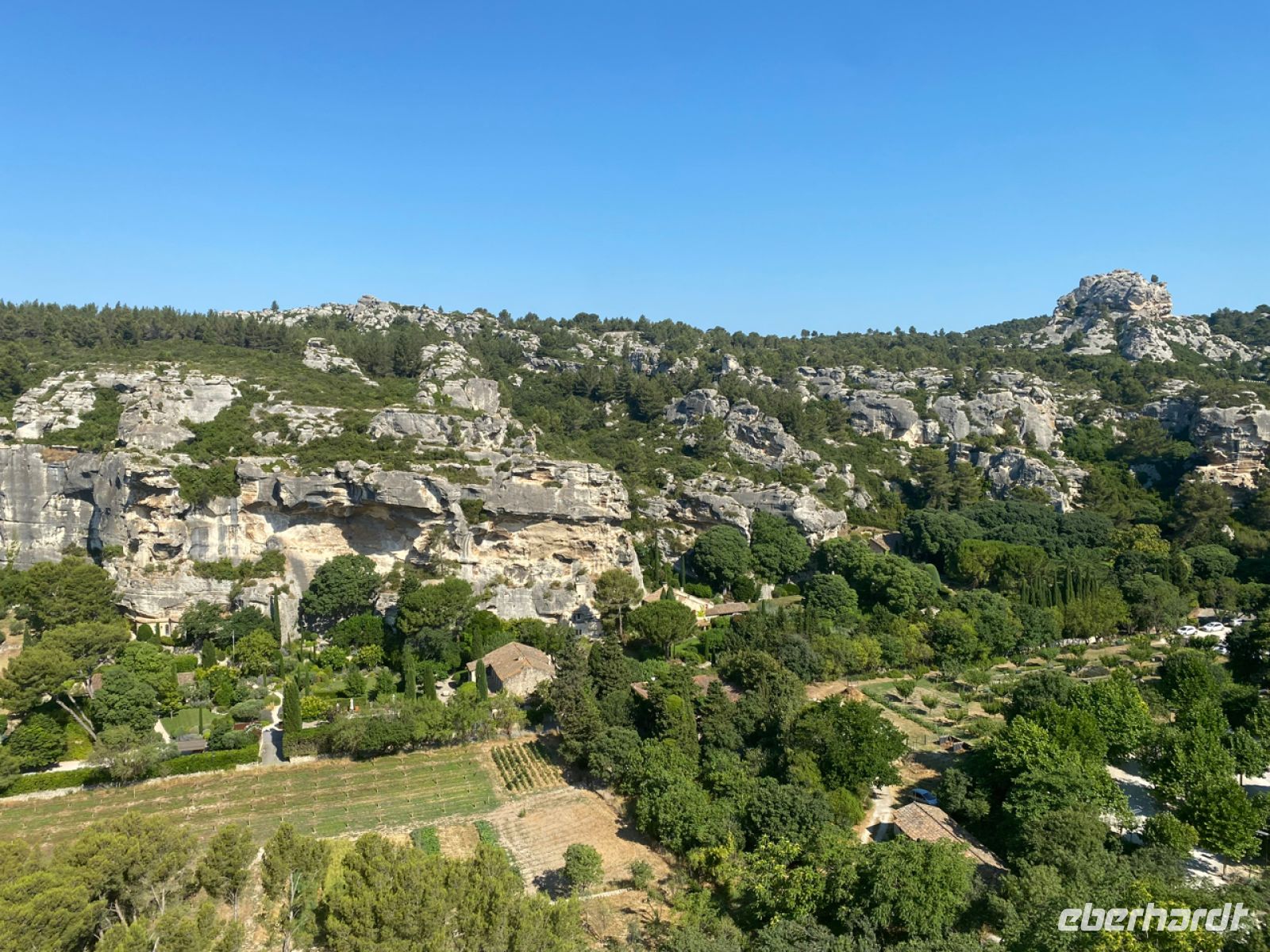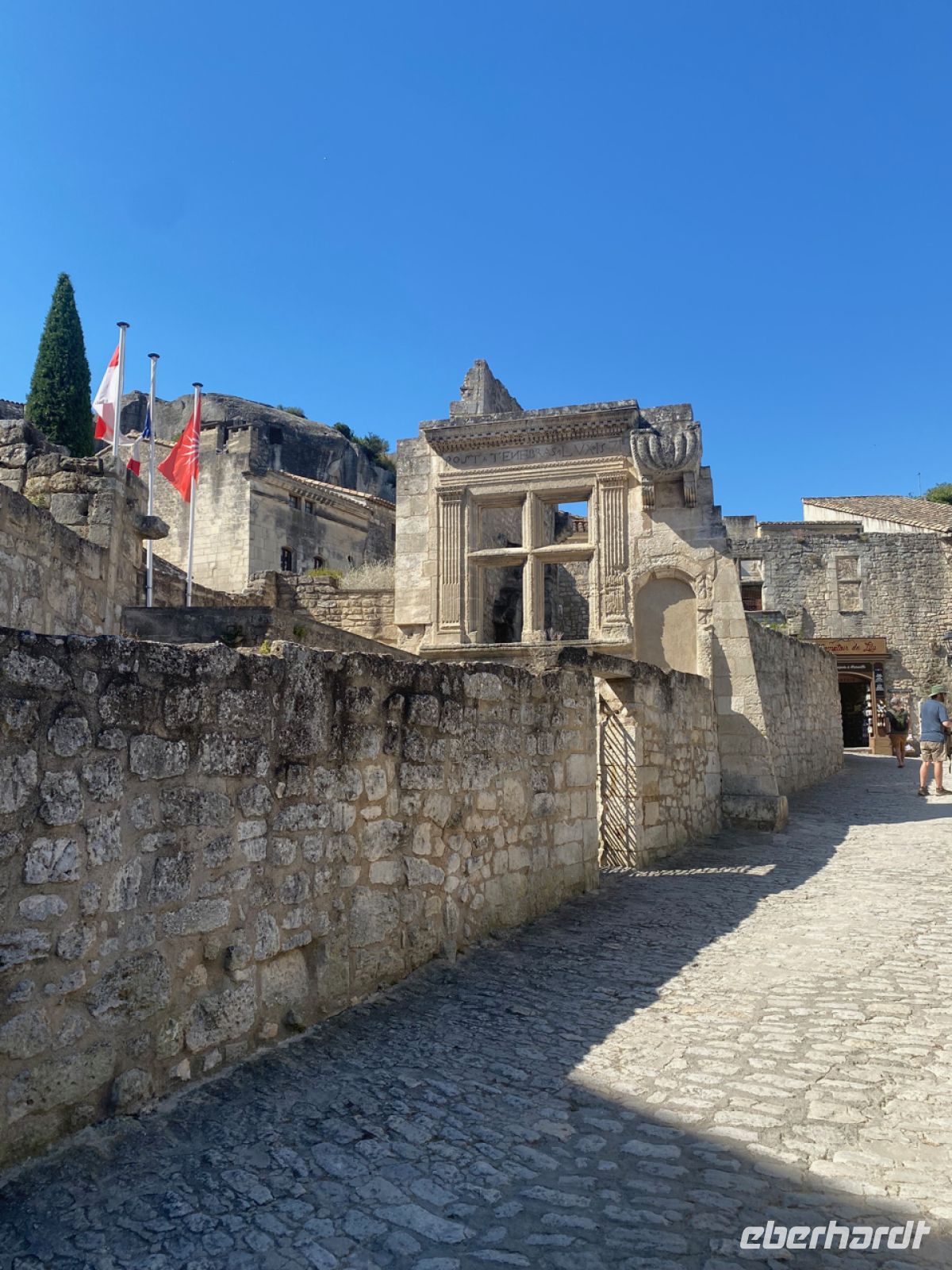 Der Name darf nicht als „die Schönen“ falsch verstanden werden, das wären „Les Beaux“. Ein altes Wort für Felsen gab dem Ort seinen Namen – und der wiederum einem Gestein: Vor 200 Jahren wurde hier Bauxit entdeckt. Im Ort wird viel Kunst produziert und angeboten, auch eine Ausstellung über Krippenkunst findet fachmännische Anerkennung, und die Eisverkäufer im Ort freuen sich auch über unseren Besuch.