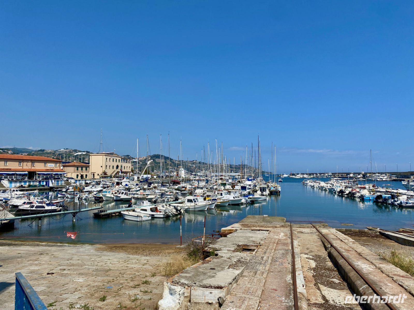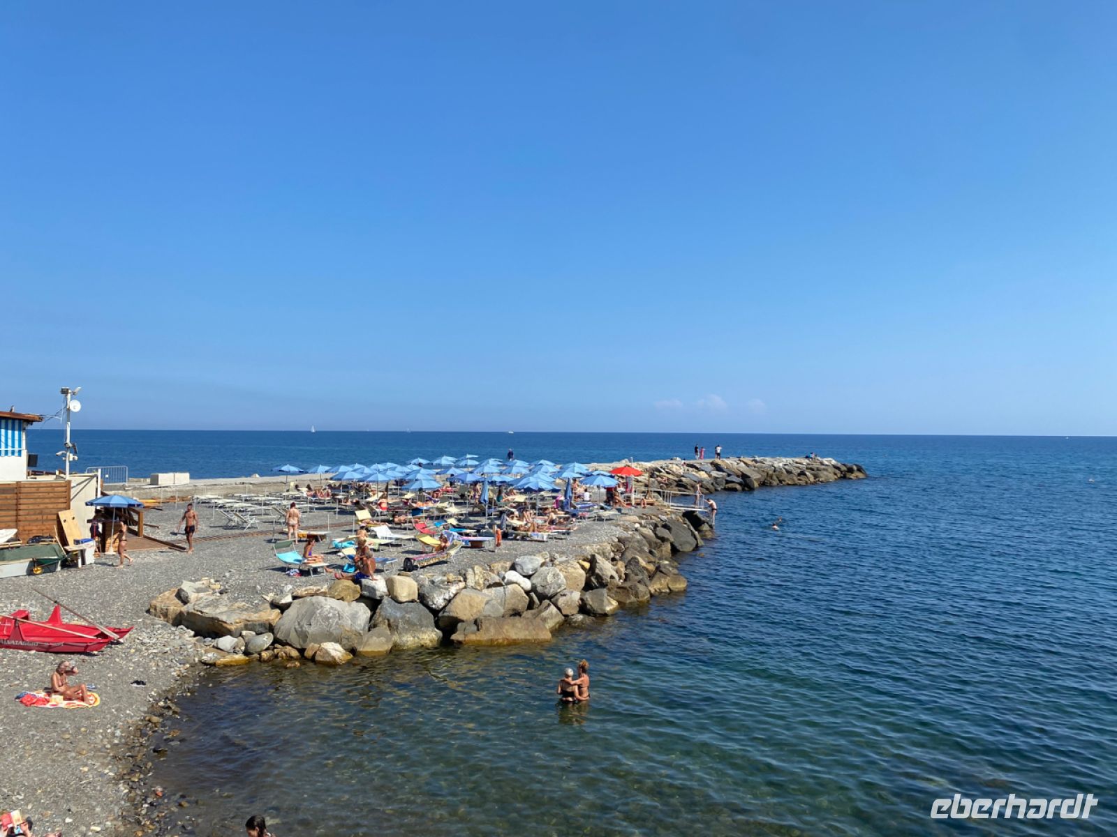 Gegen Mittag erreichen wir Sanremo, die Perle der italienischen Riviera, wie die Stadt auch genannt wird. Über steile Straßen, an den Gewächshäusern der Blumenriviera vorbei, geht es fast direkt an den Strand. Hier gibt es schon die erste Bademöglichkeit auf unserer Reise, es werden noch viele sehr schöne dazukommen.