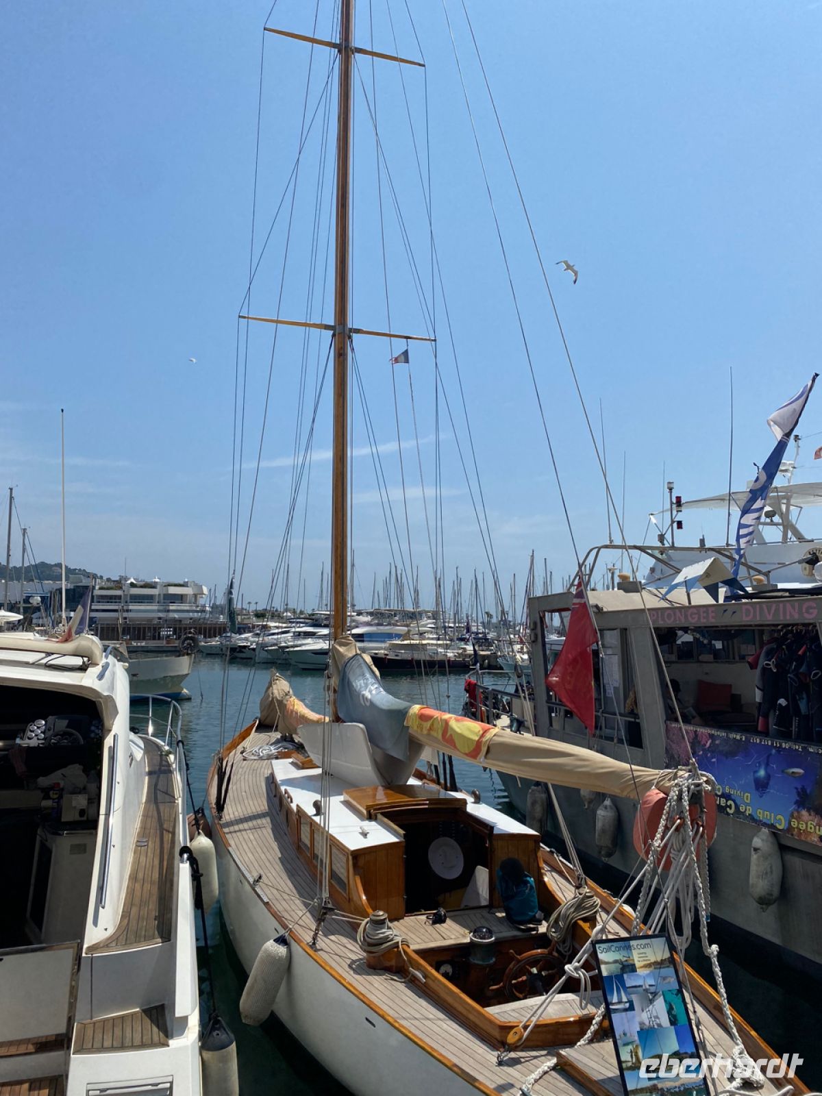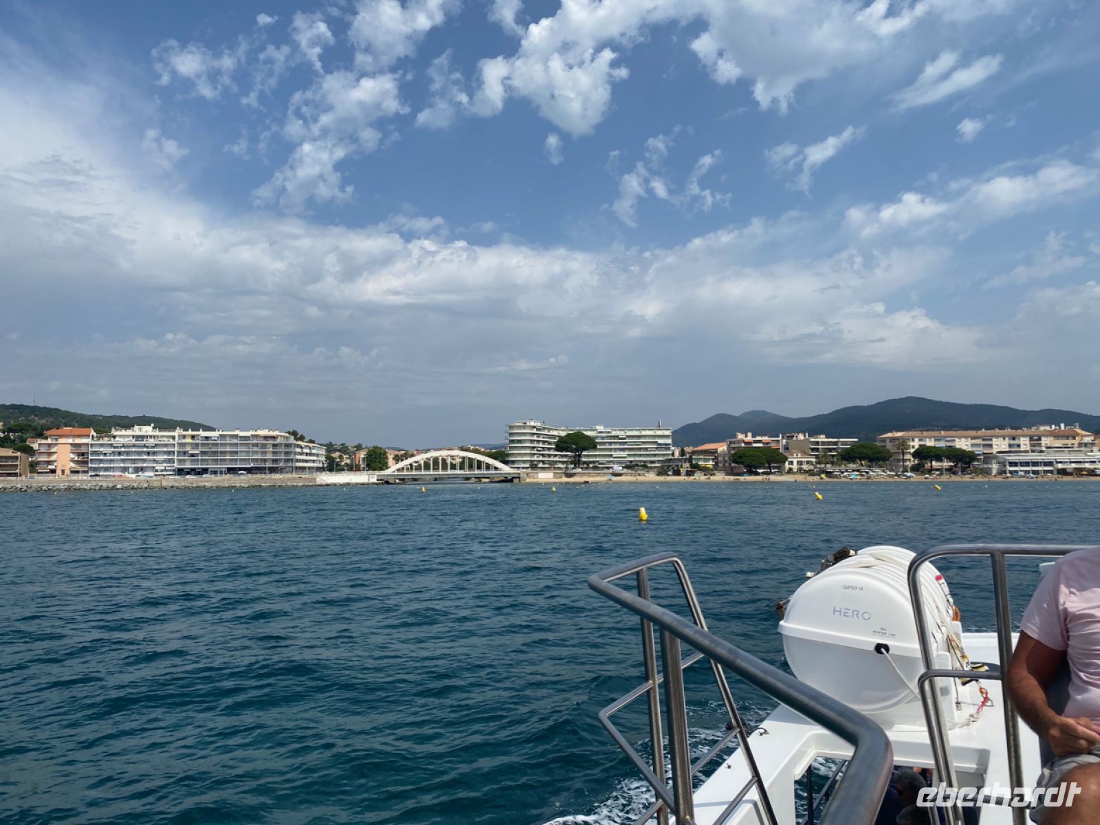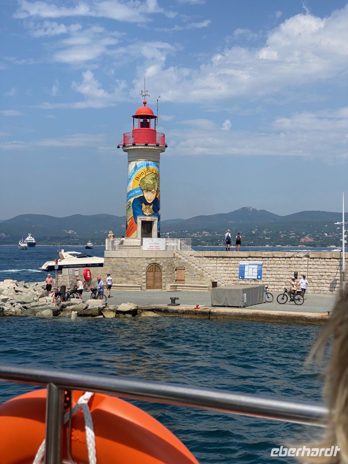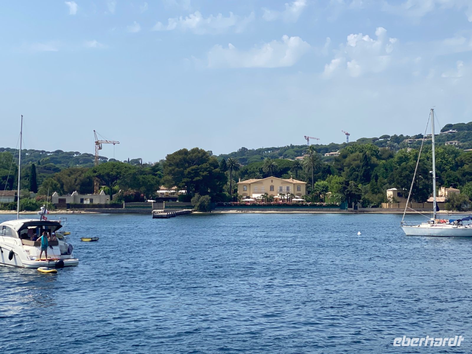 Nun machen wir uns auf den Weg nach Saint‑Tropez, auf die eleganteste Weise: auf dem Seeweg. Ein kleines, fast privates Boot bringt uns über den Golf von Saint‑Tropez. Nicht wie ein Linienboot auf direktem Weg, sondern entlang der schönstmöglichen Streck الماضي erscheint neu. So können wir auch Les Canebiers bestaunen, den Teil von Saint‑Tropez mit den besonders großen und schönen Anwesen. Alles, was sehr viel Rang und Namen hatte, vor allem aus der Welt der Kunst und des Films, ließ sich hier nieder – und viele trafen sich dann auch später auf dem malerischen Seemannsfriedhof von Saint‑Tropez zur letzten Ruhe.