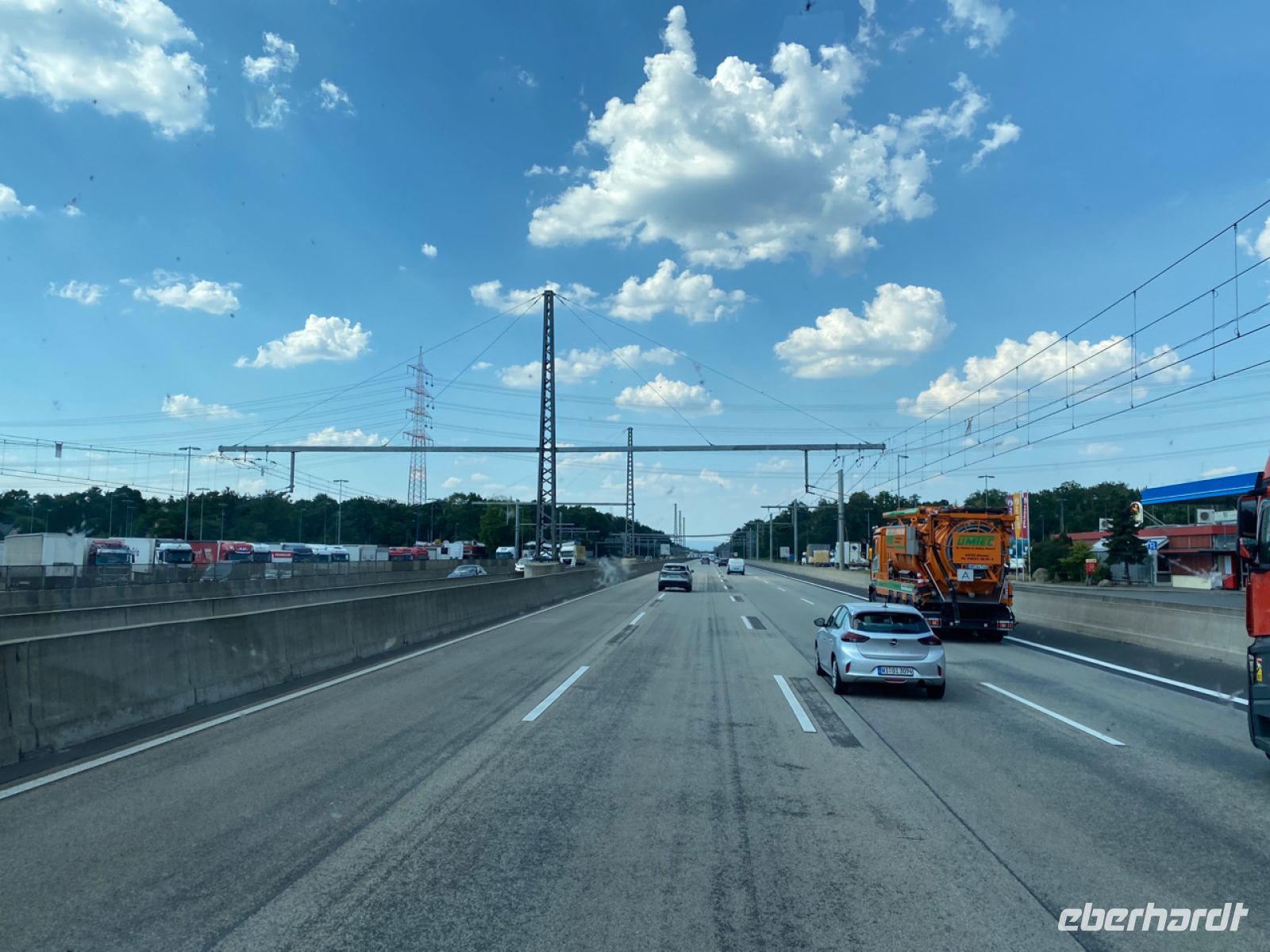 Andreas am Steuer, der Verfasser dieses Berichts und eine fröhliche Busgruppe verlassen Frankreich bei schönstem Wetter und einer angenehmen Fahrt auf der „Autoroute“ („Outoroute“, wie man auf Französisch sagt). Wegen Bauarbeiten in der Nähe von Straßburg verlassen wir diese und fahren über Landstraße eine malerische, großräumige Umleitung und kommen so in den Genuss einer kleinen Rundfahrt durch pittoreske elsässische Dörfer. Eine Gegend, die auf jeden Fall auch immer eine eigene Reise wert ist!