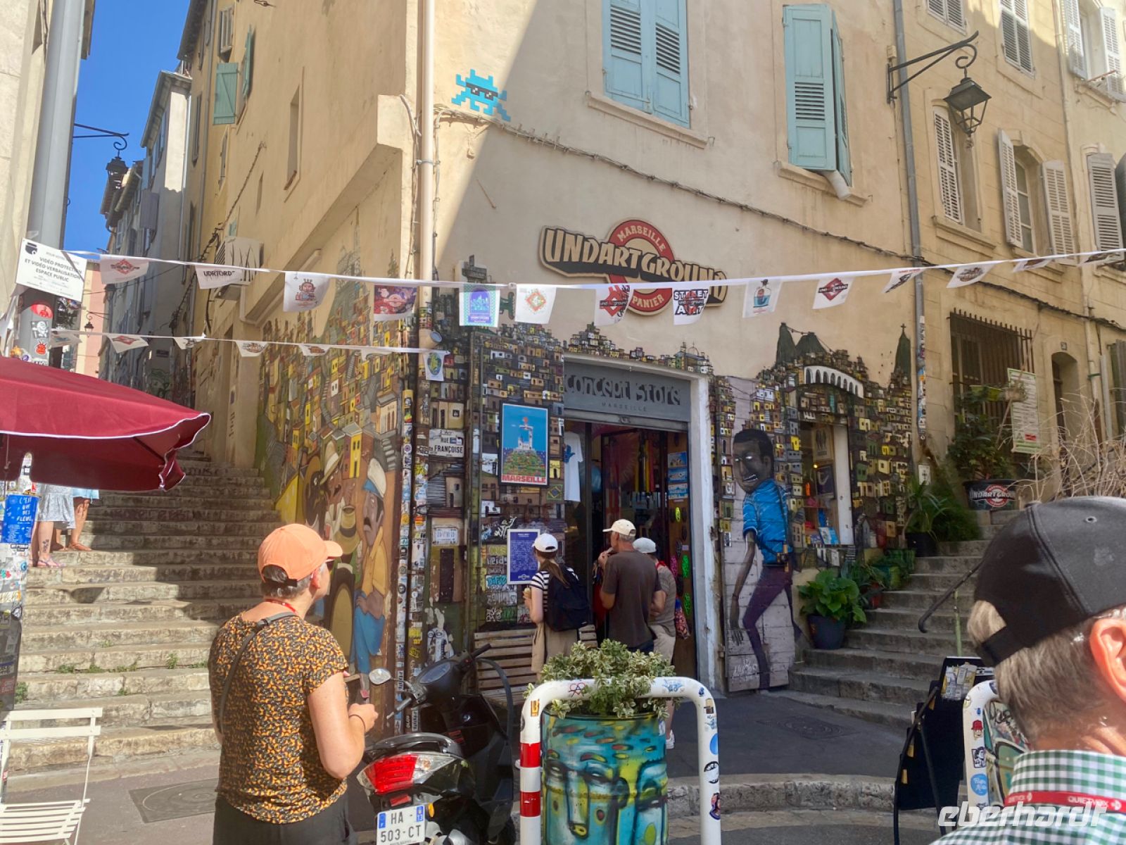 Einen besonderen Stadtteil kann aber auch der beste Busfahrer nicht durchfahren: Le Panier. Der größte Teil dieses beliebten Viertels ist nur zu Fuß durch enge Gassen erreichbar. Hier, im ältesten Teil der Stadt, lebten einst die Griechen, dann wurde es der Kern der römischen Stadt, und viele Jahrhunderte später haben es sich nun vor allem Künstler zueigen gemacht.