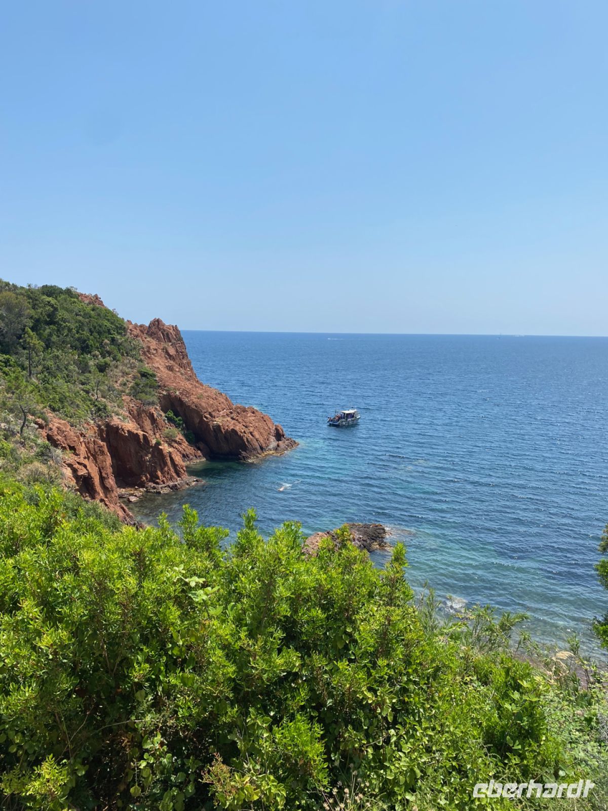 Es folgt eine Fahrt im Bus über eine der schönsten Strecken Frankreichs, wir fahren entlang der Küste durch das Esterel‑Gebirge, das hier mit seinen spektakulären Porphyr‑Felsen ins Meer abfällt. An einigen besonders schönen Stellen halten wir und atmen eine ganz besondere Luft, eine Mischung aus frischer Meeresbrise und würzigem Duft der hier wachsenden Pflanzen. Eine gute Einstimmung auf den abschließenden Höhepunkt des Tages.