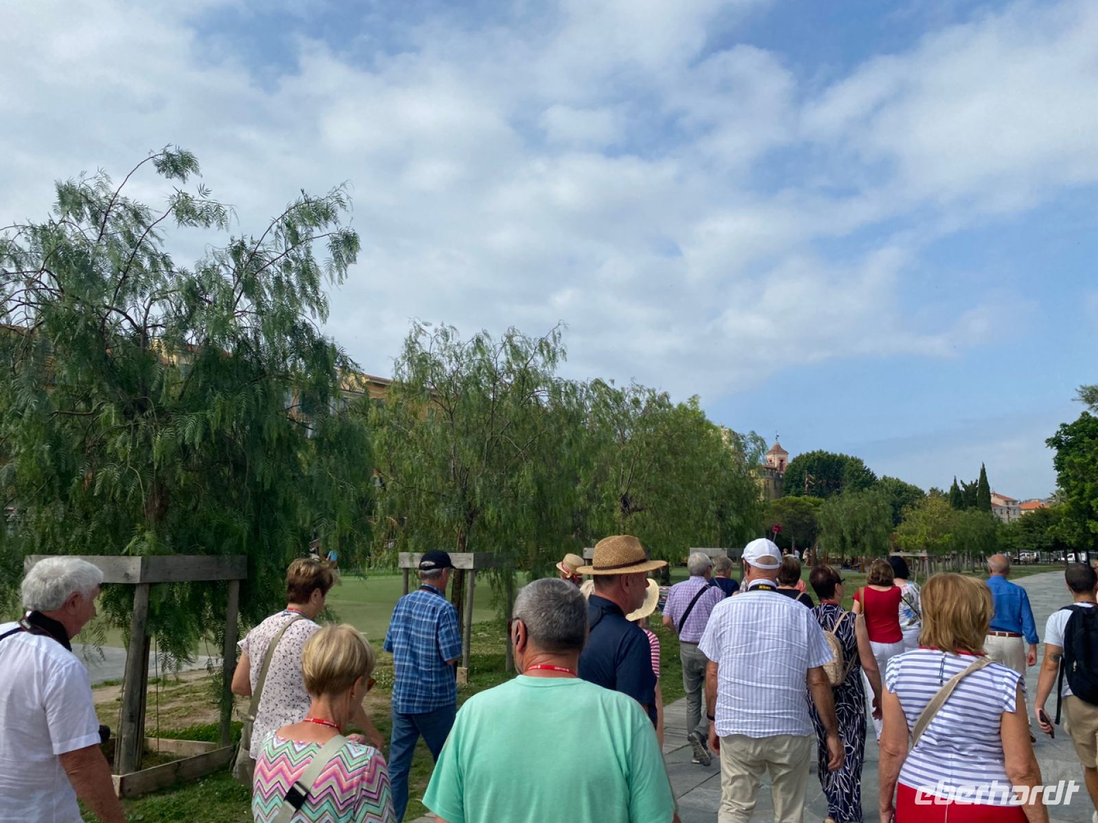 Wir wandern gemeinsam durch die Altstadt Le Suquet und besichtigen die Kirche Notre‑Dame‑d’Espérance, anschließend ist genügend Zeit, um den Rest der Stadt zu erobern, um in einem der vielen Cafés zu sitzen oder um die Autogramme der Filmstars am Boden zu sehen, die hier wörtlich Eindruck hinterlassen haben. An der berühmten roten Treppe der Filmfestspiele wird gearbeitet, das Festival de Cannes war erst vor kurzem im Vormonat.