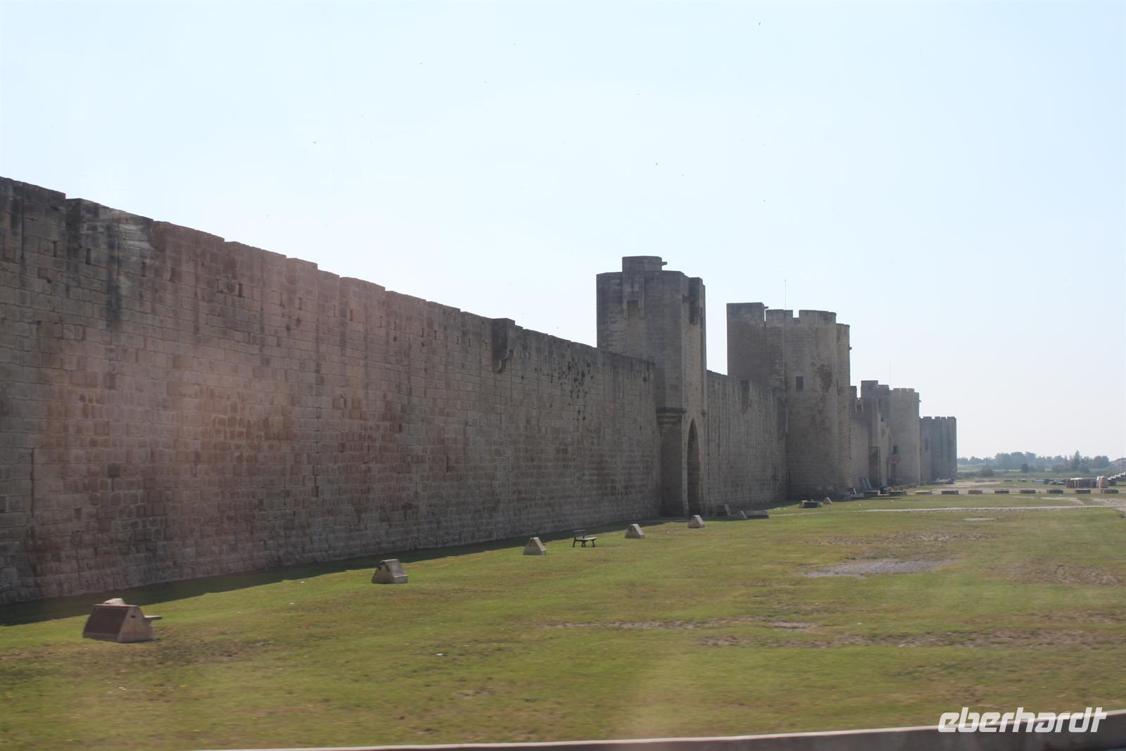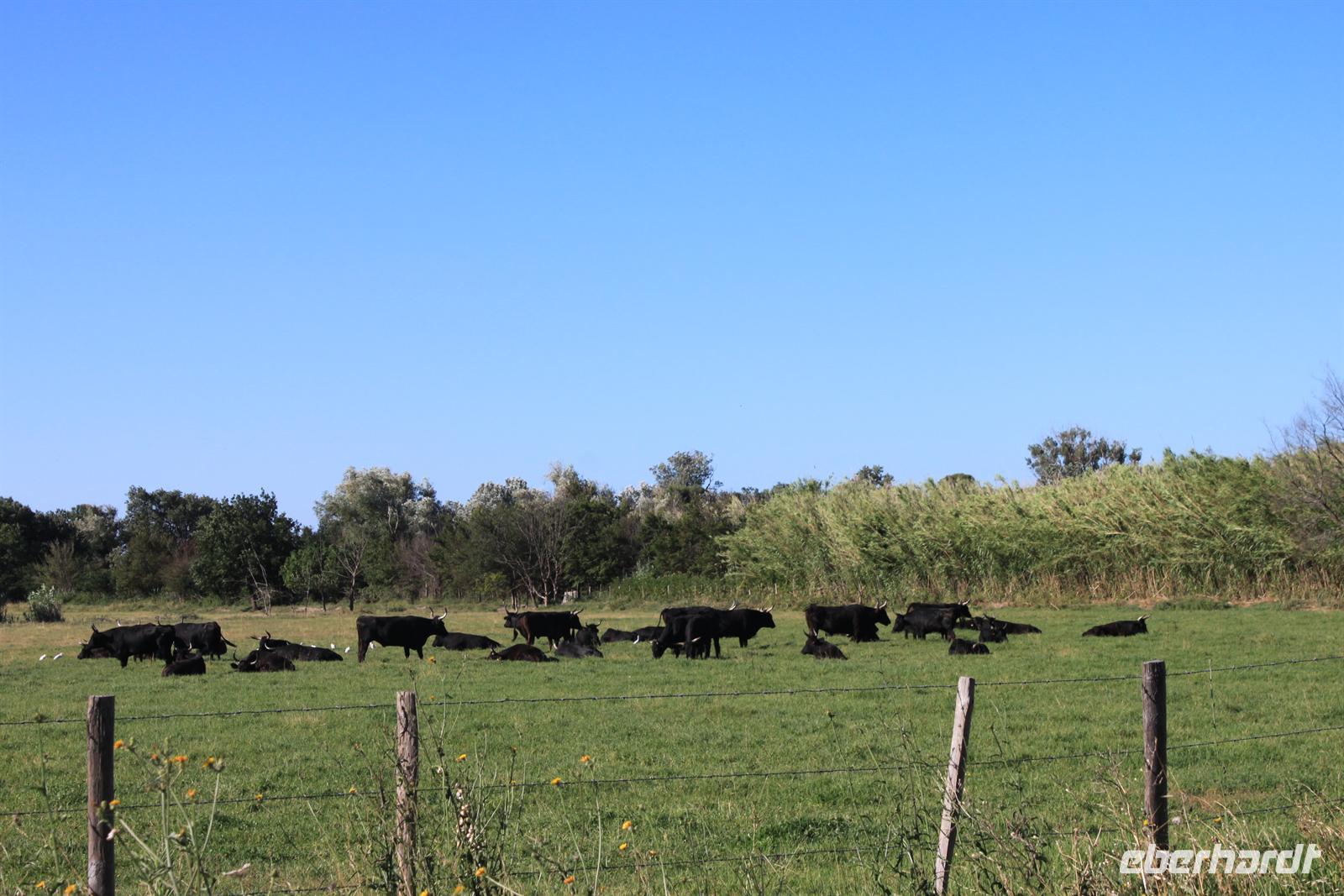 Etwas Abseits der großen Hauptststraße hatten wir das unsagbare Glück eine ganze Menge Schwarze Stiere und auch die berühmten Weißen Pferde zu sehen. Flamingos gab es diesmal nicht allzu viele, aber dennoch erfüllte sich der Wunsch aller Reisenden - jedes der drei Wahrzeichen der Camargue war mindestens einmal zu sehen! In Aigues-Mortes und in Saintes-Maries-de-la-Mer legten wir jeweils größere Pausen ein. In Saintes-Maries bot sich sogar die Möglichkeit am schönen, weiten Sandstrand Südfrankreichs baden zu gehen.