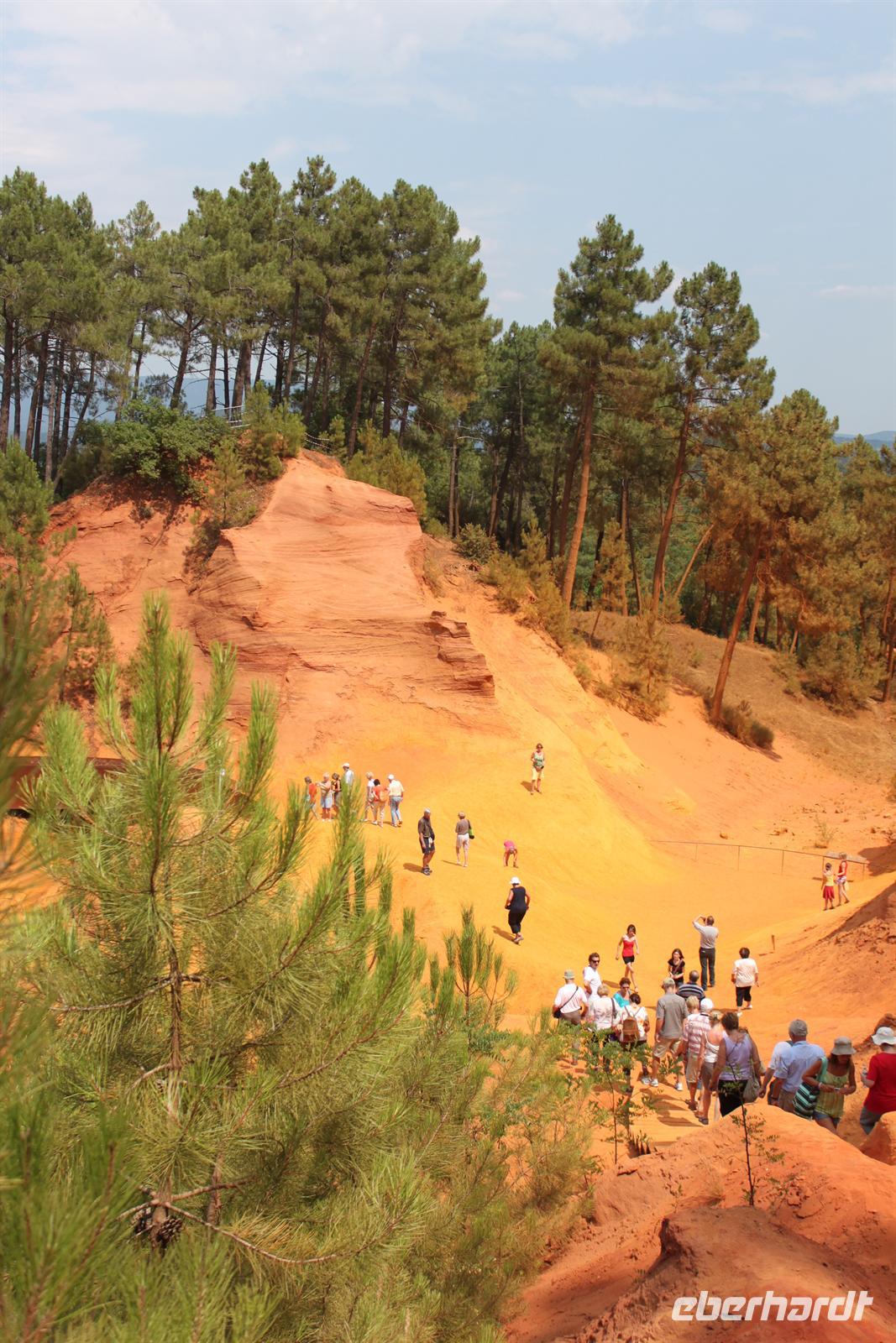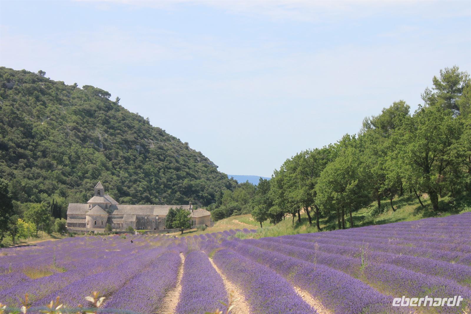 Schließlich stand noch ein weiterer Ausflug in die Natur im Programmheft: unsere Fahrt in den Regionalpark Luberon, mit dem Luberon- und dem Vauclusegebirge. Im Vaucluse erwartete uns nun endlich eines der längst überfälligen, ersehnten Lavendelfelder - und die Felder der Abtei von Sénanque waren sogar begehbar, die Blüten wortwörtlich zum Anfassen nah. Für viele Reisenden gewiss einer der Höhepunkte. Im Anschluss fuhren wir in eines der „schönsten Dörfer Frankreichs“, nach Gordes. Nach einer Pause mit Freizeit machten wir uns auf den Weg z den weltberühmten Ockerbrüchen von Roussillon - übrigens des zweite Dorf der Provence, welches den Titel „schönstes Dorf Frankreichs“ trägt. Hier spazierten wir durch die Felsenwelt mit gelben, orangen und roten Farbtönen.