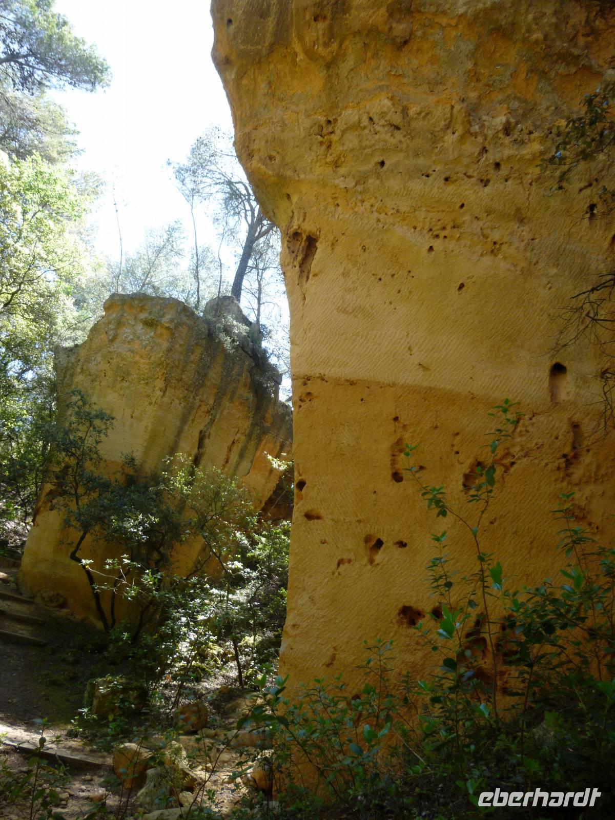 Bei herrlichstem Sonnenlicht bestaunten wir die goldgelben und rotgelben Farben des Steinbruchs von Bibemus bei Aix, wo Cezanne so gern die besonderen Formationen der Steine malte und seine Malutensilien in der Hütte unterstellte, vor der wir uns fotografieren ließen.