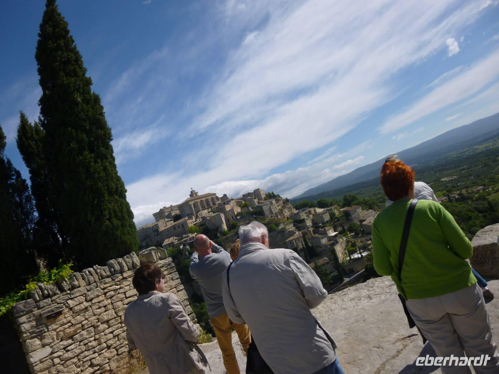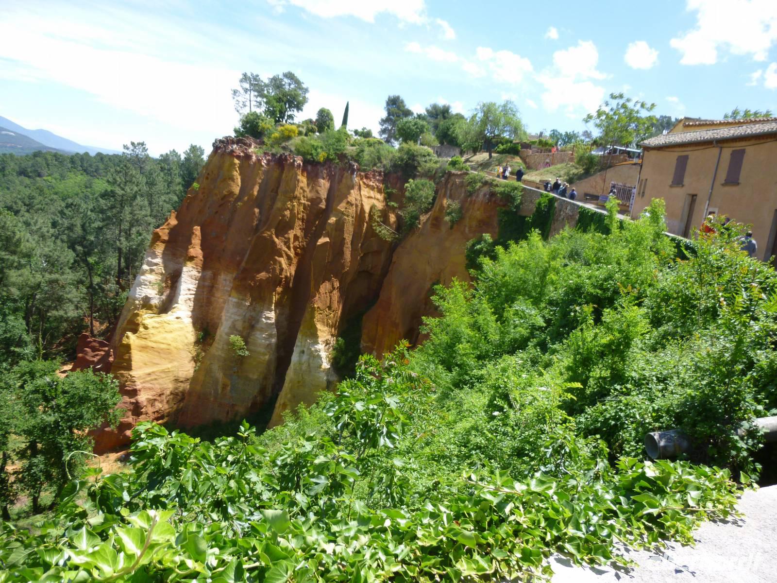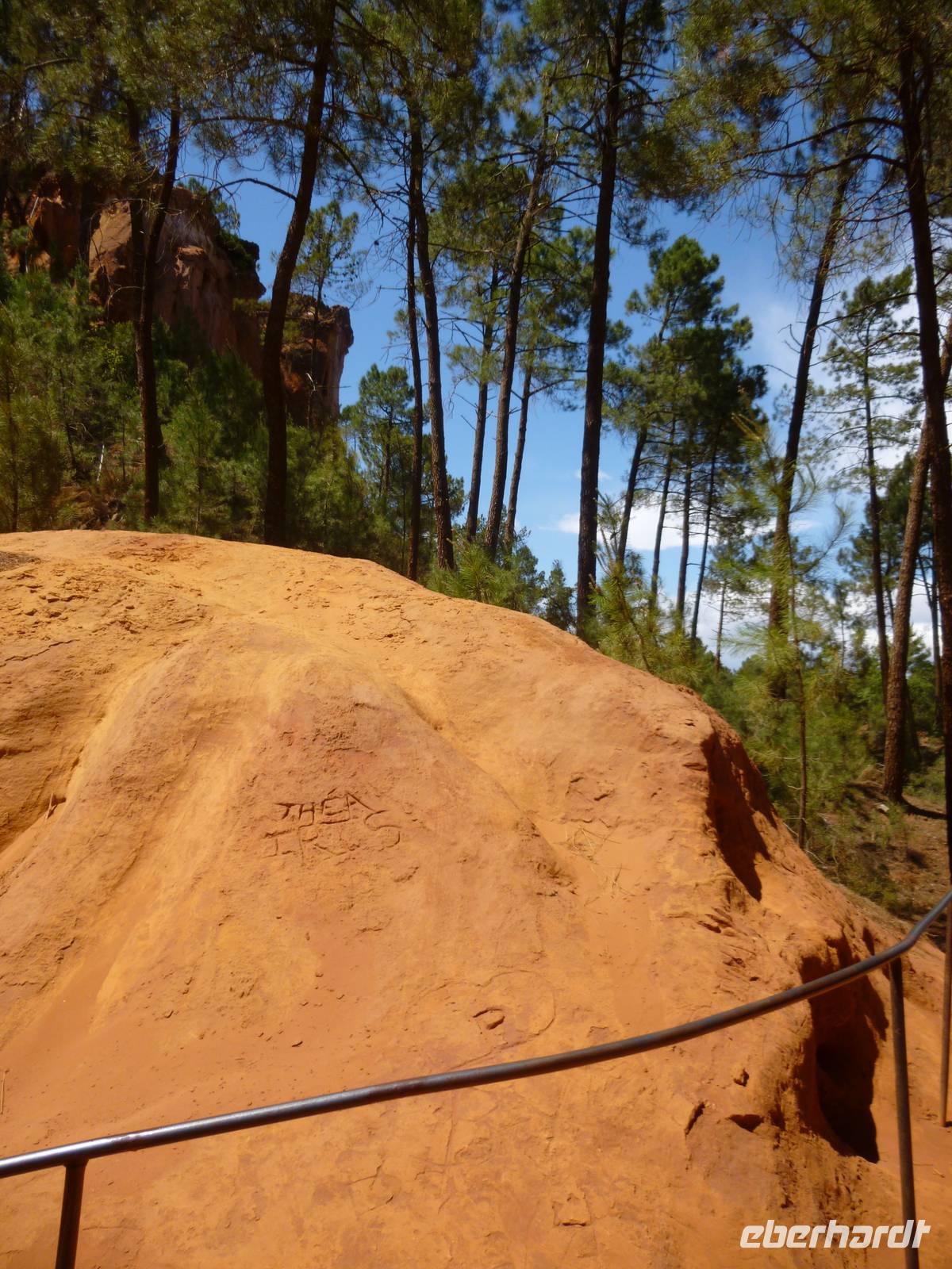 Unser Weg führte durch die Melonenstadt Cavaillon über Gordes vorbei an Trockenmauern und Borries (Steiniglus) in den auf Ockerfelsen gegründeten Ort Roussillon, wohin sich der Resistancekämpfer Samuel Beckett vor der deutschen Wehrmacht flüchtete und in einem Häuschen am Stadtrand über die Ereignislosigkeit dort sein absurdes Theaterstück "Warten auf Godot" schrieb.
