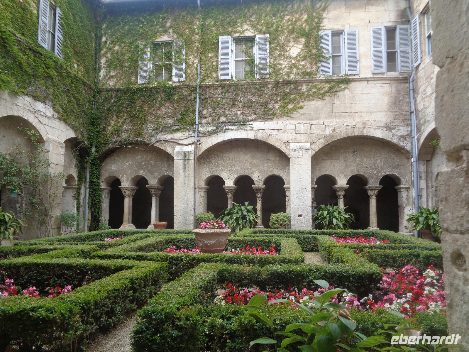 Beim Frühstück begrüßen wir uns alle und berichten von unserer Odyssee. Glücklicherweise haben alle Gäste großes Verständnis für die Situation und wir freuen uns nun gemeinsam auf Arles, die Hauptstadt der Camargue. Unser Bus mit Fahrer Thierry bringt uns zur Tourismus-Information, wo wir uns pünktlich mit unserer örtlichen Reiseleiterin Béate treffen, die schon Stadtpläne für uns besorgt hat. Wir beginnen unseren Stadtrundgang im Jardin d'Été, wo wir sofort auf einen Gedenkstein von Vincent van Gogh treffen, der von 1888 bis 1889 in Arles lebte. Weiter geht es zum Théâtre Antique, ein beeinduckendes Bauwerk der Römer aus dem 1. Jhd. n.C. und Zeugnis ihrer Kultur unter Kaiser Augustus. Gleich daneben befindet sich das römische Amphitheater, die Arena von Arles, die 90 n.C. in 3 Etagen mit 60 Arkaden erbaut wurde und ungefähr 25.000 Besuchern Platz bot. Heute finden hier noch Stierkämpfe und Stierspiele statt, die sich großer Beliebtheit erfreuen. Im Rathaus treffen wir auf die Statue der Venus von Arles, eine Kopie, denn das Original steht im Louvre Paris. Durch das Hôtel de Ville, erbaut im 17. Jhd. durch Peytret und den Pariser Architekten Mansart im Dienste Ludwig des XIV., der seine Spuren auch in Arles hinterlassen hat, gelangen wir auf den Platz der Republik. In der Mitte steht der alte Obelisk aus dem 4. Jhd., der außerhalb der Stadt im 17. Jhd. im Alyscamp gefunden wurde. Wir besichtigen die Kathedrale St. Trophíme aus dem 12. Jhd. und den Kreuzgang des benachbarten Klosters aus dem 14. Jhd. Ein beliebter Platz ist auch der Place du Forum, wo das Nachtcafé von Vincent van Gogh nachgestellt wurde und der Maler Mistral ein Denkmal erhielt. Am Espace de Vincent van Gogh, seinem damaligen Krankenhaus, verabschieden wir uns von Béate und legen unsere Mittagspause ein. Gut gestärkt fahren wir anschließend mit Thierry im Bus weiter nach St. Rémy-en-Provence. Wir besuchen das Kloster Saint Paul de Mausole mit dem Krankenhaus, in das sich Vincent van Gogh im Mai 1889 selbst einliefern ließ und bis zum Mai 1890 verblieb. Im Zuge der französischen Revolution wurde das Kloster zur Heilanstalt Maison de Santé de Saint-Paul umgewandelt. Die Heilanstalt liegt inmitten einer malerischen Landschaft mit Olivenbäumen, Lavendel und rotem Mohn, die viel Ruhe und Idylle verströmt. Van Gogh therapierte sich hier selbst mit seiner Malerei.