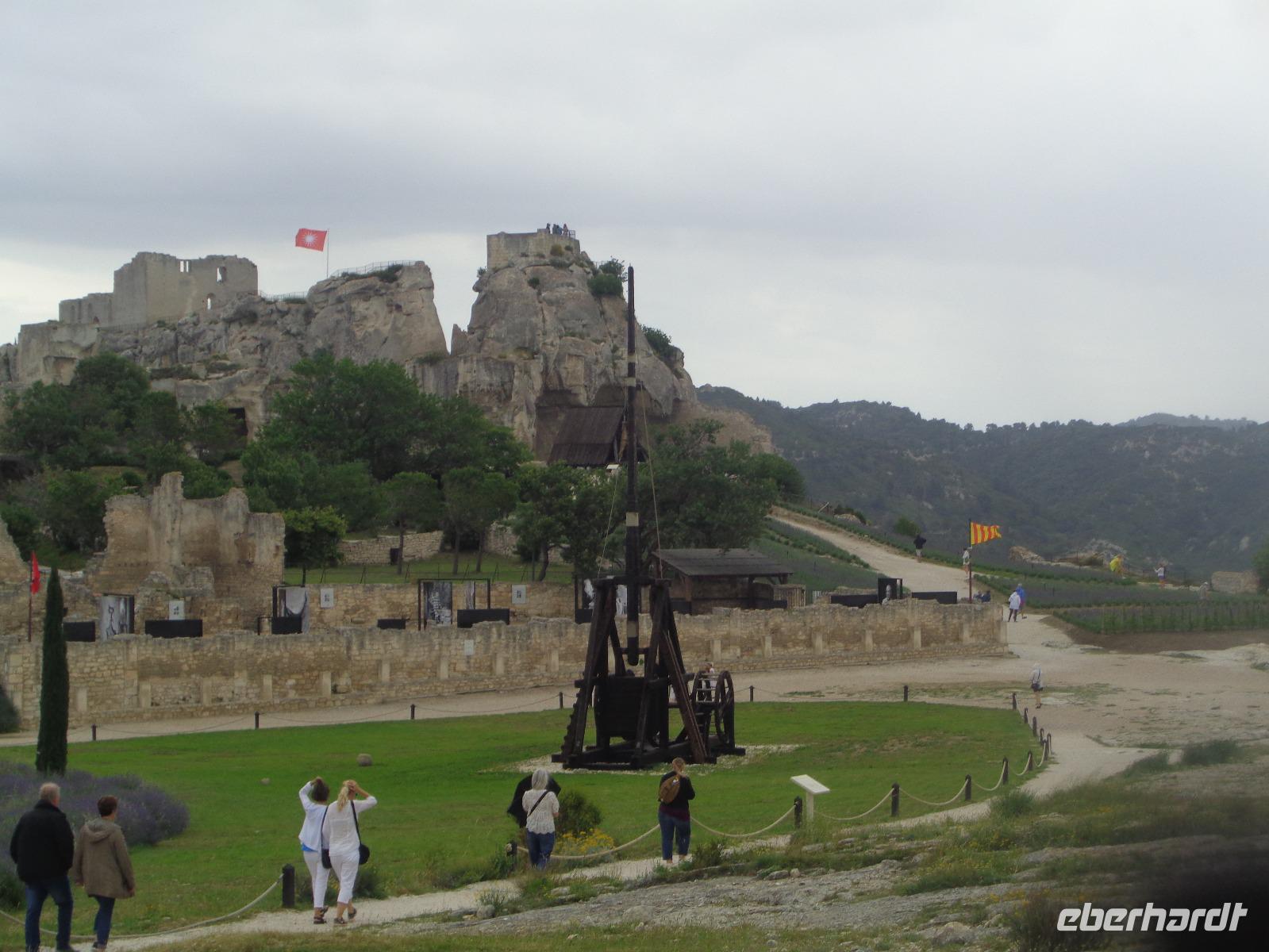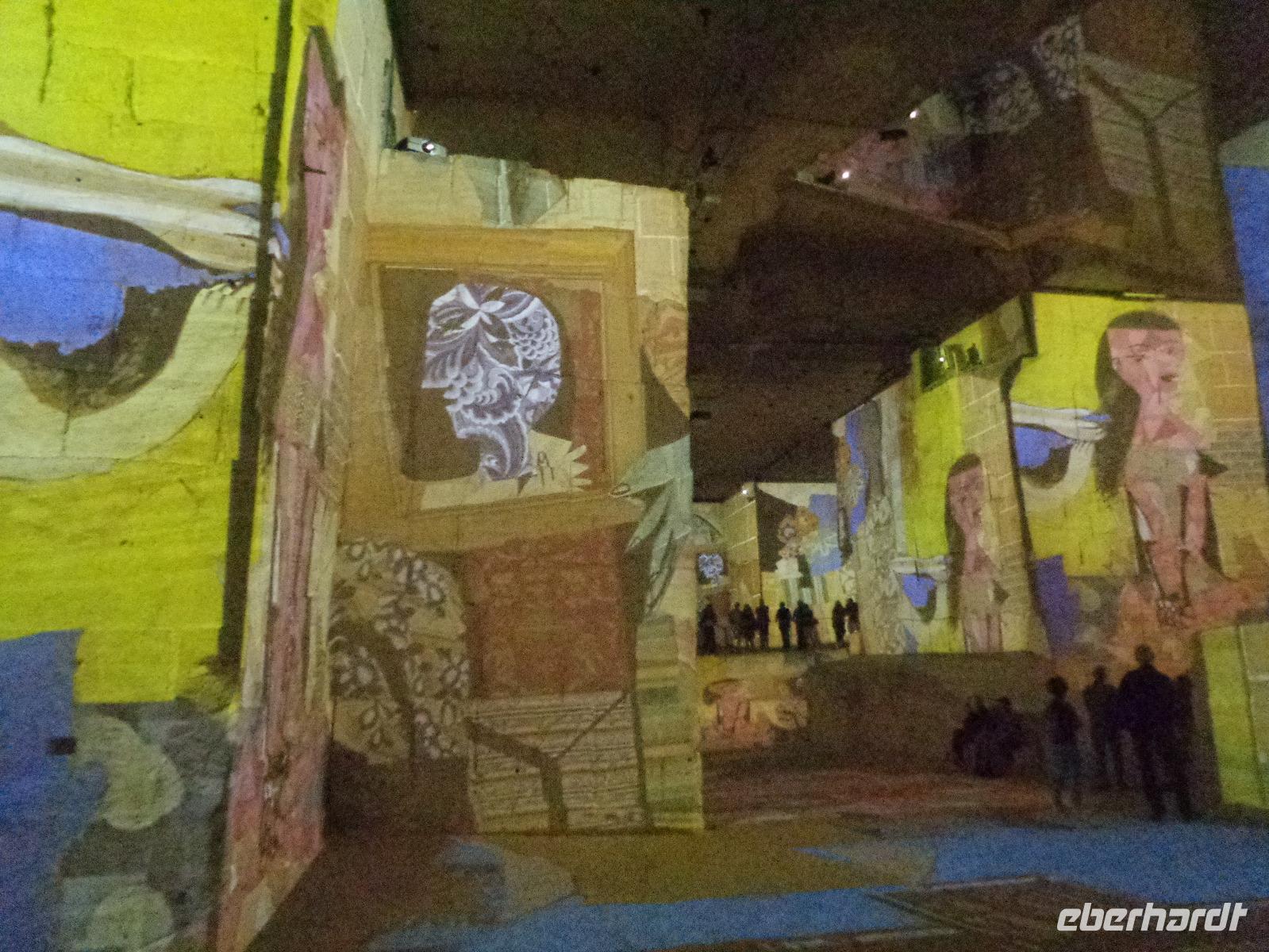 Dieser Ort bietet noch viel mehr, wie die antike Stadt Glanum und das Juliermausoleum mit Triumpfbogen, aber uns zieht es weiter durch die Alpillen nach Les Baux-de-Provence, einem der schönsten Dörfer Frankreichs. Von der wechselvollen Geschichte des Ortes zeugt nur noch eine Burgruine, die im 11./12. Jhd. ihre Blüte hatte. Noch heute werden mittelalterliche Feste und Turniere hier zelebriert. Im 15. Jhd. wetteiferten die Troubadoure und im 17. Jhd. sollte Kardinal Richelieu im Auftrag des Königs die Hugenotten im widerspenstigen Süden bekämpfen. Wir besichtigen die Schlossruine und begeben uns dann zur "Cathédrale d'Images", zu den Steinbrüchen "Carrièrres de Lumières ". Das ist wirklich ein grandioser Abschluss unseres Tages, denn in der ortsfesten, größten Multi-Media-Anlage Frankreichs werden über 70 Videoprojektoren und 70 Server Bilder berühmter Künstler oder Geschichtsereignisse auf 6.000 m² Fläche der ehemaligen Steinbrüche projiziert. Wir erleben Picasso, Pop und Jean Cocteau und sind einfach nur begeistert! Dieser Tag hatte es in sich und wir nutzen die Rückfahrt nach Arles, um die vielen Bilder und Eindrücke zu verarbeiten. Das leckere Abendessen schmeckt heute besonders gut.