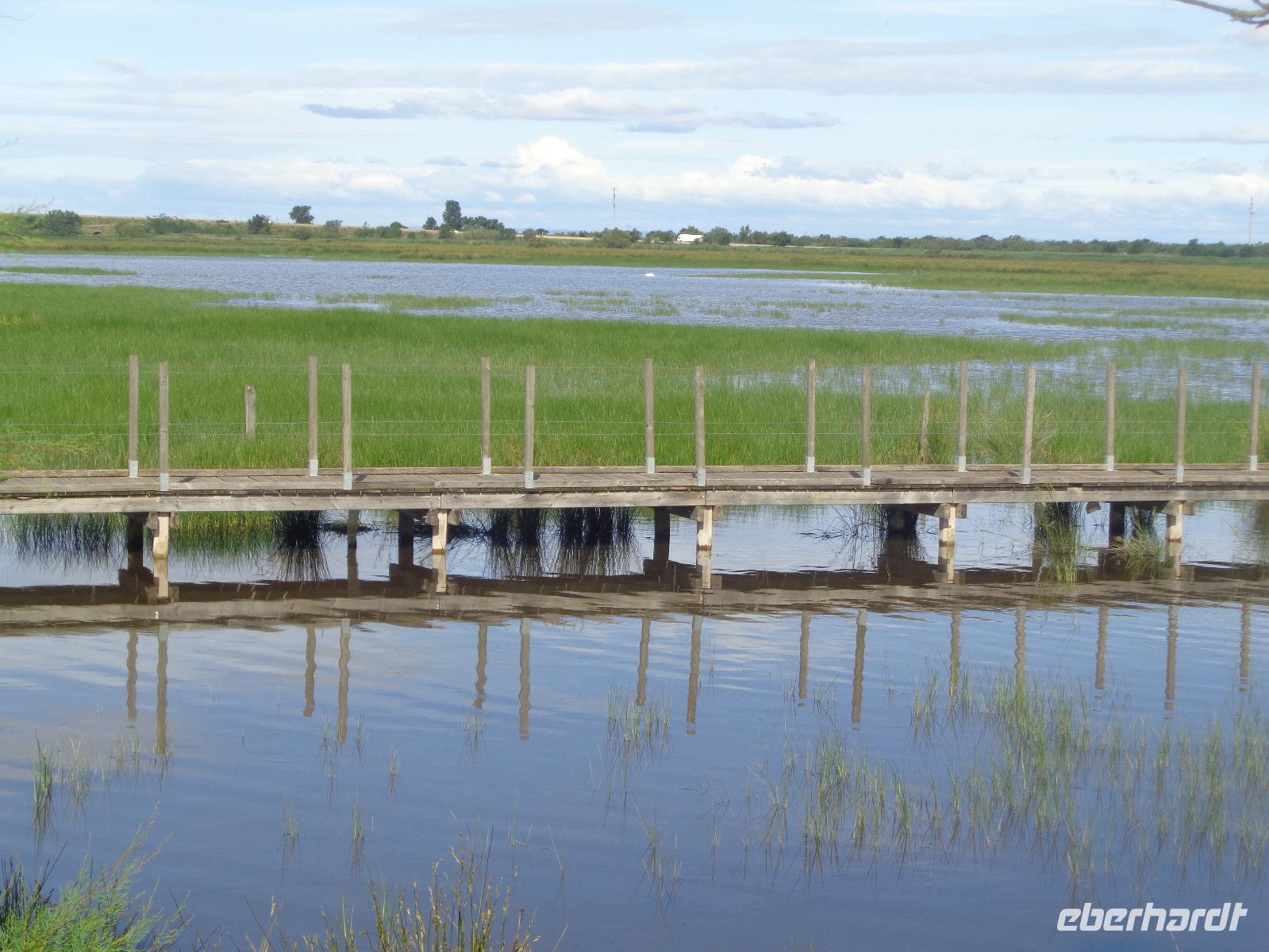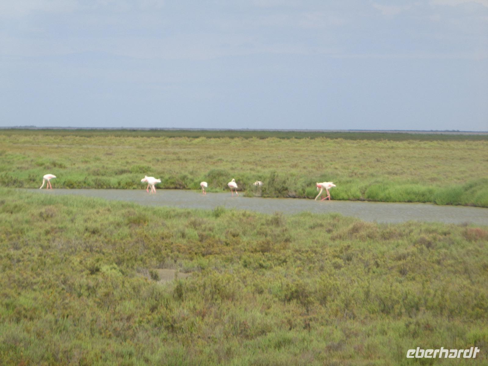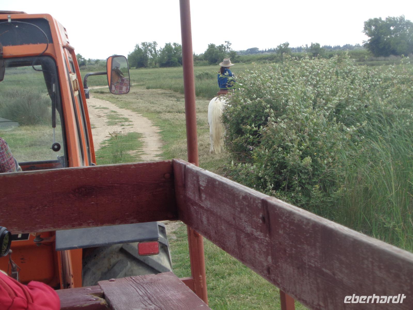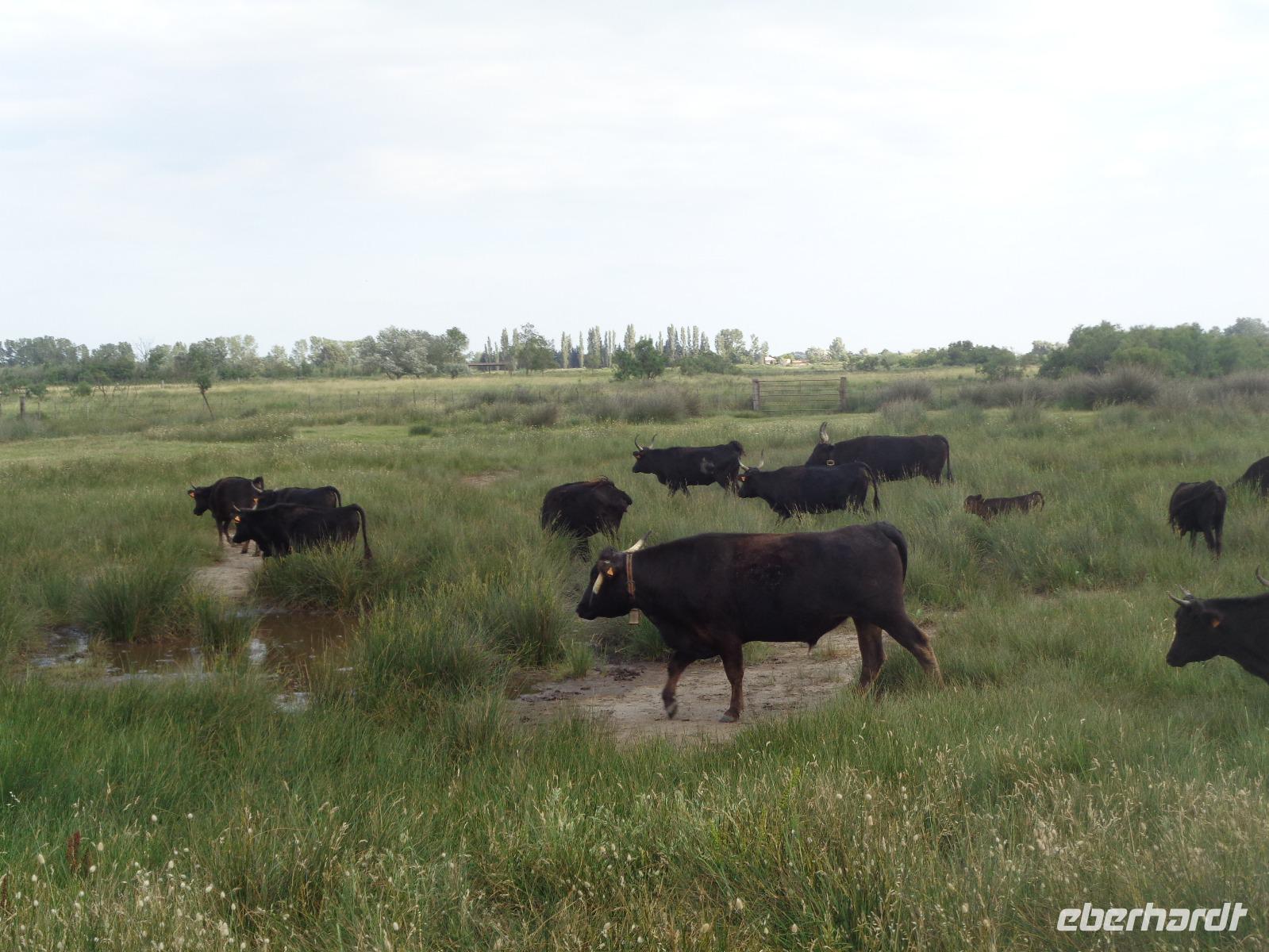 Nach unserem Frühstück holt uns heute Jérome zu einer Camargue-Rundfahrt ab. Wir fahren anderthalb Stunden bis zum Tour de Carbonnière, von dem aus man eine herrliche Sicht auf die Schwemmlandebene hat. Der Kern der Camargue befindet sich zwischen den Rhône-Armen und die große und die kleine Rhône verzweigen sich scheinbar unendlich im großen Delta, das in das Mittelmeer mündet. Das Étang de Vaccarès ist die größte der Lagunen hier, die mehr als 400 Wasservogelarten Lebensraum und Futter bieten. Wir treffen auf weiße Pferde, schwarze Camargue-Stiere mit den Hörnern nach oben und Flamingos, die sich gern auch mal von den Touristen zurückziehen. Vorbei an Schilf, Tamarisken, Obstplantagen und Reisfeldern fahren wir nach Aigues-Mortes. Diese Stadt wurde durch Ludwig IX. gegründet, der das sumpfige Gebiet oder "tote Wasser" trockenlegen ließ und einen Hafen zum Mittelmeer baute. Er lockte Siedler an und brachte den Ort zur Blüte. Von hier aus startete er den 6. und den 7. Kreuzzug, den er in Karthago nicht überlebte. Schon 1297 wurde er von der katholischen Kirche heilig gesprochen. Wir fahren mit dem kleinen Zug durch die engen Gassen und zum Tor hinaus vor die Stadtmauern und sehen die Saline von Aigues-Mortes, wo man das beliebte Fleur de Sel gewinnt. Unsere Mittagspause und etwas Freizeit zum Shoppen genießen wir hier, bevor es weiter nach Saintes-Maries-de-la-Mer geht. Wir besuchen die Kirche, die auf das 9. Jhd. zurück geht und im 14.Jhd. zu einer Wehrkirche umgebaut wurde. Sie ist das Zentrum des Wallfahrtsortes der Zigeuner, die hier ihre Schutzpatronin Sara verehren. Die schwarze Sara soll die Dienerin der Maria Jacobé und Maria Salomé gewesen sein und sie ist keine schwarze Madonna. Die Marien kamen in einer ruderlosen Barke hier an Land, um das Christentum zu verkünden, sagt man. Im Ort gibt es jährlich am 24. und 25. Mai Feste der Gitanes. Beliebt sind auch die Stierrennen durch den Ort und viele kulturelle Ereignisse. Wir verbringen unsere Freizeit in kleinen Cafés oder Restaurants und einige wagen sich auf das Dach der Notre-Dame-de-la-Mer. Danach führt uns Jérome mit dem Bus zu den Lieblingsplätzen der Flamingos im Brackwasser und die Fotoapparate klicken. Der nächste Höhepunkt ist die Manade Gilbert Arnaud. Eine Fahrt mit dem Leiterwagen vom Traktor gezogen führt uns zu den Stieren und wir sehen eine kleine Vorführung in freier Natur. Man spürt regelrecht die Vertrautheit von Mensch und Tier und alles sieht ganz leicht aus. Nun ist es Zeit für eine Stärkung. Im Haus ist für uns eingedeckt und wir genießen Salat, Stiergulasch mit Reis und ein leckeres Dessert. Natürlich darf Wein der Region und Wasser nicht fehlen. Ein grandioser Abschluss unserer Camargue-Tour, wir sind alle begeistert! Jérome bringt uns wohlbehalten ins Hotel zurück.