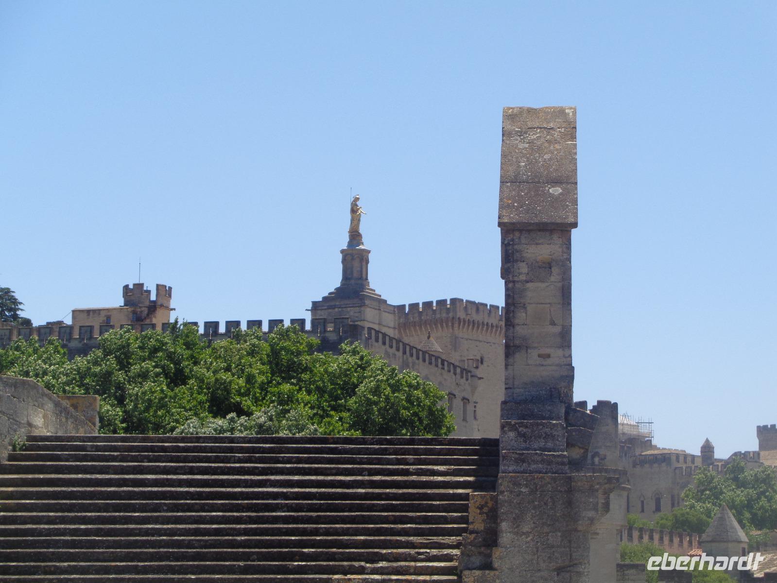 Heute führt uns unser Weg nach dem gemütlichen Frühstück nach Avignon. Thierry ist wieder bei uns. Unser erster Programmpunkt ist ein Rundgang im Palais des Papes mit deutschen Histopads, einer tollen technischen Neuerung, mit der man den Pabstpalast auf vielfältige Weise erkunden kann. Von 1334 bis 1370 wurde dieser Palast gebaut und ergab eine festungsähnliche Anlage aus altem und neuem Palast. Hier lebten von 1335 bis 1430 insgesamt 9 Päpste und Gegenpäpste, für die es in Rom zu gefährlich wurde. Besonders beeindruckend sind der Speisesaal, der Audienzsaal, die Schatzkammer, das Hirschzimmer und die Kapelle St. Jean. Seit 1947 gibt es regelmäßig Kunstausstellungen oder auch Rosenschauen und Feste hier. Nach knappen anderthalb Stunden sind wir durch und freuen uns auf die Brücke von Avignon, dem nächsten Wahrzeichen der Stadt. Sie heißt eigentlich Pont Saint-Bénézet und ist nur noch eine Ruine einer Bogenbrücke über die Rhône. Nachdem ihre Pfeiler mehrmals weggespült wurden, gab man im 17. Jahrhundert auf, sie wieder aufzubauen. Nun steht sie nur halb in dem Fluß und bietet den Flusskreuzfahrtschiffen eine komfortable Durchfahrt. Der Pabstpalast, die Kathedrale von Avignon und die Brücke gehören zum UNESCO-Welterbe. Aber Avignon hat noch so viel mehr zu bieten. Wir verbringen unsere Mittagspause auf dem Place d'Horloge, wo sich auch das Rathaus und das Theater befinden. Jean Vilar begründete hier 1947 das Theaterfestival von Avignon, das jährlich im Juli stattfindet. Der Uhrplatz ist auch Start- und Zielort für viele Sportveranstaltungen wie den Marathonlauf "Mistral" oder Radrennen. Ein Restaurant reiht sich ans andere und man lebt hier "sehen und gesehen werden". Leider ist unsere Zeit schon wieder um, denn wir wollen weiter zur Pont-du-Gard. Die höchste Aquäduktbrücke der Welt, von den Römern in nur 5 Jahren mit einfachen technischen Hilfsmitteln erbaut, versorgte die Stadt Nîmes vor fast 2000 Jahren mit Wasser und das 500 Jahre lang. Ihre Ausmaße sind gigantisch und ihre 3 Ebenen erheben sich 49 m über dem Fluss Gardon. Nach einem Museumsbesuch, bei dem wir mehr über die Technologie und Bauweise der Römer erfahren, sind wir tief beeindruckt und wandeln im wahrsten Sinne des Wortes auf den Spuren der Römer. Nach diesen monumentalen Eindrücken bringt uns Thierry wieder zurück in unser Hotel nach Arles, wo wir uns schon auf unser tolles Abendessen freuen.