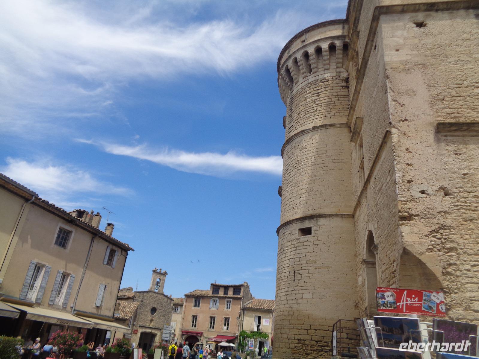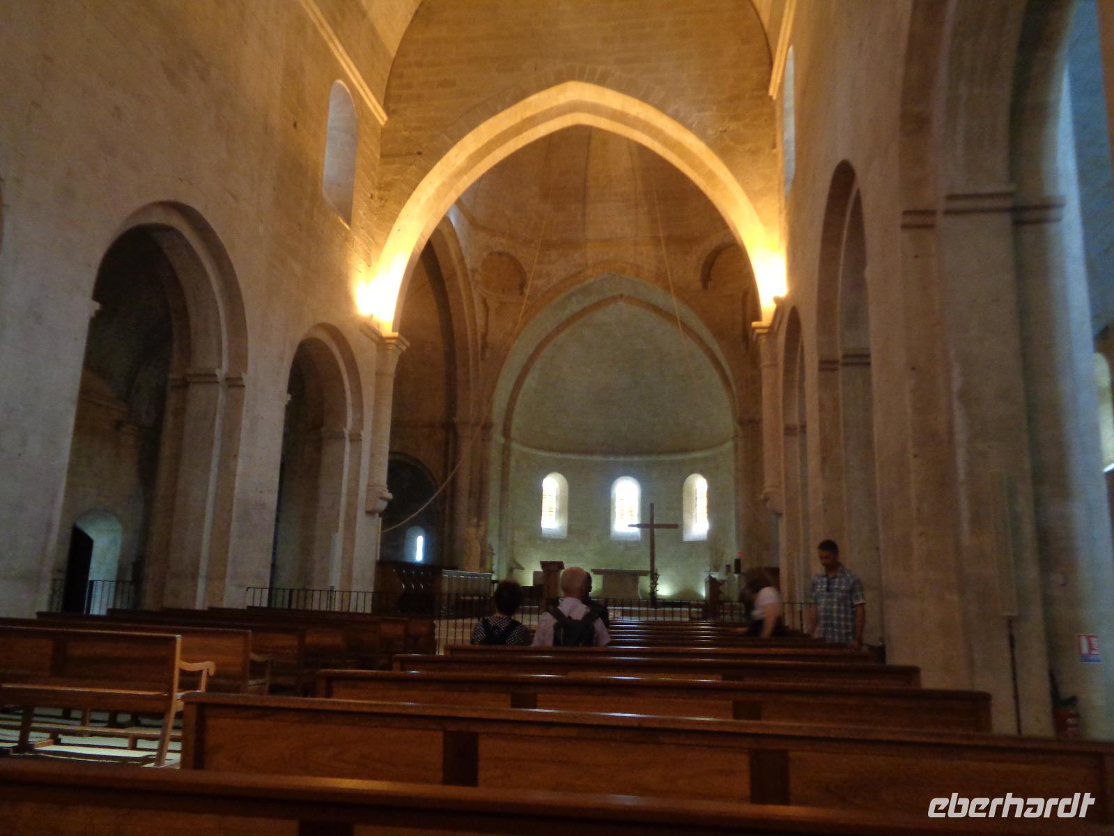 Auf diesen Tag haben wir uns auch schon gefreut, denn heute fahren wir ins Luberon-Gebirge. Nach dem stärkenden Frühstück geht es wie gewohnt los. Unser Ziel ist das Kloster Sénanque. Thierry wählt extra für uns eine wunderschöne Strecke über die Dörfer und durch schier endlos scheinende Platanen-Alleen. Die Luberon-Gebirgskette erstreckt sich ca. 50 km südöstlich von Avignon und teilt sich in den Grand Luberon im Osten und den Petit Luberon im Westen. Kein Berg ist höher als 1.200 m. Auf unserer Fahrt zum Zisterzienserkloster schrauben wir uns mit unserem Bus langsam immer höher und erblicken endlich den Ort Gordes in voller Schönheit. Nach einem kurzen Fotostopp geht es wieder ins Tal des Baches Senancole hinab. Da das Tal so schmal war, ist dieses schlichte, schmucklose Kloster aus dem 12. Jhd. nach Norden ausgerichtet. Der ganze Bau steht im Zeichen der Demut, wie es die strengen Regeln der Zisterzienser vorschreiben. Die berühmten Lavendelfelder sind noch nicht in voller Blüte, aber der Sommer steht ja auch erst vor der Tür. Nach der Besichtigung der Kirche fahren wir weiter nach Gordes, ein bezauberndes Bergdorf in 635 m Höhe auf einem Felsvorsprung des Mont de Vaucluse. In der Umgebung wurden früher Kohle, Eisen und Schwefel abgebaut, heute lebt man vom Tourismus, Kunst und Kultur. Marc Chagall flüchtete im Krieg vor der deutschen Wehrmacht hier her, seine Freunde kamen später auch nach Gordes. Das Wahrzeichen der Stadt ist das Château de Gordes, ursprünglich aus dem 11. Jhd., in dem zeitgenössische Ausstellungen stattfinden und der hübsche Brunnen aus dem 14. Jhd. Alles wird überragt von der Kirche Saint-Firmin, die Anfang des 18. Jhd. fertiggestellt wurde. Der Ort lädt zum Bummeln ein und uns allen gefällt es hier besonders gut. Aber Roussillon hat auch einiges zu bieten. Seine ockerhaltige rote Erde diente der Herstellung von Farben. Selbst die Römer, die selbstverständlich auch hier waren, nannten den Ort vicus russulus, was so viel bedeutet wie rotes Dorf. Ocker wurde bis 1930 abgebaut, aber es gibt noch einen Ocker-Lehrpfad. Wir wandeln auf dem Sentier des Ocres und genießen eine wunderbare Aussicht. Ein Café und ein Eis im Dorf runden diesen Besuch ab. Samuel Beckett verewigte das Dorf in seinem Theaterstück "Warten auf Godot", denn er hatte sich in den letzten Kriegsjahren auch hier vor der deutschen Wehrmacht versteckt. Das Wetter ist auch heute wieder traumhaft und Thierry hat noch ein Bonbon für uns, die römische Brücke Pont Julien aus dem 3. Jhd. v.C. die über den Fluss Coulon führt. Hier gibt es auch einen gut ausgeschilderten Radweg "Auf den Spuren der Römer". Wir bevorzugen unseren bequemen Bus und lassen die Farben der Natur auf uns wirken. Über die Autobahn geht es zurück zu unserem kleinen Lieblingshotel in Arles, wo schon wieder ein raffiniertes 3-Gang-Menü auf uns wartet.