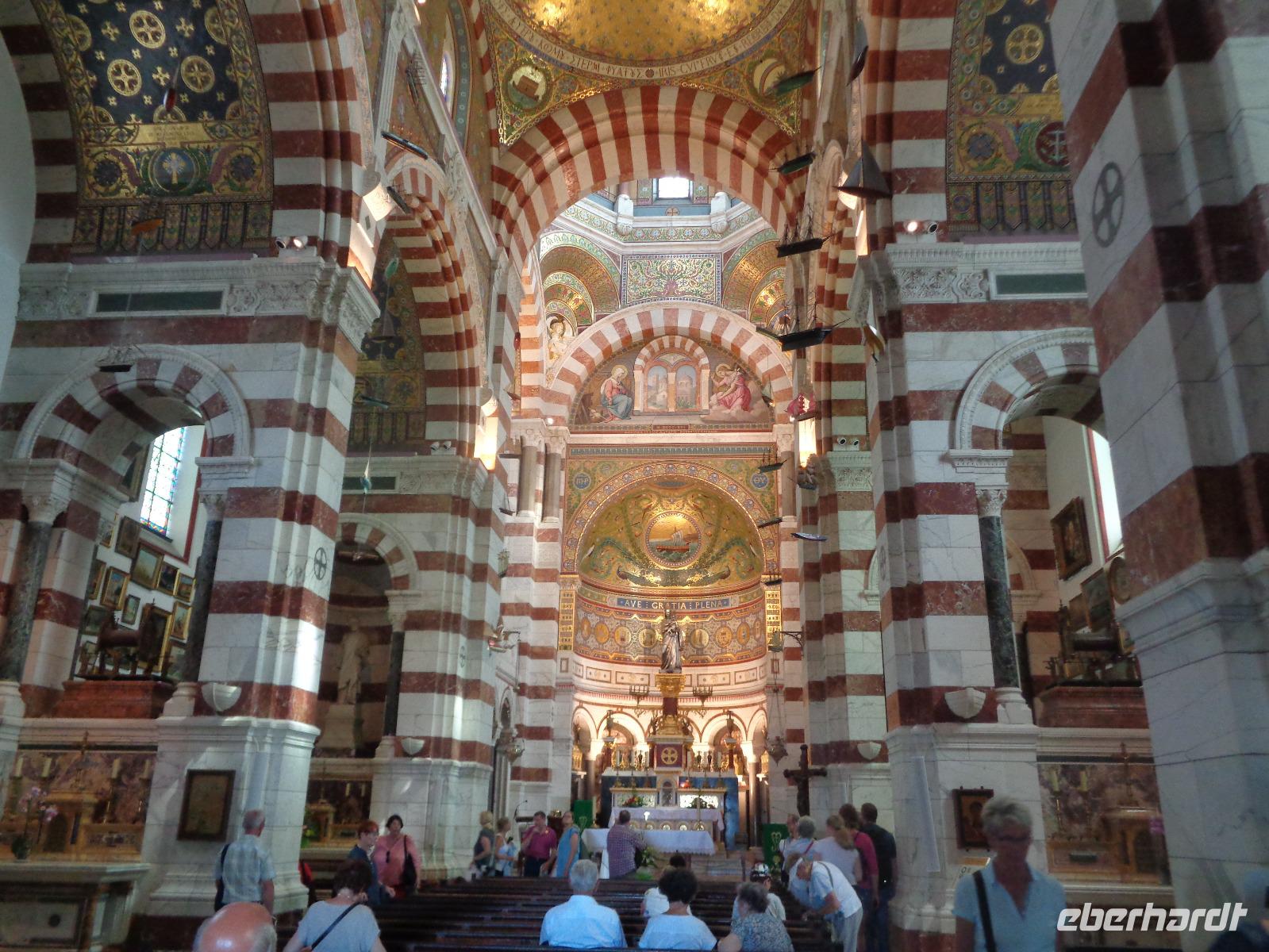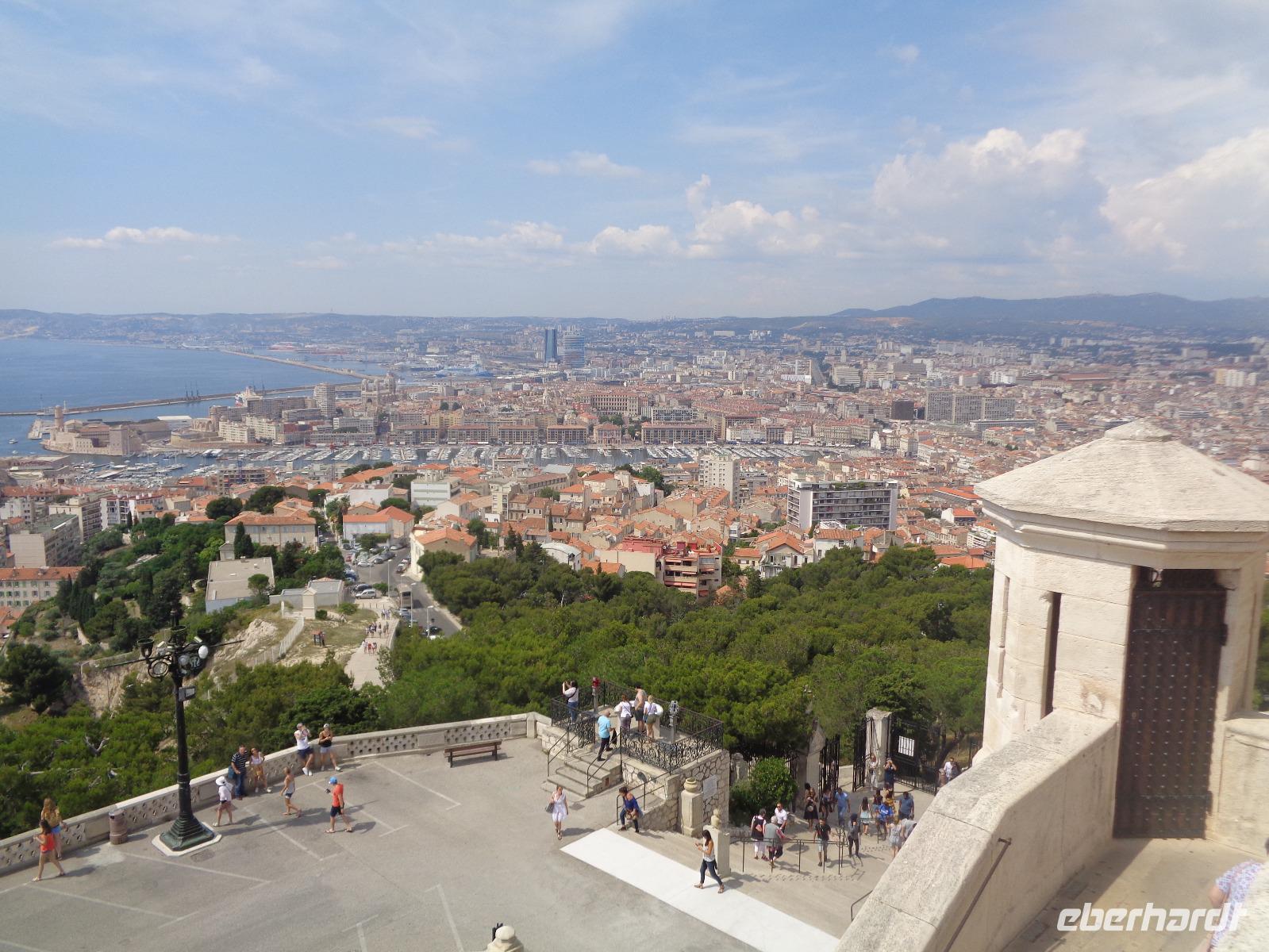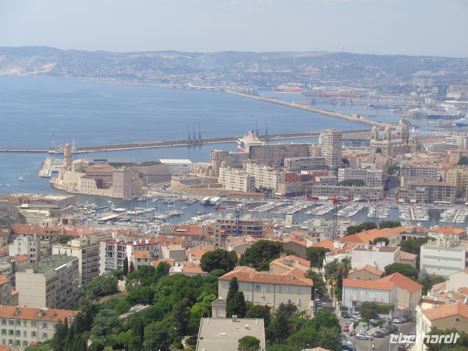 Mit dem Frühstück endet unsere schöne Zeit in Arles mit vielen Eindrücken von der Provence und der Camargue. Es heißt wieder Koffer laden, denn es geht Richtung Marseille. Vorher gönnen wir uns aber noch einen Abstecher nach Cassis. Cassis bedeutet auch schwarze Johannisbeere und noch berühmter ist der Crème de Cassis, ein leckerer Likör. Wir wollen aber zum lieblichen Hafen in einer kleinen Bucht der Calanque-Küste, die zwischen Marseille und Toulon liegt. Der Parkplatz wurde in den letzten Jahren perfekt ausgebaut und wir steigen hier um in einen kleinen Zug, der uns runter zum Hafen bringt. Unsere Tickets für das Boot sind vorbestellt und so können wir sofort unser Boot besteigen, mit dem wir eine Tour zu 3 Calanques unternehmen. Das fühlt sich jetzt richtig an wie Faulenzer-Urlaub. Baden, Schwimmen, Tauchen, Klettern, Segeln, Kanu fahren , alles ist hier möglich. Wir fahren nach einer kleinen Pause weiter auf der herrlichen Panoramastraße mit Sicht auf das Mittelmeer, denn unser nächstes Ziel ist die Metropole Marseille. Die 2. größte Stadt Frankreichs wurde ca. 600 v.C. von griechischen Seefahrern gegründet. Der Sage nach heiratete ihr Anführer Protis die Tochter Gyptis des keltischen Königs Naan und beide gründeten die Stadt Massilia, das heutige Marseille. Unsere Stadtführerin Nathalie erwartet uns schon und unternimmt mit uns eine schöne Stadtrundfahrt, die uns hoch zur neuromanisch-byzantinischen Kirche der Seefahrer, die Basilika Notre-Dame-de-la-Garde. "La Bonne Mère", wie die Marien-Wallfahrtskirche liebevoll genannt wird, wurde erst ab Mitte des 19. Jhd. an der Stelle einer ehemaligen mittelalterlichen Kapelle erbaut. Sie war stets eine Bitt- und Dankeskirche der Seeleute. Anfang des 16. Jhd. ließ König Franz der I. die Kirche befestigen und bezog in seine Pläne auch das Château d'If ein. Wir kennen die Festungsinsel aus dem Roman von Alexandre Dumas "Der Graf von Monte Christo". Die Aussicht von hier oben ist atemberaubend und wir haben einen herrlichen Blick auf die Frioul-Inseln und den alten Hafen, den wir jetzt wieder ansteuern. Am Vieux Port, der 2012 rekonstruiert wurde, steigen wir aus und machen noch einen kleinen Spaziergang. Unser Bus erwartet uns in der Nähe unseres Hotels und wir checken ein in unser tolles 4*-Hotel "Mercure Marseille Centre Vieux Port".