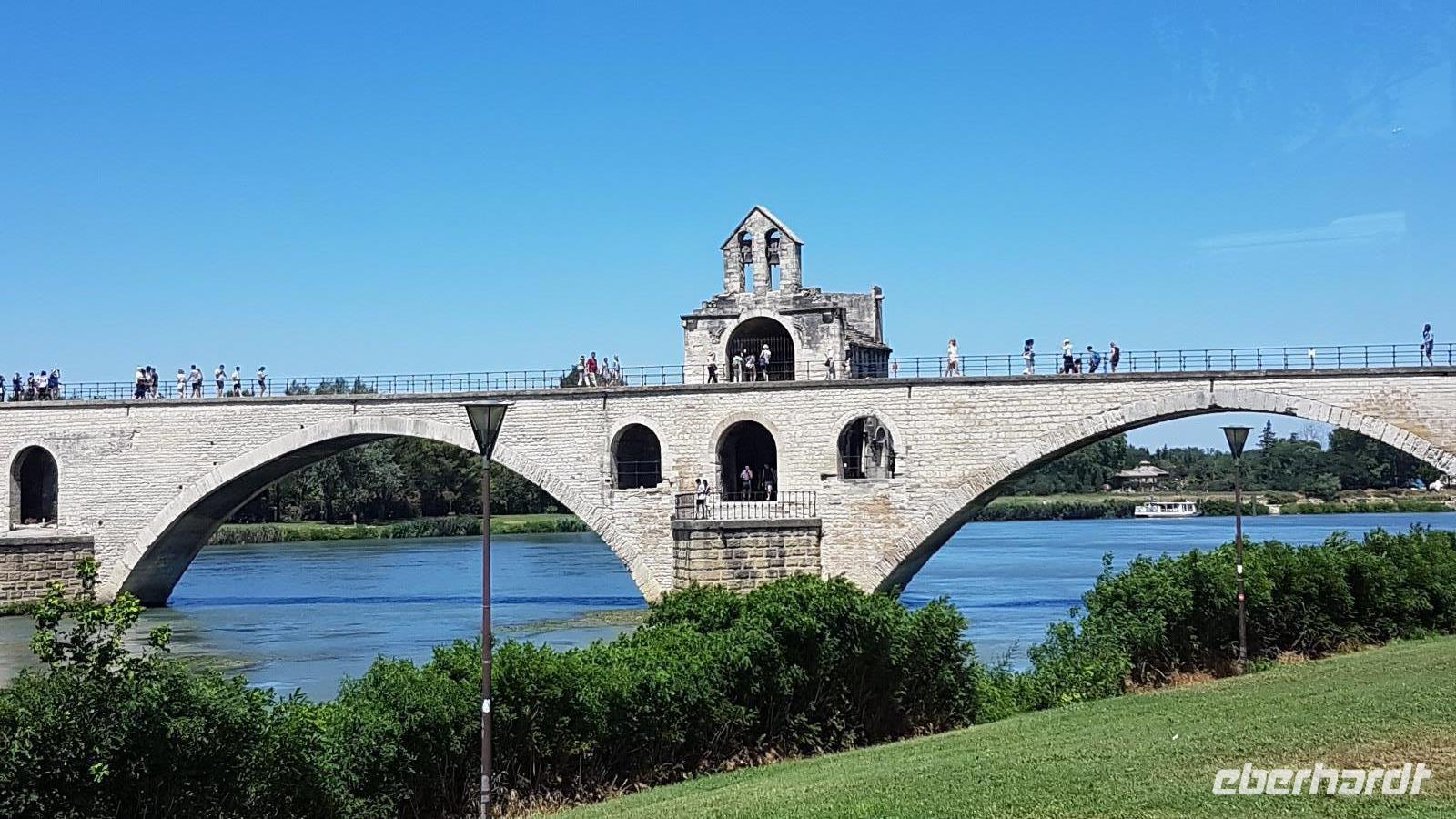 Jérôme ist heute nicht mit uns unterwegs, aber unser Fahrer Fabrice ist auch sehr gut und freundlich. Er fährt uns heute nach Avignon. Wir drehen erst eine schöne kleine Runde durch die Stadt, die uns am Papstpalast entlang zum Rathaus und durch die Fussgängerzone zur gepflegten Markthalle führt. Dann folgt die Besichtigung des Papstpalastes, wo 7 Päpste und 2 Gegenpäpste regiert haben. Die Histopads versetzen uns auf verblüffende Weise in diese Zeiten zurück. Die Brücke Saint-Bénézet entdecken wir auch, es war eine wichtige strategische Handelsachse und erinnert uns natürlich an das bekannte Lied "Sur le pont d'Avignon...". Die vielen Schauspieler auf den Strassen erinnern uns daran, dass das berühmte Festival d´Avignon sich seit 50 Jahren dem Theater widmet.