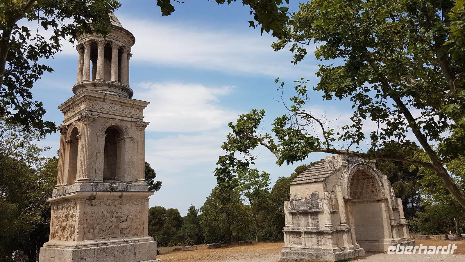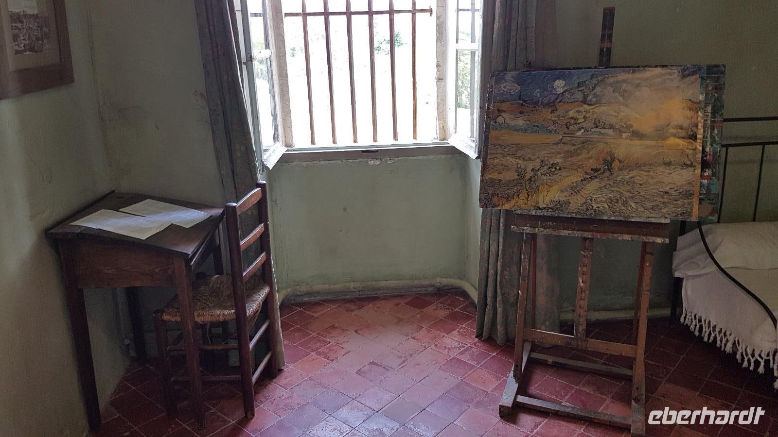 Nach dem Mittagessen in Arles müssen wir schon nach Saint-Rémy fahren, wir wollen jetzt das ehemalige Kloster Saint-Paul de Mausole besichtigen, wo Van Gogh nach einer starken Krise behandelt wurde (er hatte sich nach einem Streit mit Gauguin das linke Ohr selbst geschnitten). Wir können das Zimmer von Van Gogh sowie den schönen Kreuzgang des Klosters sehen. Sehr interessant sind auch die Nachmachungen von Van Gogh Gemälden, die genau dort stehen, wo der Maler sie geschaffen hat. Die Zeit dort in der Anstalt war für ihn besonders kreativ. Neben dem Busparkplatz können wir auch "Les Antiques", zwei monumentale römische Denkmäler bewundern, ein turmähnliches Mausoleum und einen Triumphbogen. In der unmittelbaren Umgebung liegen die Ruinen der antiken römischen Stadt Glanum.