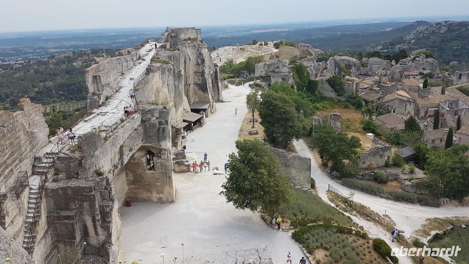 Anschliessend erkunden wir das schöne Dorf Les Baux, mit der romantischen Burgruine an der Spitze. Von dort hat man eine wunderbare Aussicht auf die ganzen Alpilles. Es gibt auch dort eine grosse Sammlung von mittelalterischen Belagerungsgeräten, eines davon wurde sogar während unseres Besuches mit Würfen getestet !