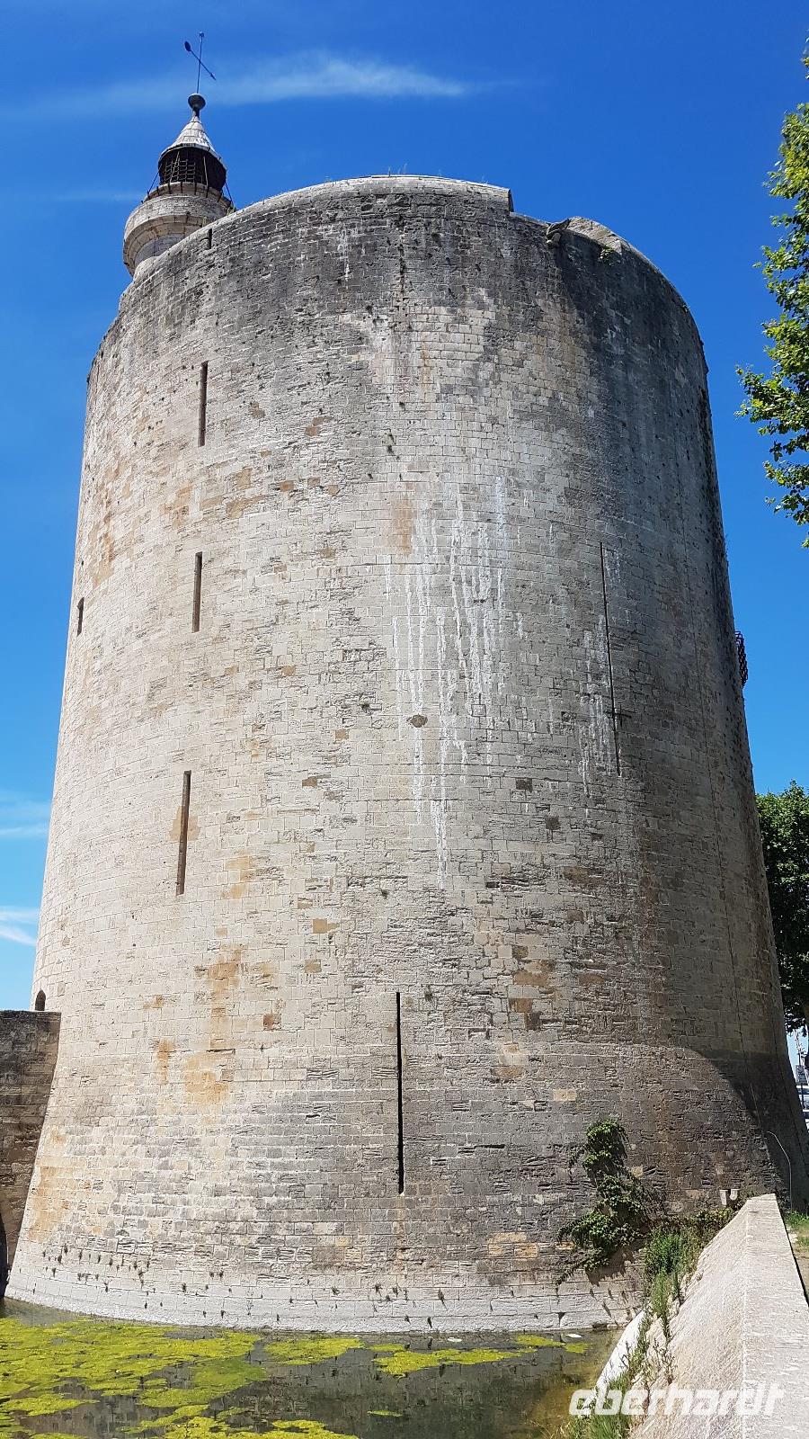 Dann entdecken wir Aigues-Mortes, die Stadt wurde im 13. Jahrhundert von König Ludwig IX. der Heilige als damals einziger Mittelmeerhafen Frankreichs gegründet. Zwei Kreuzzüge sind von dort gestartet, jetzt liegt die Stadt mit intakten Befestigungsmauern nicht mehr am Meer. Wir sehen vom Bus aus bei der Ankunft die rot gefärbten Salzbecken und die beeiendruckenden Stadtmauern, und dann zu Fuss im Zentrum der Stadt die Wehrkirche Notre-Dame des Sablons, mit modernen Glasfenstern von Claude Viallat und die Statue vom Stadtgründerkönig. Wir können auch in der belebten Innnenstadt ein bisschen schlendern und das Mittagessen verzehren, bevor wir nach Saintes-Maries de la Mer fahren.