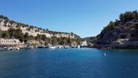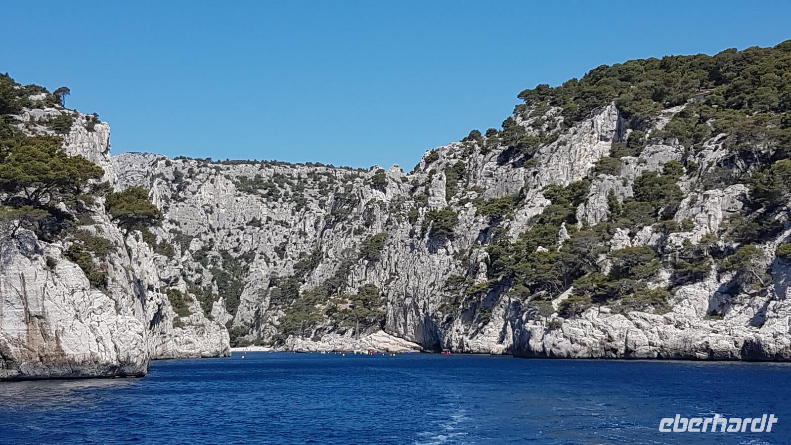 Wir fahren heute Richtung Meer, ein bisschen früher als sonst, um eventuelle Staus zu vermeiden, die es so oft im Sommer gibt. Wir haben aber Glück und kommen rechtzeitig im Busbahnhof von Cassis an. Dort nehmen wir einen kleinen Zug, der uns in die Stadt bringt. Von dort sind es nur ein paar Schritte bis zum malerischen Hafen, wo unser Schiff auf uns wartet. Es gibt den erfrischenden Mistral-Wind, und wir können dann insgesamt drei Calanques, (fjordartige Buchten), vom Boot aus betrachten : Port-Miou, Port-Pin und En-Vau. Hellblauer Himmel, hellgraue hohe Felsen, grüne Pinien, dunkelblaues Meer und die Zikadenmusik noch dazu : die typische provenzalische Küste, fehlt nur ein Glas Pastis oder Rosé-Wein dazu !
