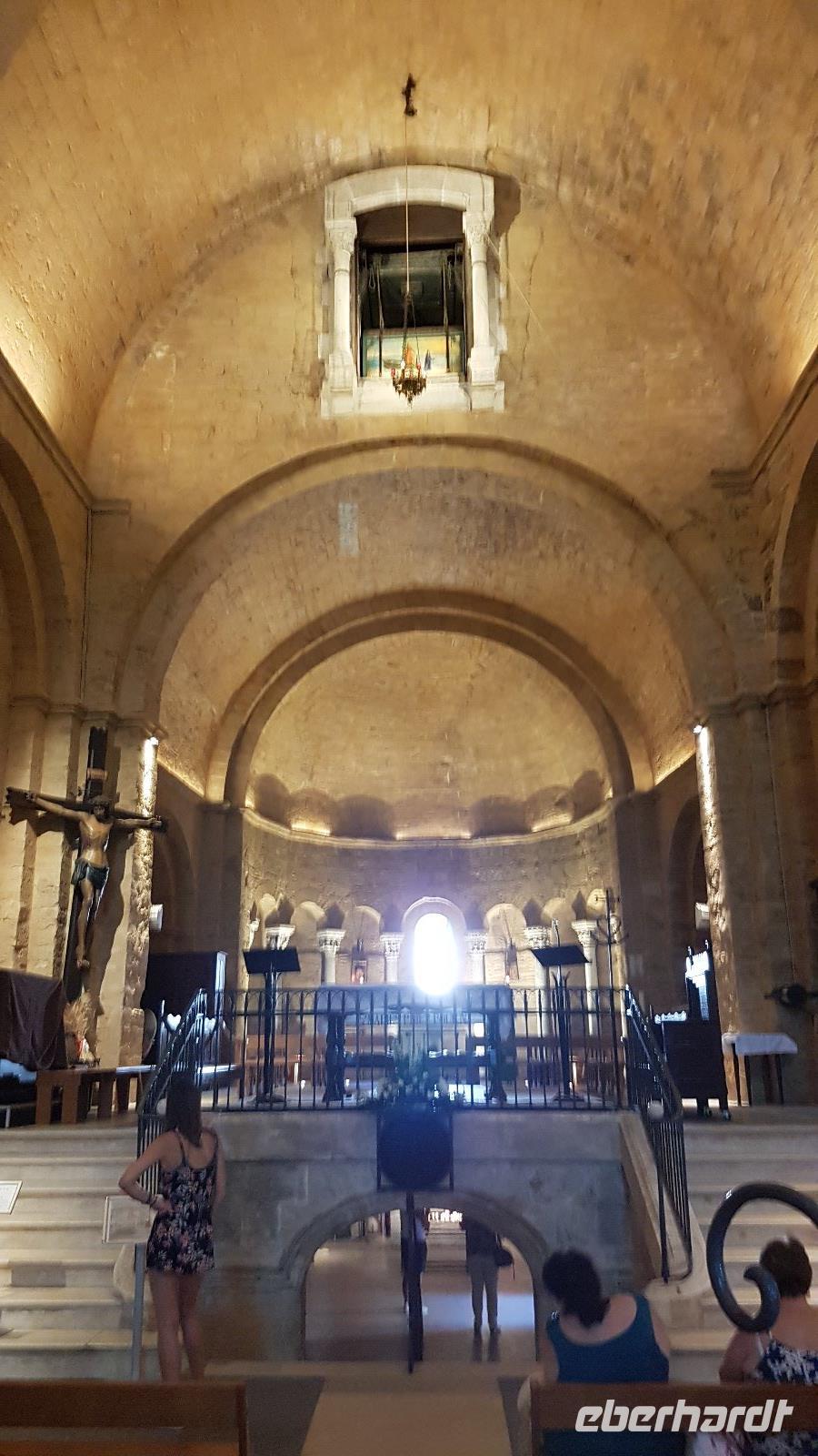 Wir wollen heute noch etwas vom Hinterland der Provence sehen, vor allem die blühenden Lavendelfelder werden mit Spannung erwartet ! Wir geniessen erst eine sehr schöne Aussicht auf das malerische Bergdorf Gordes, bevor wir in der Abtei von Sénanque (XII. Jahrhundert) ankommen. Dort können wir die wunderschönen Lavendelfelder in voller Blüte bewundern. Die Zisterstensier-Abtei selbst ist auch sehr interessant, mit einem tollen Kreuzgang. Leider ist die Kirche wegen Einsturzgefahr zum Teil gesperrt.