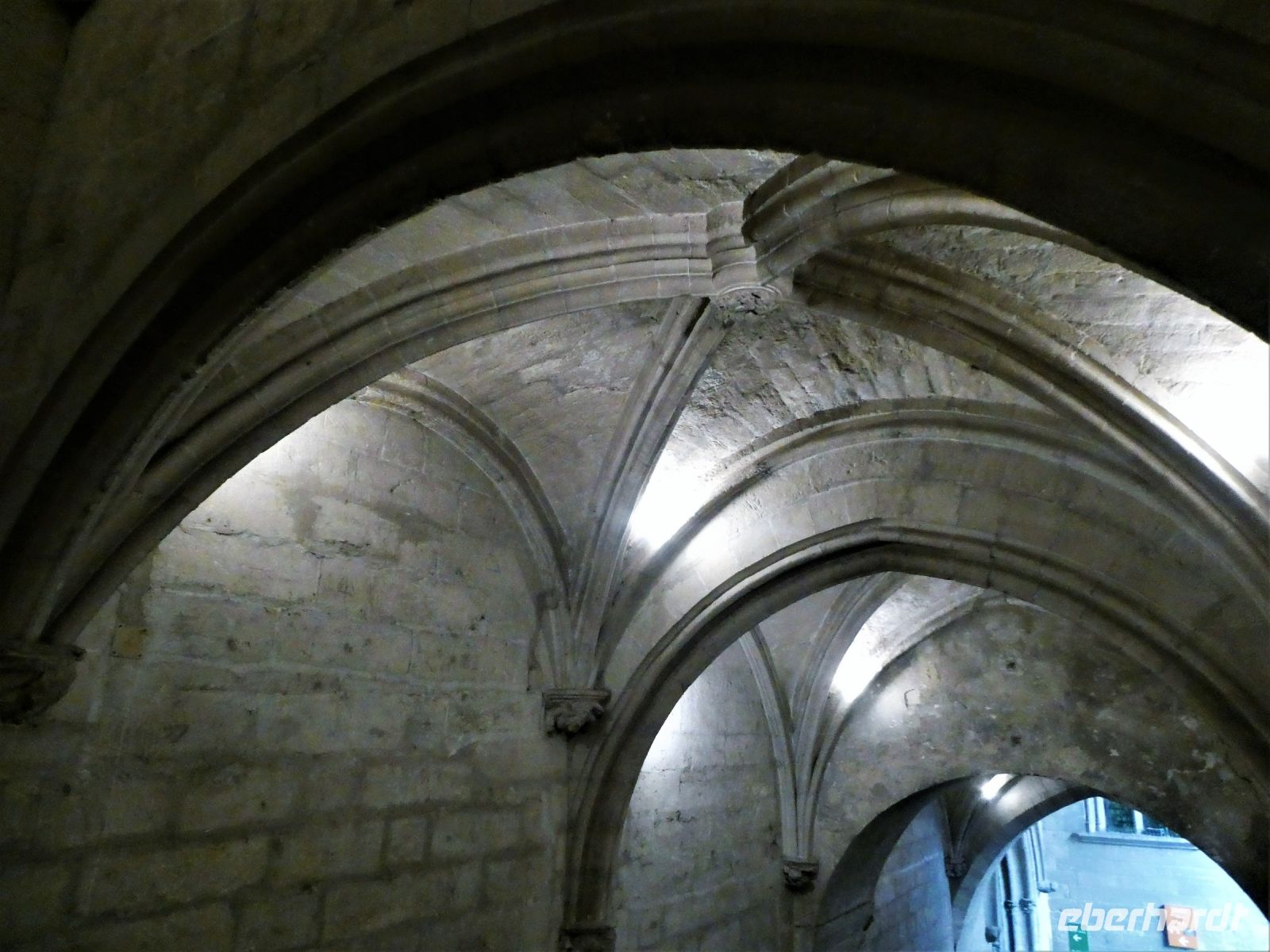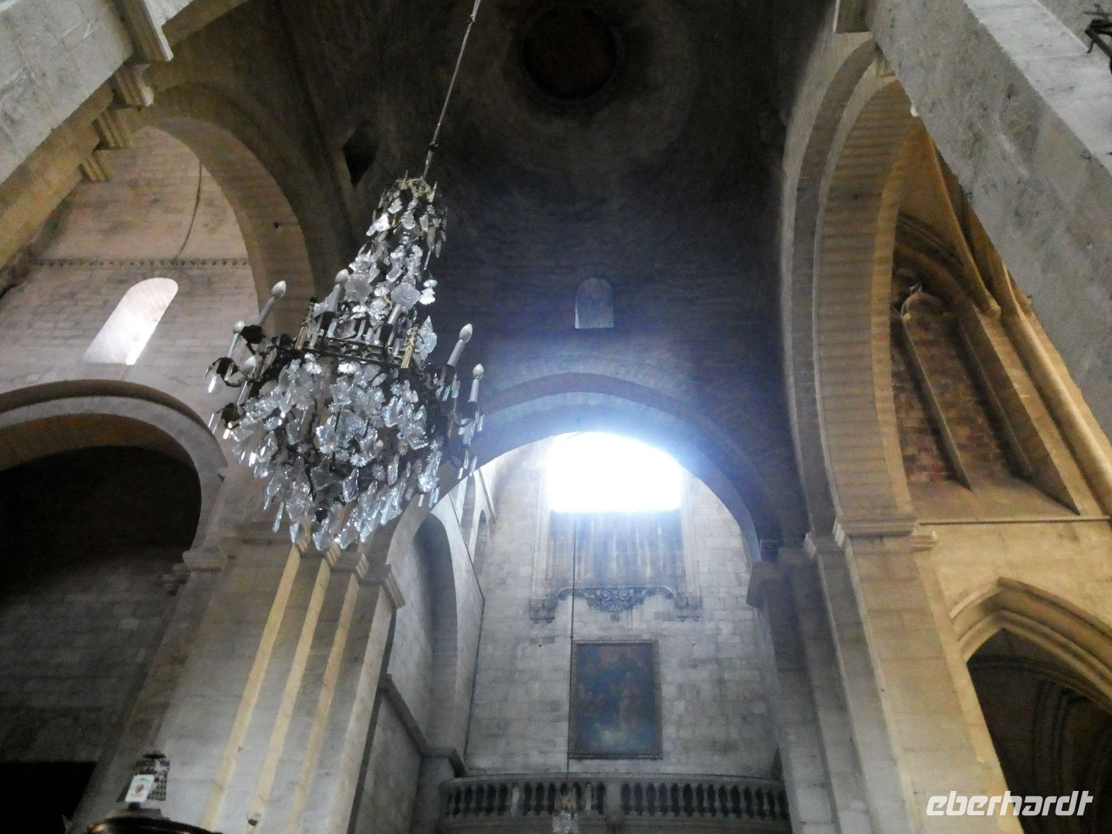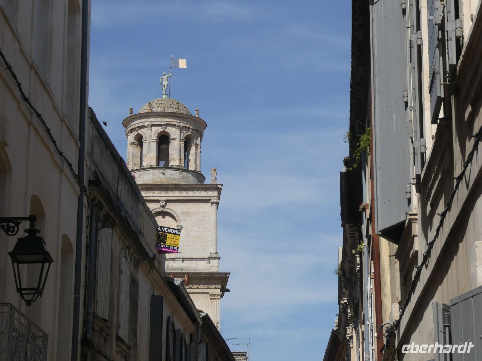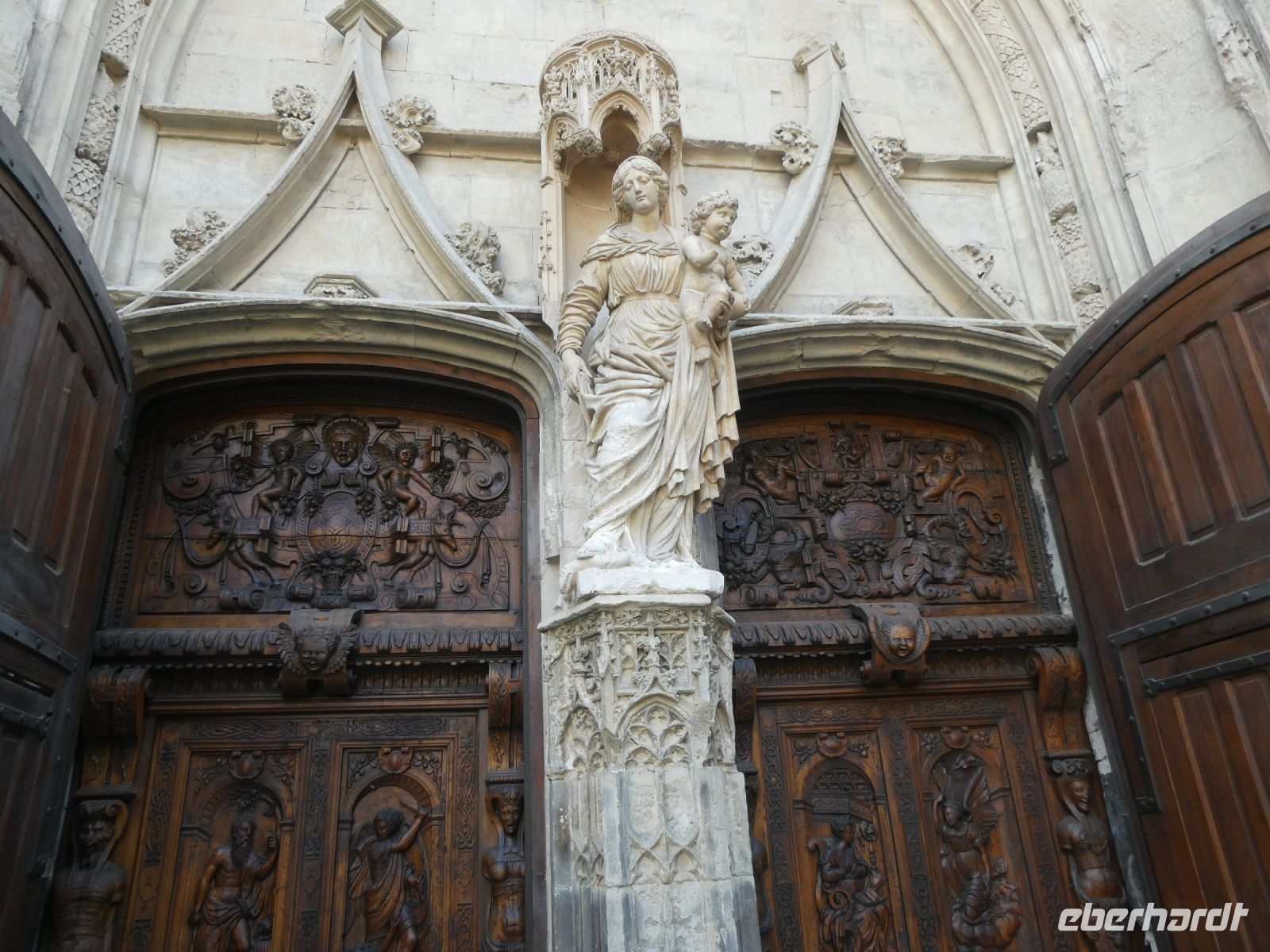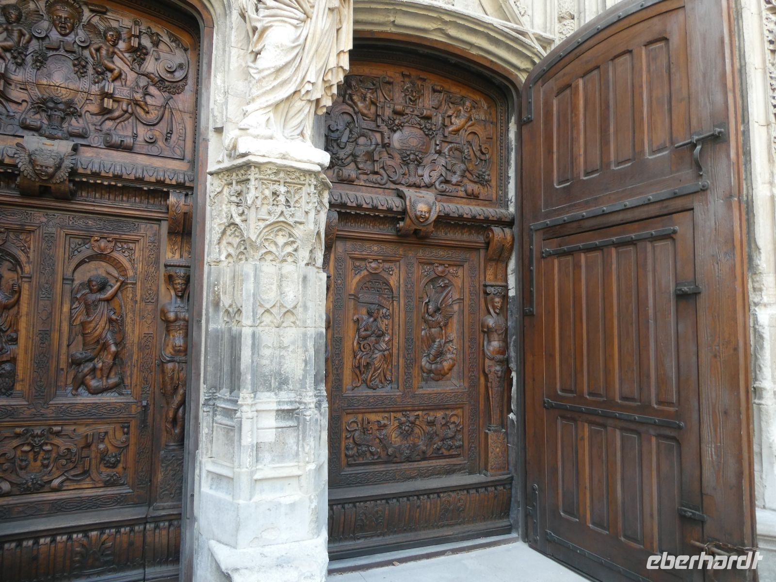 In der Altstadt passieren wir einen Markt nach dem anderen, bis wir zum "Hotel-de-Ville" dem Rathausplatz kommen. Hier blicken wir auf die barocke Fassade des "Hotel-de-Ville" aus dem 18.Jahrhundert und können den Uhrturm aus dem 16.Jahrhundert bewundern, welcher auf römischen Fundamenten ruhend als Stadttor diente. Auch die alte Kornhalle ist beeindruckend. Weiter geht es bei immer noch hohen Temperaturen zur Kathedrale "Saint-Sauveur". Wir bewundern den ältesten Teil der Kirche aus dem 14.Jahrhundert, der sogar noch Malereien enthält. Zahlreiche Baustile finden sich in diesem Bauwerk da es mehrfach um- und ausgebaut wurde. Hier endet auch unser geführter Rundgang denn viele aus der Gruppe sind durch die schwüle Hitze doch sehr geschwächt und nicht mehr so aufnahmefähig. Jeder kann jetzt für sich die verschiedenen Märkte erkunden oder sich einfach nur in ein Kaffee setzen.