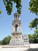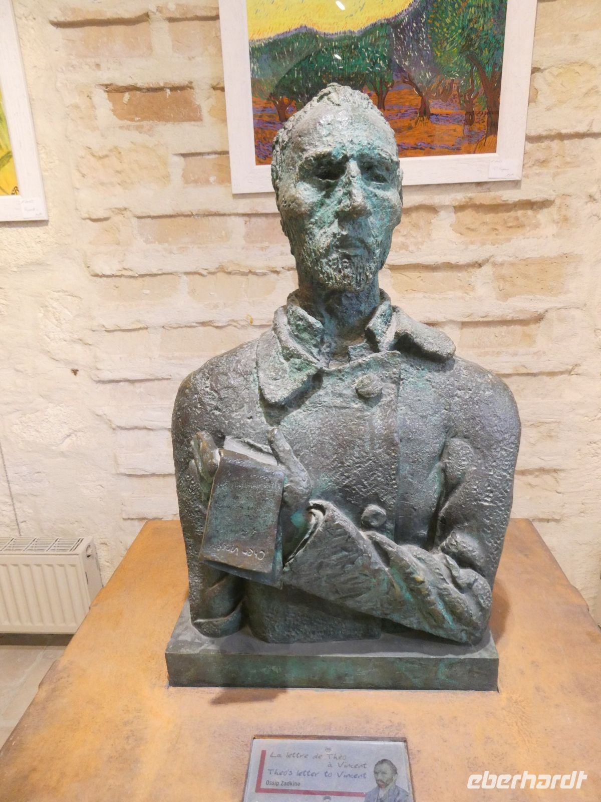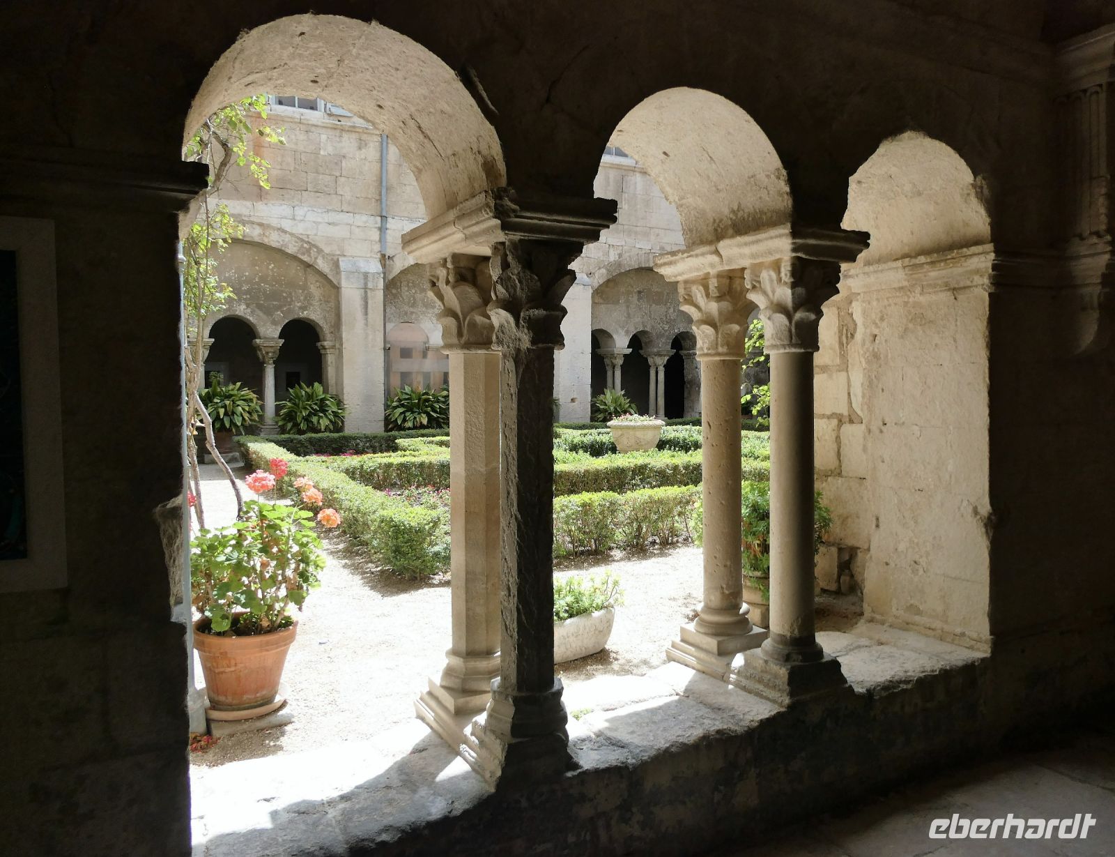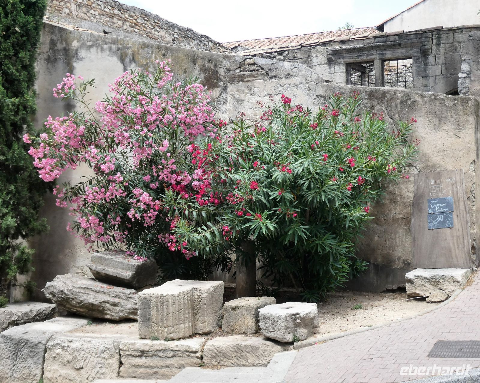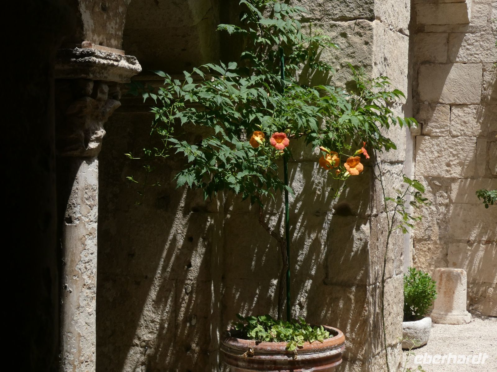 Schließlich gehen wir weiter in Richtung römisches Theater, welche einmal freistehend war und wahrscheinlich deshalb nicht so gut erhalten ist. Auch hier steuern die meisten von uns erst einmal den Schattenplatz unter den Bäumen an. Hier haben sich die Menschen vor mehr als 2000 Jahren getroffen und in Spannung die Aufführung eines Theaterstücks erwartet. Wenn Steine reden könnten. Wir versuchen auf dem Weg zur Kirche "St.Trophime" im Schatten zu laufen denn die Sonne brennt. So verspricht die romanische Basilika mit ihren schönen Steinmetzarbeiten am Portal aber auch im Innenbereich angenehme Kühle. Leider ist das Kloster heute aufgrund von Umbauarbeiten geschlossen und wir müssen bis morgen Nachmittag warten. Es bleibt noch Zeit für eine Mittagspause in einem der vielen Kaffees am „Boulevard des Lyces“ oder im ehemaligen „Hotel de Dieu“, einem Krankenhaus in dem auch Van Gogh eine Zeit zubrachte. Es ist heute das Gemeindezentrum und nett mit Garten gestaltet. Dann aber eilen wir zur Bushaltestelle, an der unser Fahrer wartet. Wir wollen jetzt zu dem Kloster "St.Paul de Mausole" fahren, welches dem großen Maler für ein Jahr eine Bleibe bot und wo er einige seiner herausragendsten Bilder schuf. Wir verlassen Arles, vorbei am Place Lamartine, an dem einst das „gelbe Haus“ stand, Van Gogh's einstiger Wohnort und sein Traum von einer Künstlergemeinschaft welchen er mit dem Malerkollegen Gauguin zu verwirklichen hoffte. Durch die schöne provenzalische Landschaft der „Alpilles“ führt uns der Weg in die Nähe von "St.Rémy-de-Provence" zu einem Parkplatz, neben dem römische Artefakte von etwas Bedeutendem künden: die Reste der antiken Stadt "Glanum". Als Festung an einem Pass durch den Gebirgszug der "Alpilles" gegründet wurde die Siedlung später von den Griechen und schließlich von den Römern übernommen. Antike so einfach am Wegesrand. Unser eigentliches Ziel ist aber das Kloster "St.Paul-de-Mausole". Inmitten von Feldern durchschreiten wir die Mauern dieser heute privaten Nervenheilanstalt. Auch hier dreht sich alles um "Vincent". Es ist ein beschaulicher, fast magischer Ort. Wir werden begleitet von einem lauten Grillenkonzert, eine idyllische Szenerie mit dem Kreuzgang und dem Garten voller duftender Blumen. Wir sehen das Zimmer in welchem er seine Zeit verbrachte. Im Aufgang Werke der heutigen Patienten die verkäuflich sind. Man finanziert so einen Teil der Institution, in der es 3 Abteilungen für die Kranken gibt, je nach Schwere ihrer psychischen Erkrankung.