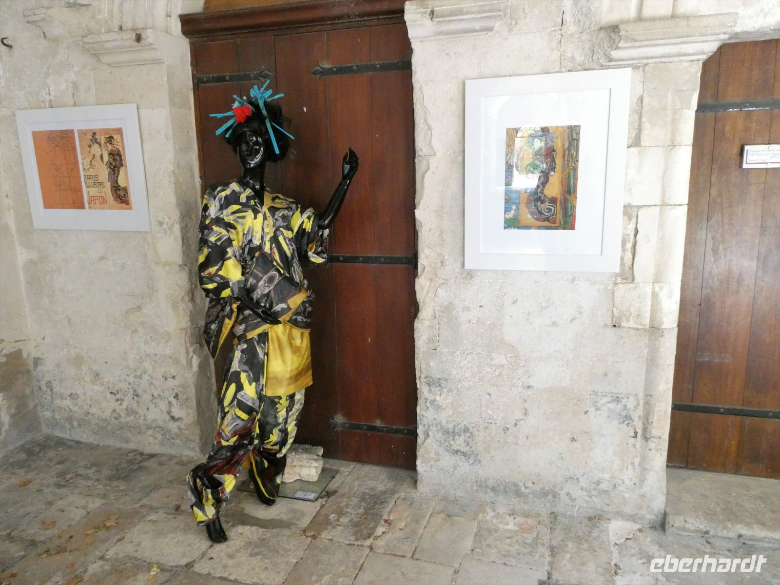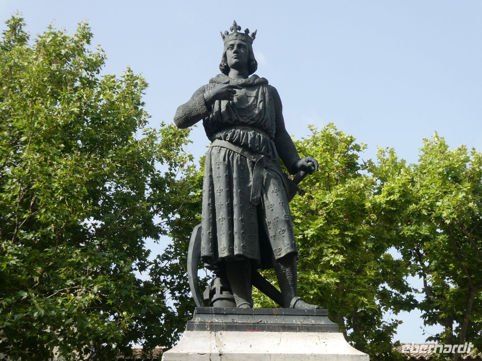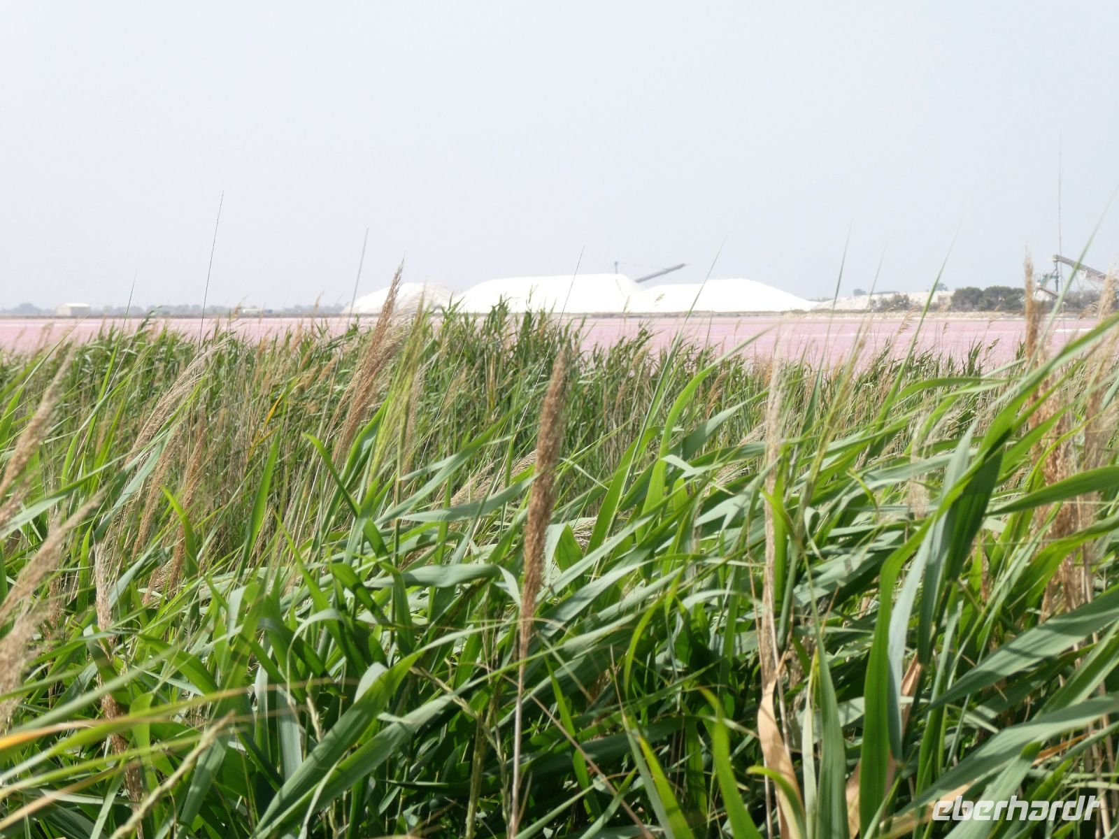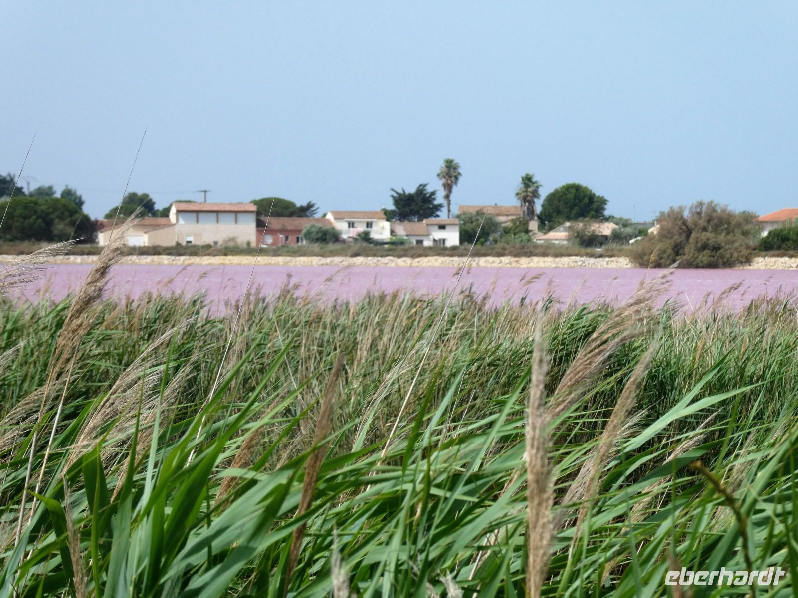 Einige von uns wollen die Umrundung auf alle Fälle machen. Wir gehen erst weiter zur Kirche in der die Kreuzritter des 6. und 7.Kreuzzugs gesegnet wurden. In der Mittte der Stadt steht die Skulptur von Ludwig dem Heiligen, der als der Begründer der Stadt gilt. Dann erkundet jeder für sich den Ort, denn die Interessen der Einzelnen in der Gruppe sind schon sehr unterschiedlich und außerdem herrschen schon wieder hochsommerliche Temperaturen. Die ersten suchen schon wieder einen Schattenplatz. Hinter dem Ort blickt man auf Schilflandschaften und Salinen in denen das berühmte "Fleur de Sel" gewonnen wird. Etwas abseits der Touristenpfade ist das Örtchen geradezu beschaulich in dieser Jahreszeit. Was mag erst im Sommer hier los sein, wenn die Franzosen Urlaub machen?