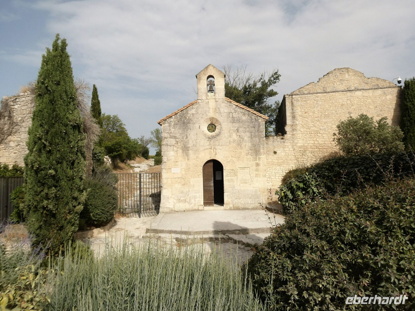 Vor Ort erfahren wir dann aber, dass es im Moment sowieso nur möglich ist, während einer Führung in die Kirche zu kommen und die wären sowieso bis am Nachmittag ausgebucht. Also begnügen wir uns damit, im Geschäft herumzustöbern und die noch nicht ganz aufgeblühten Lavendelfelder zu fotografieren, auch hatten wir unseren Lavendel ja schon im "Kloster St.Paul de Mausole". Auch regnet es mal wieder stärker und wir kommen kaum trockenen Fußes zu unserem Bus.