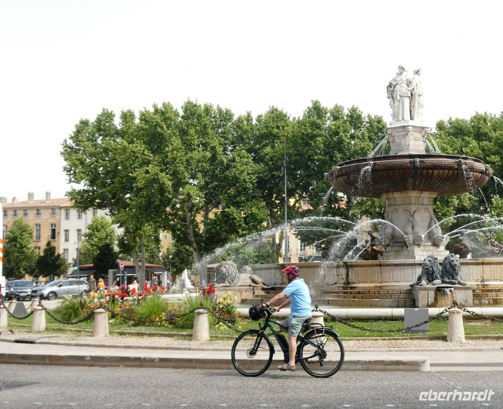 Hier an der Rotonde begrüßt uns auch gleich der wohl bei uns berühmteste Sohn der Stadt, der Maler "Paul Cézanne" als lebensgroße Skulptur. Der Künstler wuchs als Sohn eines Buchhändlers und späteren Bankiers hier in "Aix" auf.