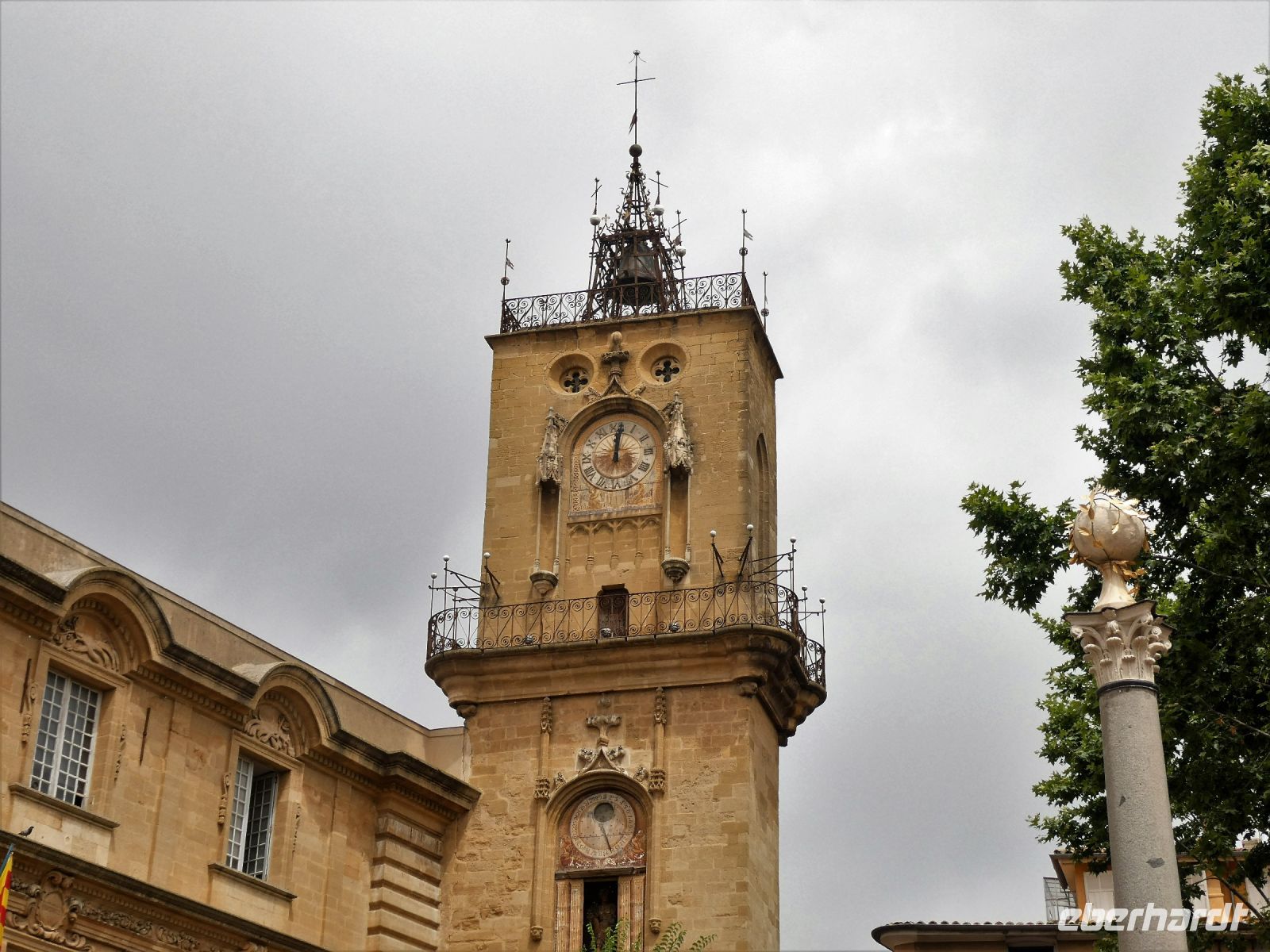 Wir haben jetzt Zeit uns ein wenig mit der Geschichte zu beschäftigen, was uns die Fahrzeit ein wenig verkürzt. Der Himmel ist heute ein wenig bedeckt, was nicht heißt, dass die Temperaturen viel niedriger sind. Tatsächlich geht sogar etwas wie Regen nieder. Wir haben von unserem lokalen Reiseleiter Michael einen Treffpunkt an dem "Hotel Réné" benannt nach einem Herrscher aus dem 15.Jahrhundert. Er wählte die Stadt "Aix" zu seinem Altersruhesitz, war ein absoluter Feingeist, sprach 5 Sprachen und brachte Kunst und Kultur nach Aix.